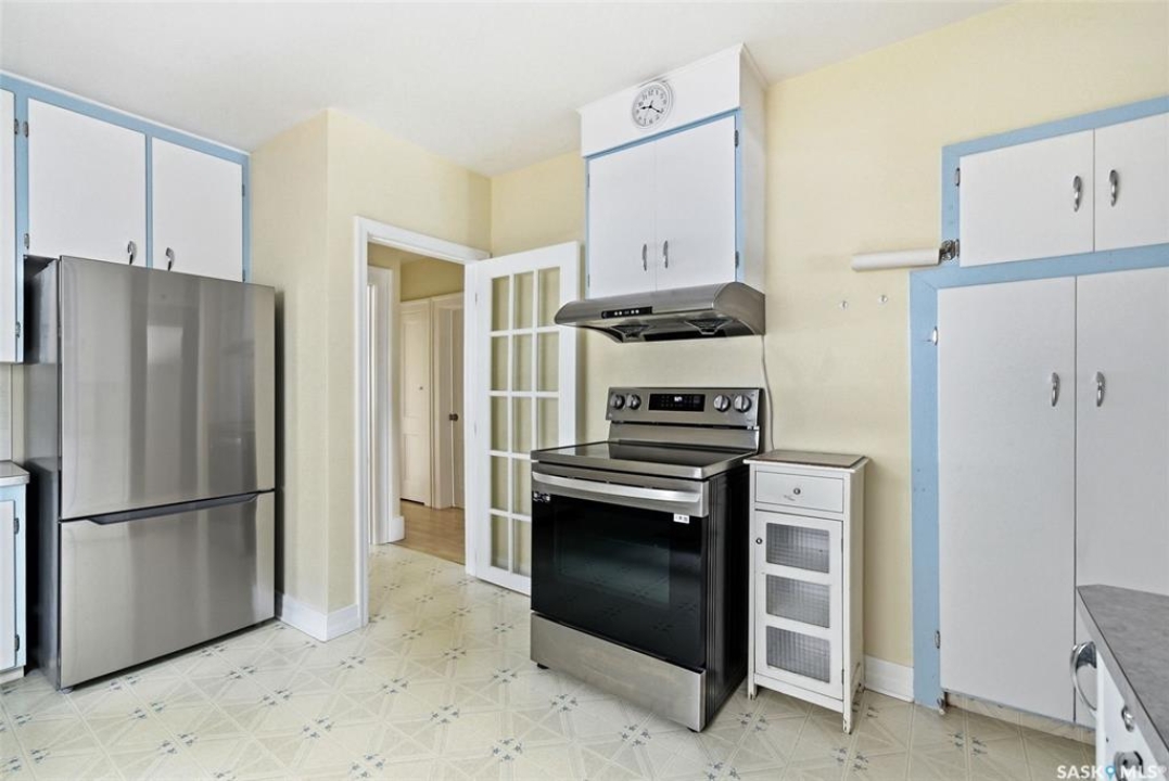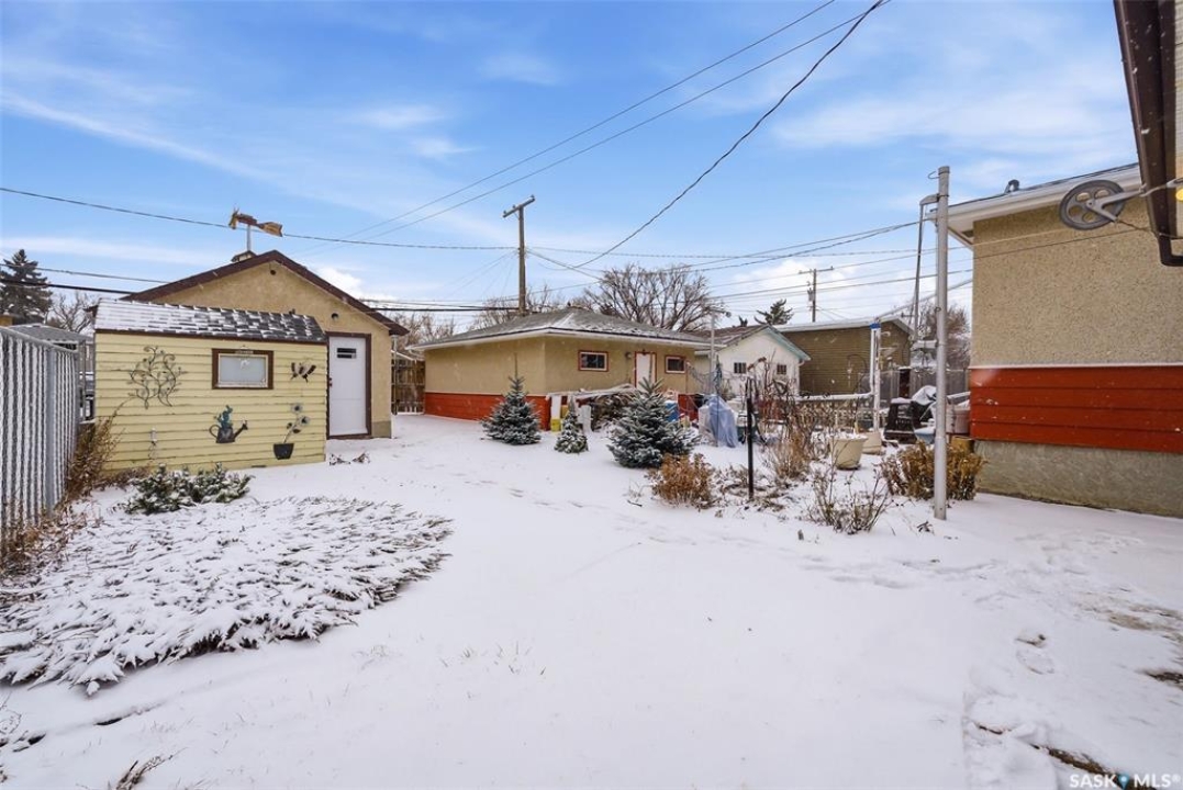 Welcome to 1921 Atkinson Street, a solid bungalow located in Regina's established Broders Annex neighbourhood. Built in 1927, this well-maintained home offers 856 sq ft above grade and sits on a 3,127 sq ft lot, making it an excellent opportunity for first-time buyers, downsizers, or investors. The main floor features a bright and spacious living room with updated laminate flooring, two comfortable bedrooms, a 4-piece bathroom, and a functional kitchen with ample cabinetry and a cozy dining nook. The home has a classic charm throughout, with original character details and a practical layout. The basement is partially finished and includes an additional bedroom, a 2-piece bathroom, laundry area, and plenty of storage space. A separate entry to the basement adds flexibility for future development potential. Outside, you'll find a partially fenced yard with trees and shrubs, along with a detached single garage and additional parking (2 total off-street spaces). Additional features include natural gas heating, fridge, stove, washer, dryer, hood fan, and garage door opener. This is a structurally solid home with great bones, offering a fantastic opportunity to move in, rent out, or update to your own style. Conveniently located close to schools, parks, and downtown amenities.