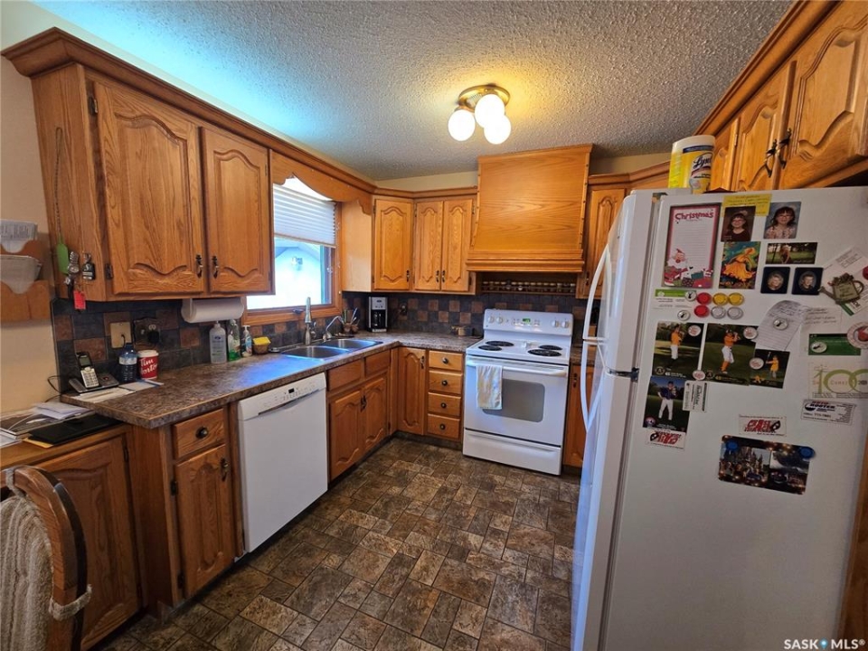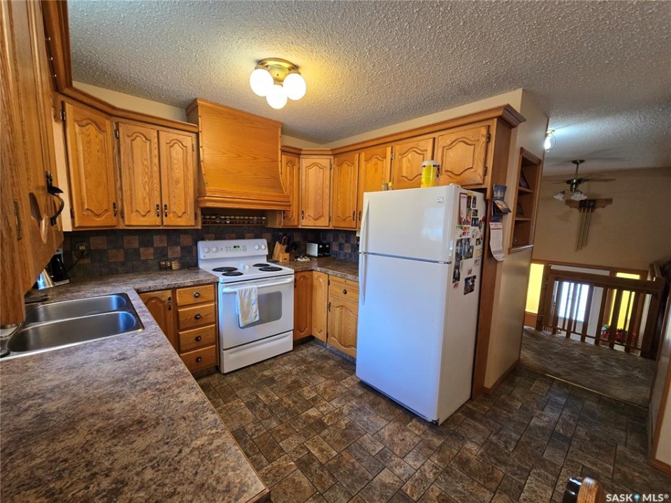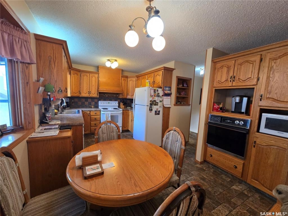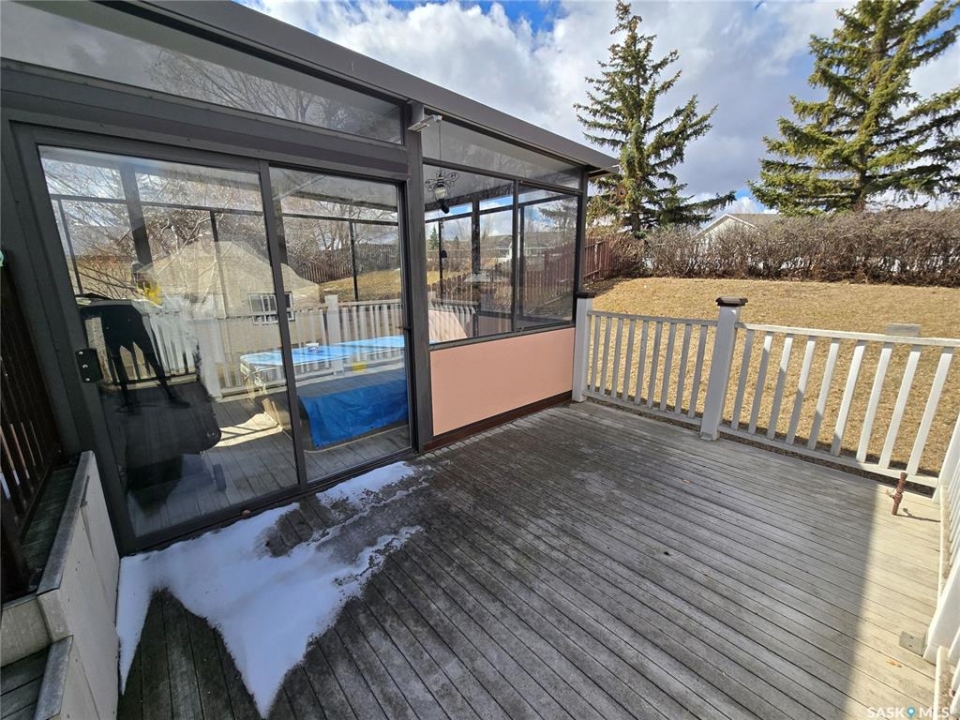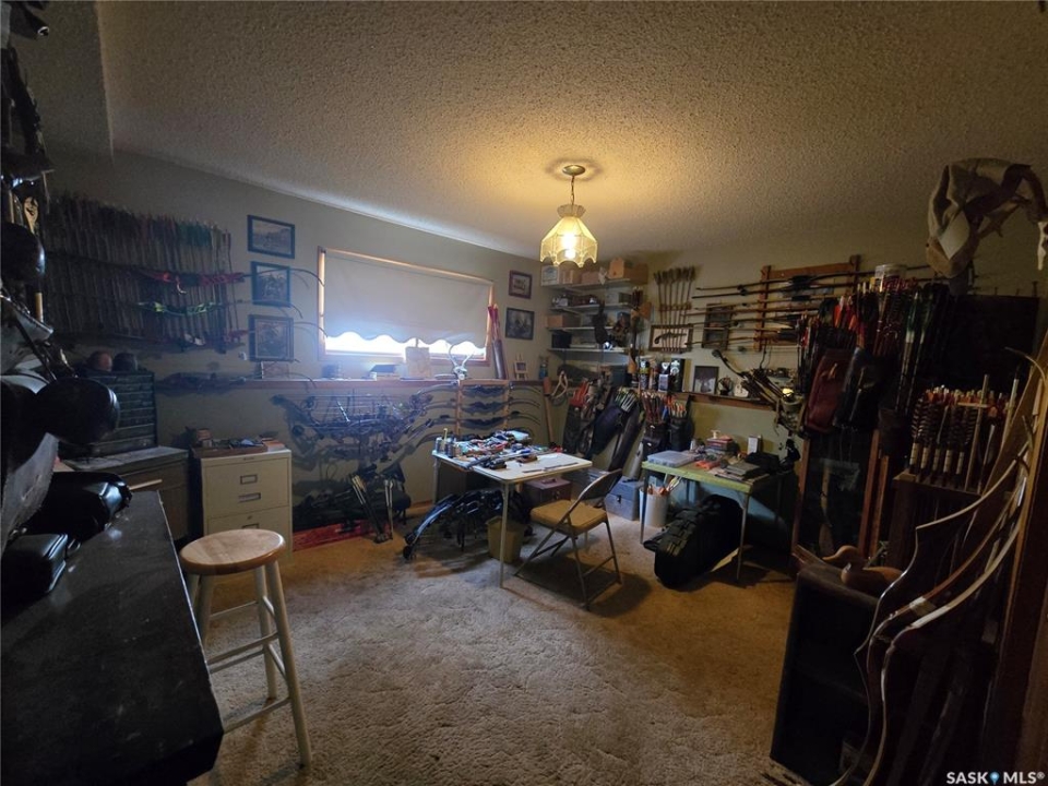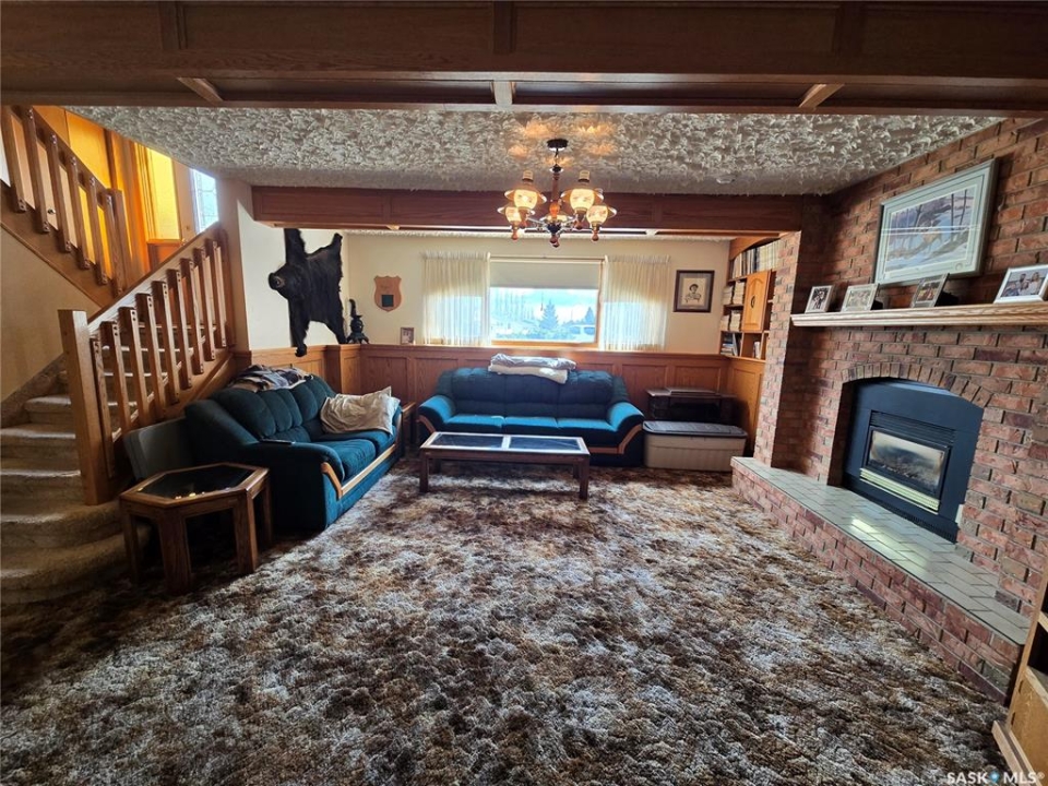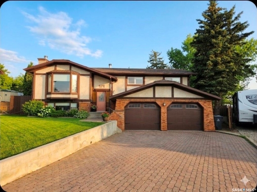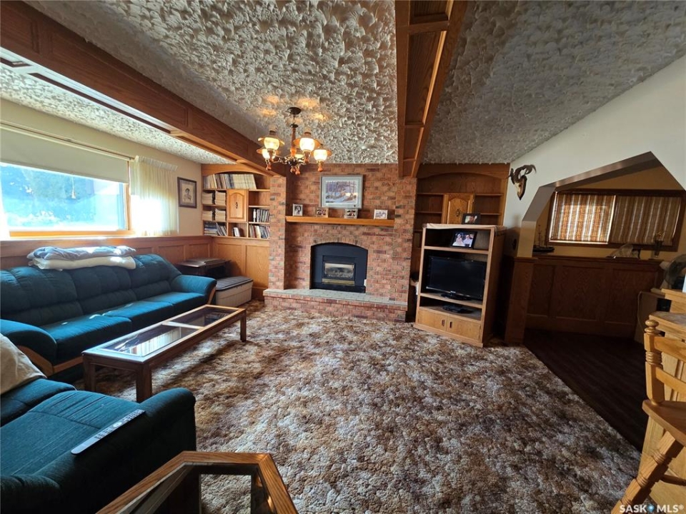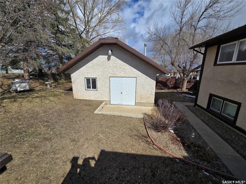 Nestled in the highly desired Trail subdivision, this classic Tudor-inspired bi-level makes a striking first impression with its signature decorative timbering and stucco exterior. Spanning over 1,400 sq. ft., the home radiates a warm, timeless character, anchored by extensive custom oak woodwork and craftsmanship throughout. The heart of the home is the grand living room, where soaring vaulted ceilings and rustic exposed beams create an airy, sophisticated atmosphere for gathering. Modern updates, including a brand-new hot water heater and select PVC windows, provide essential peace of mind to complement the home's traditional charm. The living space extends well beyond the main walls, offering unique retreats for every season. A bright 10' x 20' three-season sunroom provides the perfect spot for morning coffee, while the private, enclosed hot tub room serves as a sheltered year-round oasis. Downstairs, the finished basement features a dedicated wet bar, making it an ideal hub for entertaining. Outside, the large, fully fenced backyard offers plenty of room for play or gardening in a quiet, established neighborhood setting. For those with hobbies or a need for premium storage, the property's garage and shop space are truly unparalleled. In addition to the double attached heated garage, the property boasts a massive 20' x 24' detached multipurpose shop. With 9 ft ceilings and its own heating system, this secondary building is a dream workspace for projects, a home gym, or a professional-grade workshop. Combining character, comfort, and incredible utility, this home offers a rare opportunity to live and work in one of the community's most sought-after locations.