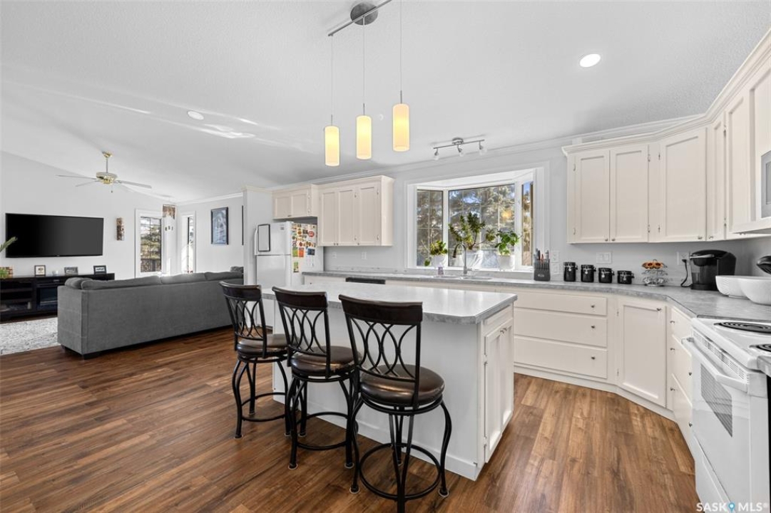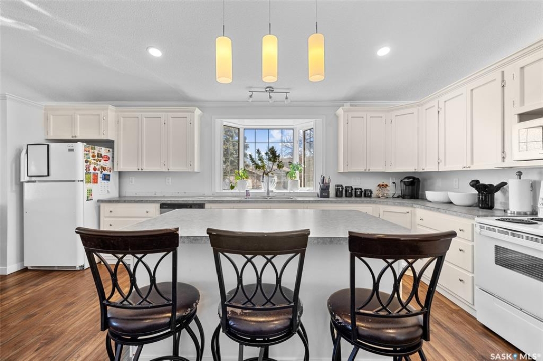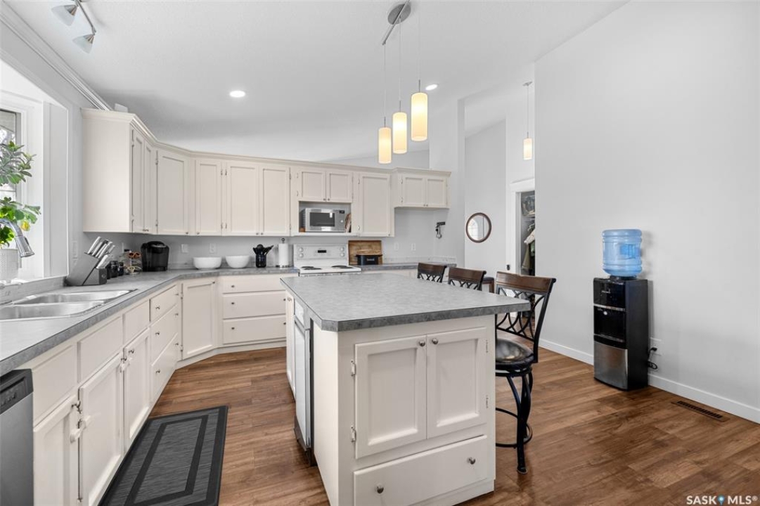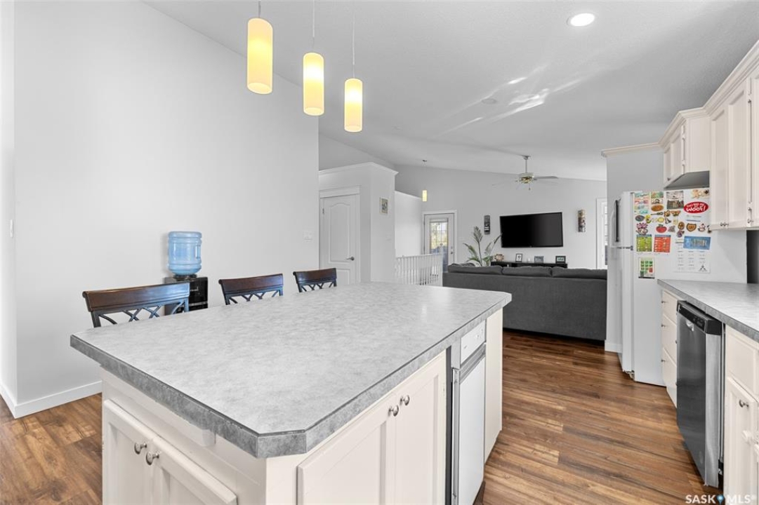 Welcome to 15 Thistle Bay - This beautifully maintained home has been cherished by family members over 31 years. From the moment you walk in the front door. the pride of ownership and timeless care shine. This home offers 4 generously sized bedrooms, vaulted ceilings, and the convenience of main floor laundry. The thoughtfully designed open-concept kitchen creates an elegant yet functional space, perfect for hosting and everyday living. Large windows through out the home filling the interior with natural light; adding to its refined and welcoming feel. The fully developed basement, complete with a wet bar, provides a cozy space for a movie night or an inviting setting for entertaining guests. This home is an exceptional home you'll want to see for yourself.