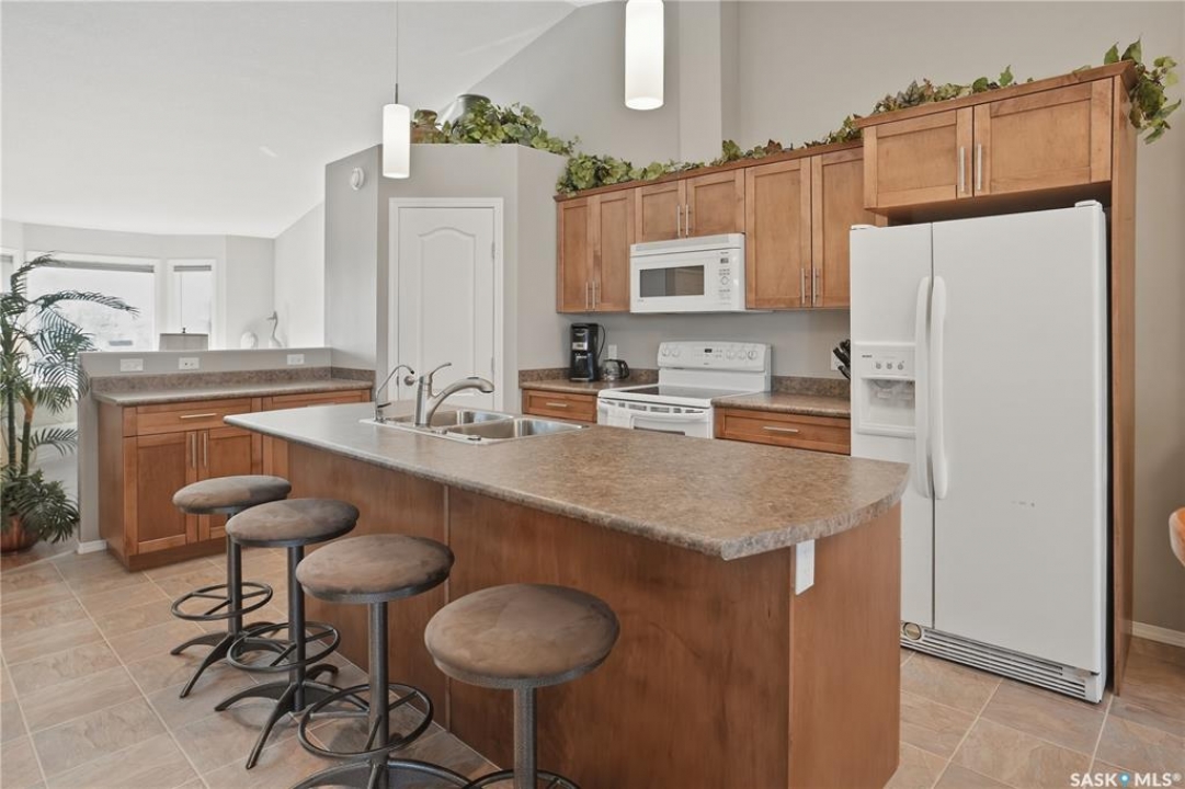 Located in the sought after subdivision of Fairview Heights, this townhouse condo offers a warm and inviting space that immediately feels like home. The main living area is elevated by vaulted ceilings and large windows, allowing natural light to pour in and create a bright, comfortable atmosphere. The kitchen is both functional and welcoming, featuring maple cabinetry, a walk-in pantry, ample counter space, and a central island with seating that naturally brings people together. Just off the main living area, a versatile flex room adds to the home's appeal, perfect for a home office, guest room, or quiet retreat. Main floor laundry is conveniently located, with a powder room just steps away for added practicality. The primary bedroom is spacious and private, complete with a walk-in closet and a four-piece ensuite. Downstairs, the fully developed basement extends the living space with two additional bedrooms, a full bathroom, and a large rec room, along with plenty of storage. The utility room is well equipped with an air exchanger, high-efficiency furnace, central air conditioning, water softener, reverse osmosis system, central vacuum, and a newer power-vented hot water tank, along with a rough-in for a utility sink. An attached heated double garage offers direct entry, while outside you'll find a fully fenced yard with durable vinyl fencing and a composite deck with metal railing, creating a low maintenance outdoor space to enjoy. Condo fees ($225/month) cover lawn care and snow removal, offering a simple, low maintenance lifestyle in a beautiful location. This home is being offered fully furnished, providing a turnkey opportunity to simply move in and enjoy. Call your agent today to view this exceptional property!