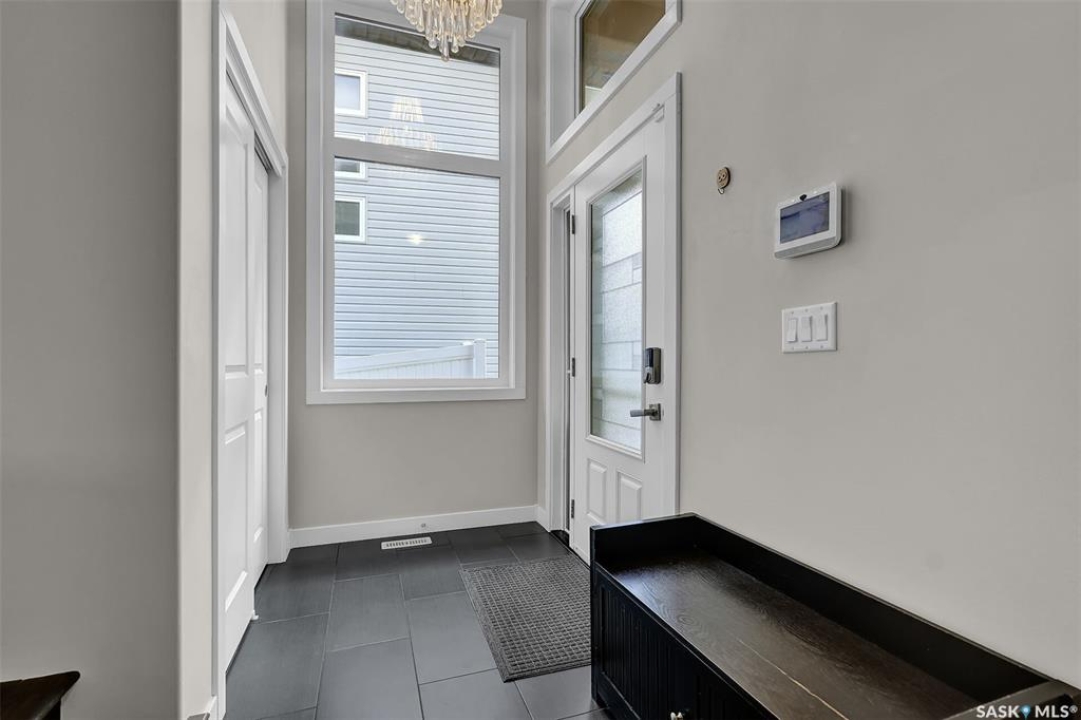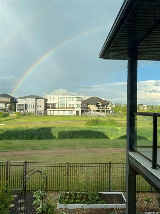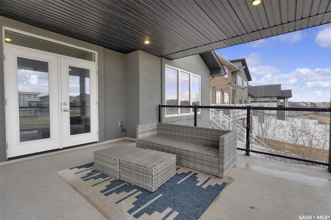 Custom-built home on piles with a walk-out basement! Welcome to this beautiful bi-level offering 5 bedrooms and 3 bathrooms. The open-concept main floor features impressive 11' ceilings and hand-crafted hardwood flooring throughout the kitchen, living, and dining areas. The kitchen showcases extensive maple cabinetry, elegant quartz countertops, tile backsplash, a large island, and a walk-in pantry. The dining area provides access to a spacious covered balcony with glass railing, overlooking the landscaped yard, green space, and walking paths. The bright and inviting living room offers generous space, a fireplace, and a stylish brick feature wall, complemented by large windows that fill the home with natural light. The main floor includes 3 bedrooms and 2 full bathrooms. The primary suite features large windows, a walk-in closet, and a well-appointed ensuite with tile flooring, separate shower, corner soaker tub, and dual sinks. Two additional good-sized bedrooms, a full bathroom, and a convenient laundry/storage area complete this level. The fully developed walk-out basement expands the living space with 2 additional bedrooms, a spacious family room, kitchen/bar and dining area, an additional full bathroom, and plenty of storage. The double attached garage is fully insulated and drywalled, with wiring in place for a future heater. Ideally located just steps from parks, an elementary school, green spaces, and walking paths, this home offers a fantastic location with beautiful views.