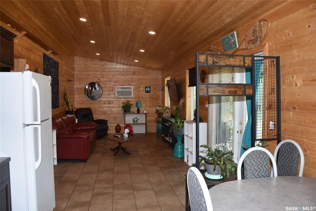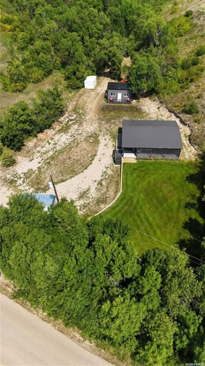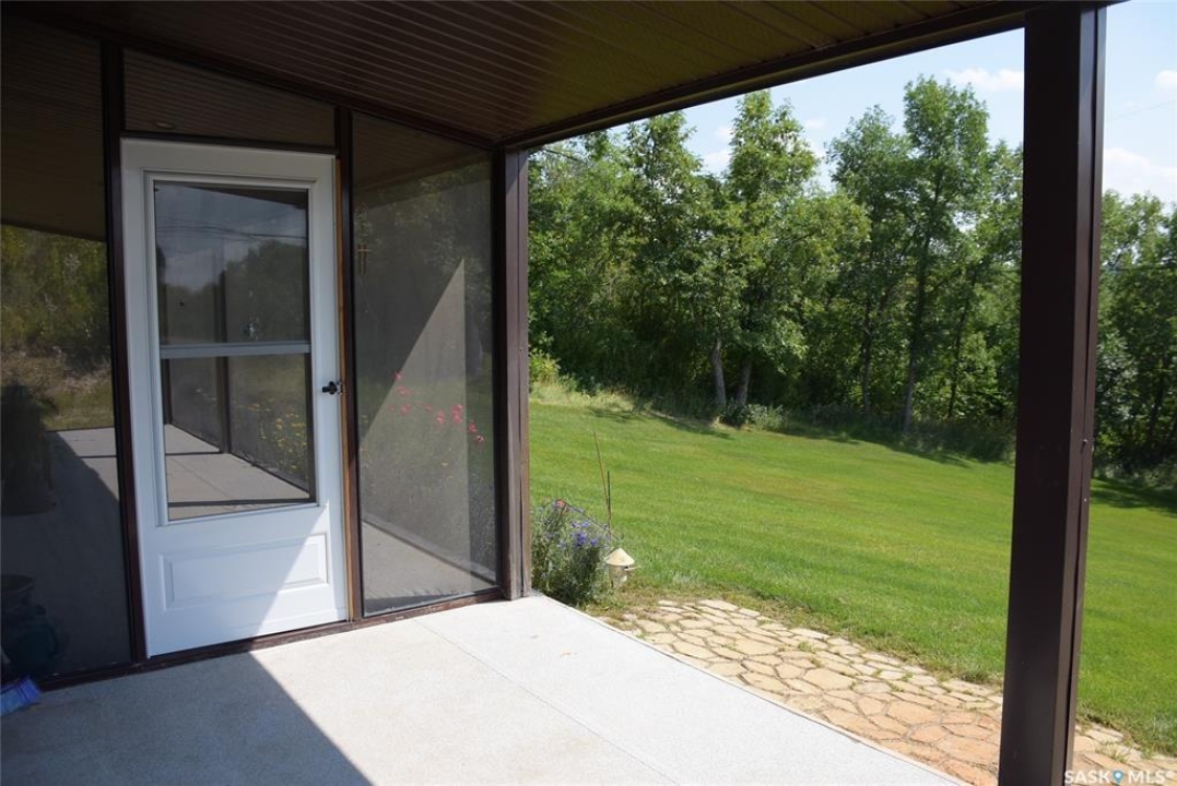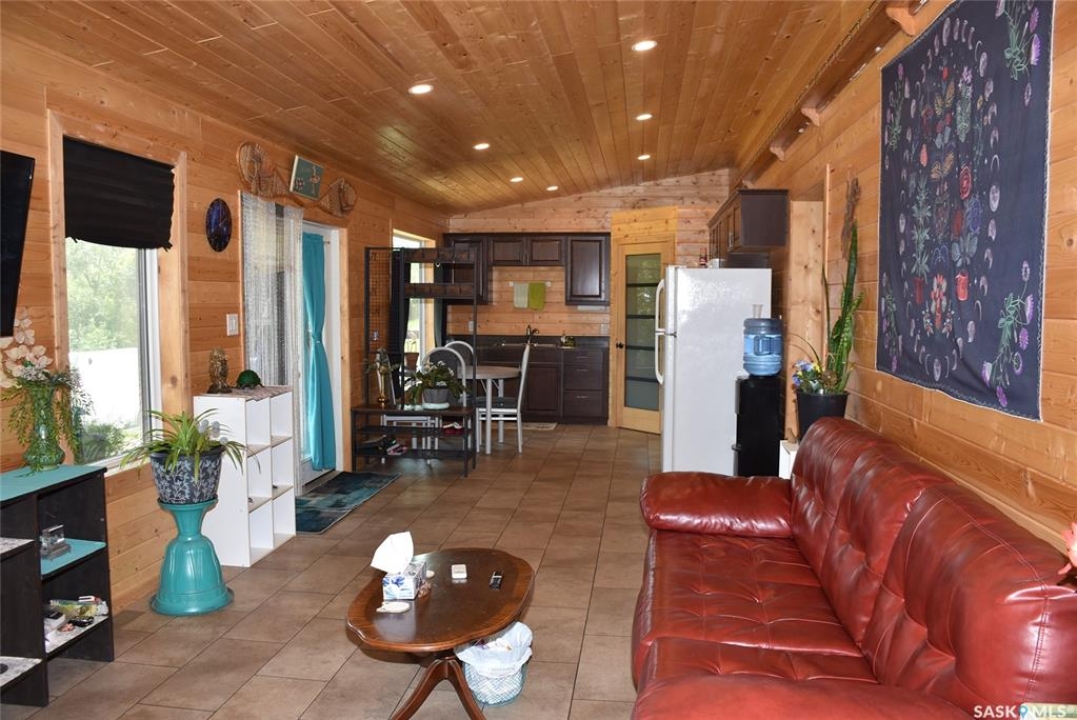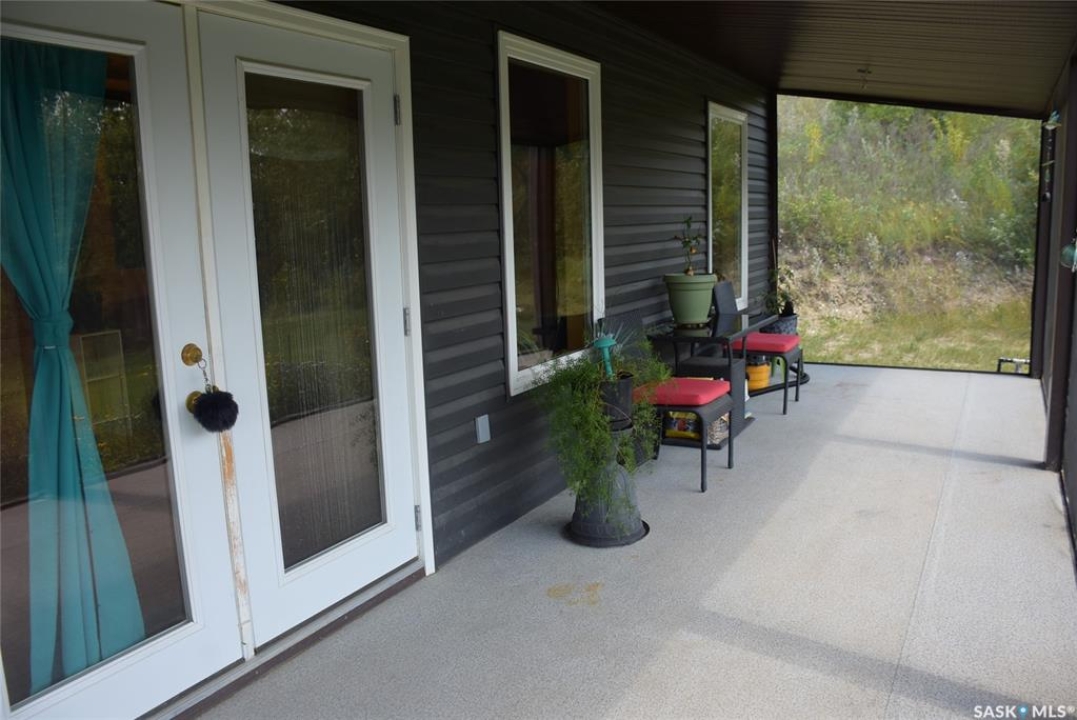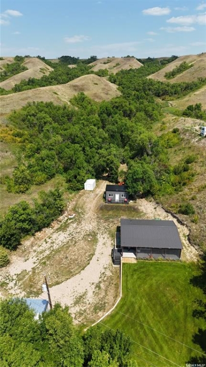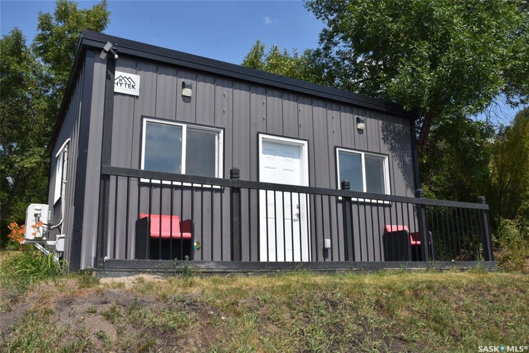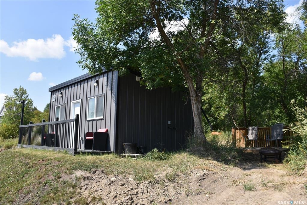 This property offers a private getaway for folks who love the outdoors. Backed just off Pasqua road in beautiful lush green trees you may enjoy privacy and relaxation looking at the manicured lawn (underground sprinkler system) and gardens. Sitting on almost 1 acre of land, there is endless possibility. A gently sloping coulee to the back of the house offers additional room for a firepit area or camping sites. The front porch is large and fully screened in for ultimate comfort. The property includes a new self contained 320 Sq ft mini home with a living area, bathroom, and kitchen area. The mini home also has its own fresh water tank and waste storage unit. When you step inside the home you are greeted by pine ceilings and walls with a large open concept living room and kitchen/dining with great natural light. To the back of the home, there are two bedrooms, one bathroom, and laundry in utility room. This property comes fully furnished as is with beds, couches, table/chairs, cabinets (except personal belongings). The exterior includes vinyl siding and a durable metal roof for low maintenance.