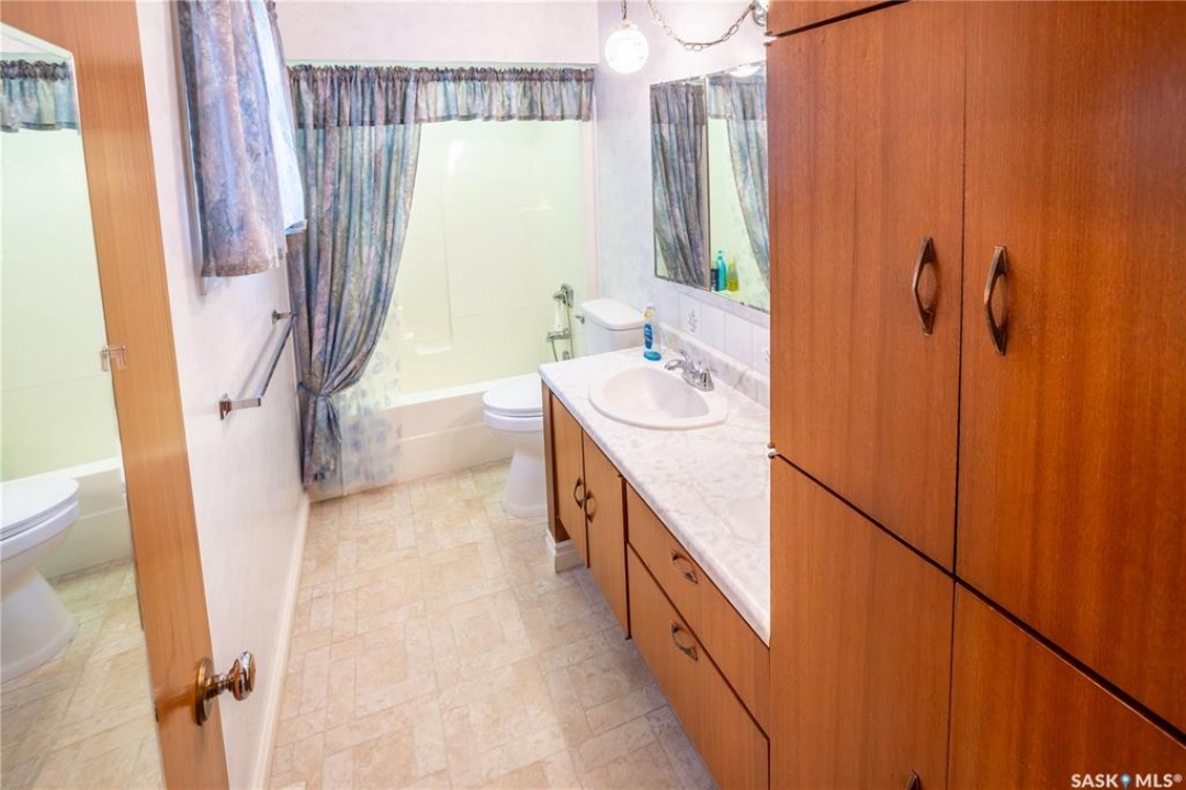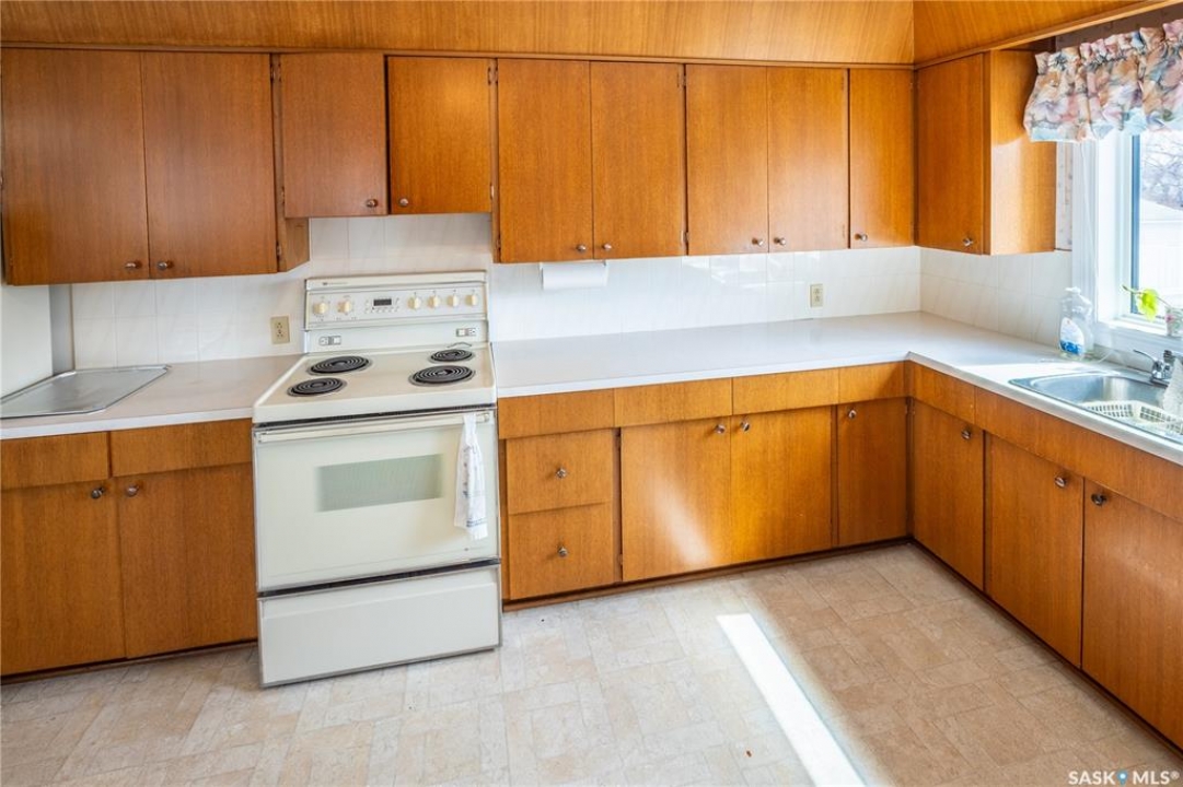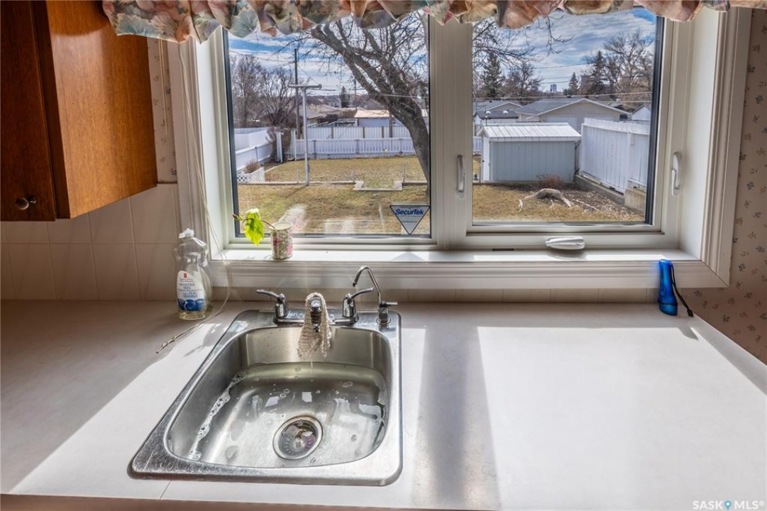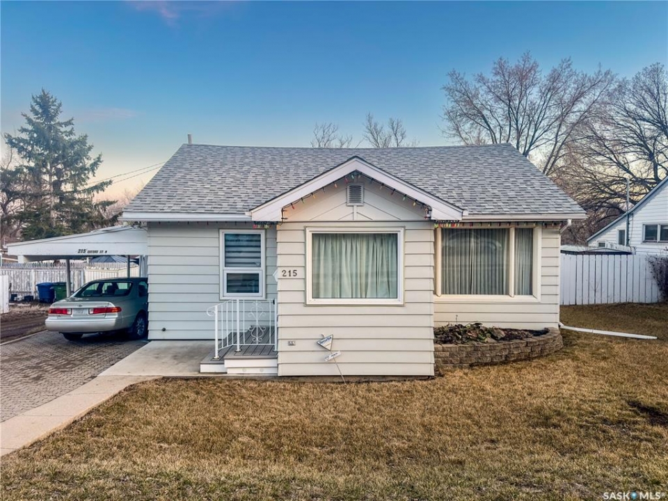 Located at 215 Oxford St W, close to Central Collegiate, St. Agnes, and King George School, this well-maintained home features a beautifully tiered backyard with mature trees, and plenty of gardening potential. You're greeted at the front by an interlocking paver driveway leading to a carport. Inside, a front porch opens into a bright living room with a large picture window. The space flows into a spacious kitchen and dining area at the back of the home, filled with south-facing light and overlooking the yard. The main floor includes a full bathroom and two bedrooms. Downstairs offers an additional bedroom, a second bathroom with shower, a large family room, utility area, and cold room for storage. Good ceiling height adds to the overall functionality of the lower level. This home has been owned by the same family since 1971 and has been well maintained over the years. Updates include siding, many triple-pane windows, exterior doors, eaves, soffit, roof, water softener (2025) and a water filtration system (owned).