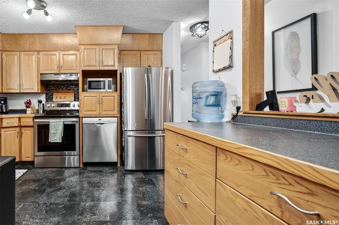 EXPANSIVE 1400 SQ/FT FAMILY HOME! EXCEPTIONAL WESTMOUNT LOCATION, just MOMENTS from the BRAND NEW Joint-Use Elementary School. HUGE HEATED DOUBLE GARAGE (w/ 2-pc bathroom)!! This impressive property offers abundant space for a growing family. WITH TWO LIVING/FAMILY ROOMS UPSTAIRS, as well as a HUMONGOUS RUMPUS AREA DOWNSTAIRS, 5 Wellington provides all the potential for hosting friends and gathering family, while providing separate spaces for the kids to play. Main floor features a sunken living room (w/ gas fireplace), accommodating dining area, and a beautiful family room addition, with IN-FLOOR HEAT, vaulted ceilings, and large skylights overhead! The lovely updated kitchen has ample storage and is well-laid out. The main floor is completed with a RENOVATED (in 2023) 4-piece bathroom and three sizable bedrooms, including the master with UPDATED (in 2025) 2-pc ENSUITE. The lower level adds a massive bedroom, 3-piece bathroom, laundry/utility area, and two large recreation spaces. Numerous updates include fencing, paint, flooring, vinyl windows, doors, vinyl siding, and light fixtures (2025) This home also offers a High-Efficient Furnace, newer water heater (2020), TWO central air units (one rooftop, one ground-level). The 29x24 double garage is insulated, heated, and includes its own 2-piece bathroom—ideal for a workshop or future man/woman cave. Additional upgrades include: central air (2019), dishwasher (2021), washer/dryer (2020), and more. A must-see Westmount family home offering comfort, space, and quality throughout!