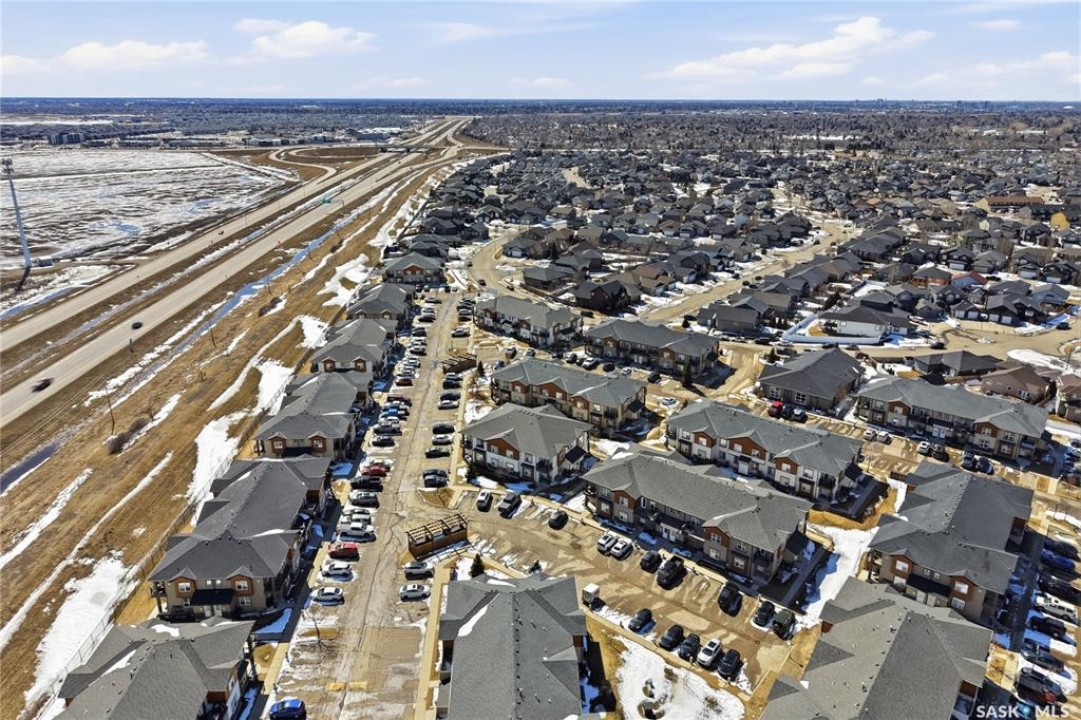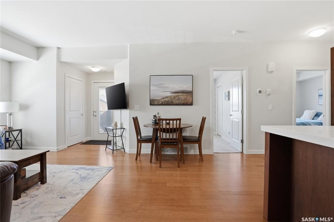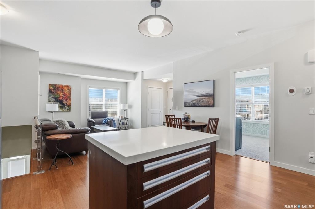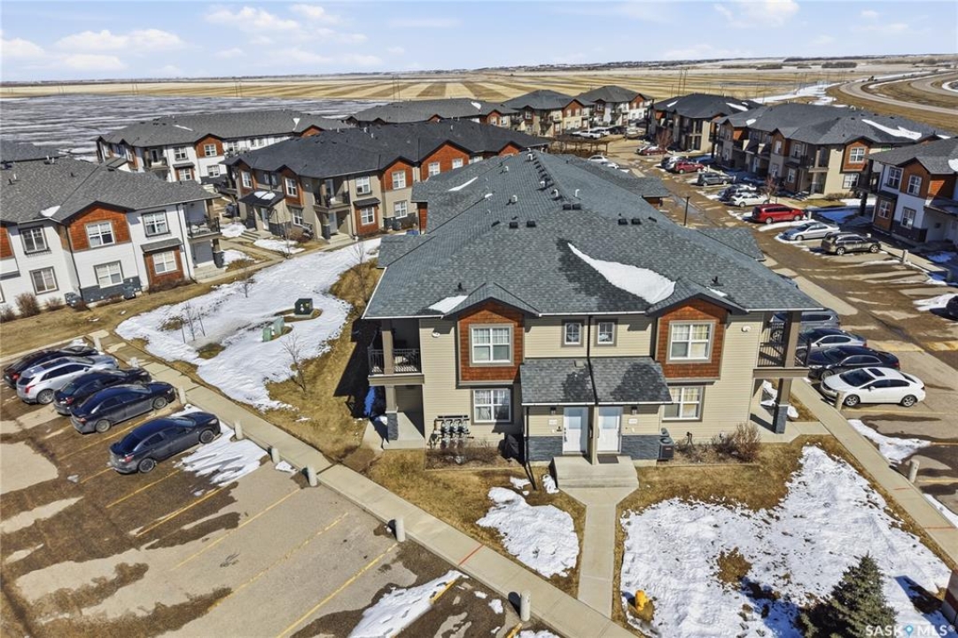 Affordable living with excellent location in Willowgrove! This top floor, corner unit 2-bedroom townhouse featuring 2 electrified parking stalls is a must see! The living area is bright and has an open-concept floor plan with high end finishes. There is bamboo hardwood floors, New York style cabinetry, quartz countertops, an island with breakfast bar, stainless steel appliances as well as porcelain tile flooring in the foyer, bathroom and laundry room. The laundry room offers plenty of storage and the spacious covered balcony is perfect for a bbq and a relaxing sitting area. Ginger lofts is popular for the clubhouse that offers an indoor saltwater pool and hot tub, an exercise room, lounge/billiards room and an outdoor public natural gas grill. This perfect affordable home is conveniently located just minutes from Brighton and University Heights so you can enjoy all of the amenities they have to offer which includes grocery stores, shopping, Wilson's Lifestyle centre, Landmark theatre and more! There is easy access to Circle drive, McOrmond overpass and college drive. With water for a utility bill included in the condo, this very affordable corner unit townhouse includes all appliances, central air conditioning and all of the window coverings. There shall be no presentation of offers as per the seller's instructions until April 17, 2026 at 5pm. Don't wait! Call to view today.