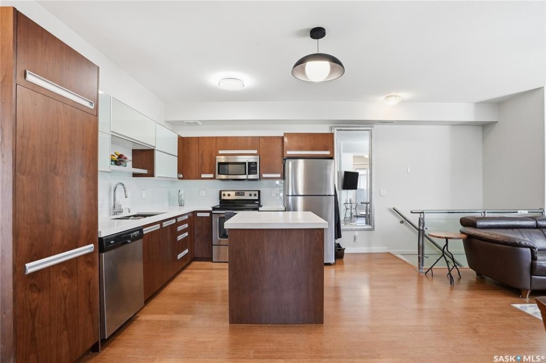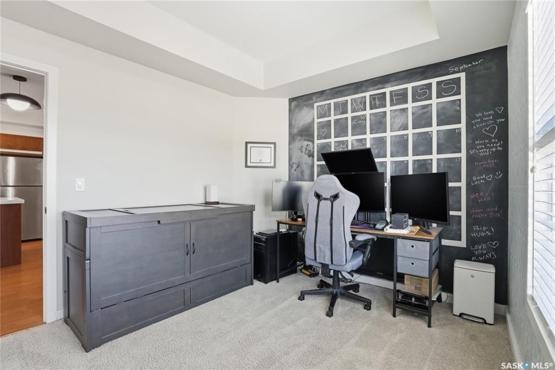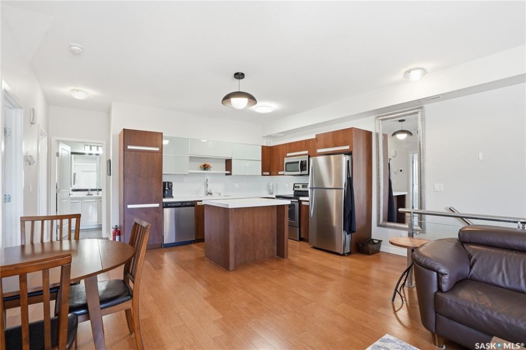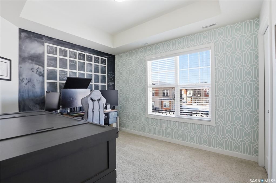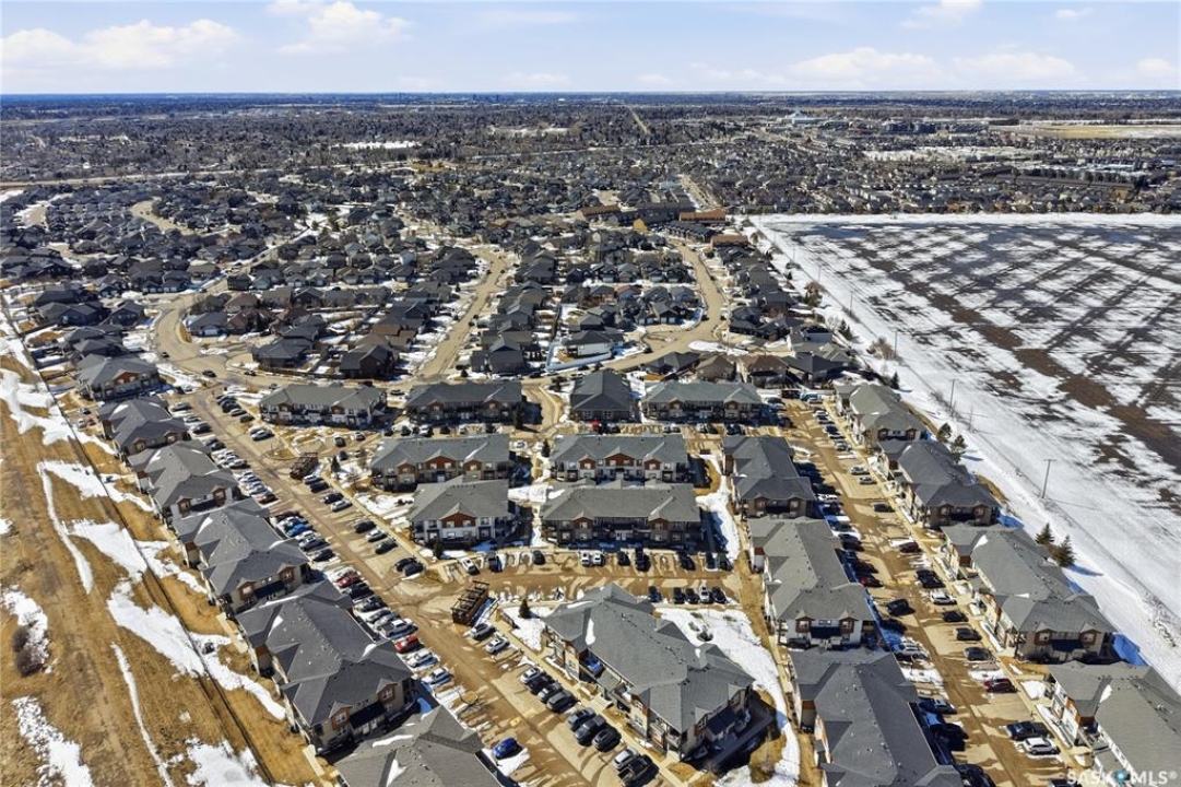 Affordable living with excellent location in Willowgrove! This top floor, corner unit 2-bedroom townhouse featuring 2 electrified parking stalls is a must see! The living area is bright and has an open-concept floor plan with high end finishes. There is bamboo hardwood floors, New York style cabinetry, quartz countertops, an island with breakfast bar, stainless steel appliances as well as porcelain tile flooring in the foyer, bathroom and laundry room. The laundry room offers plenty of storage and the spacious covered balcony is perfect for a bbq and a relaxing sitting area. Ginger lofts is popular for the clubhouse that offers an indoor saltwater pool and hot tub, an exercise room, lounge/billiards room and an outdoor public natural gas grill. This perfect affordable home is conveniently located just minutes from Brighton and University Heights so you can enjoy all of the amenities they have to offer which includes grocery stores, shopping, Wilson's Lifestyle centre, Landmark theatre and more! There is easy access to Circle drive, McOrmond overpass and college drive. With water for a utility bill included in the condo, this very affordable corner unit townhouse includes all appliances, central air conditioning and all of the window coverings. There shall be no presentation of offers as per the seller's instructions until April 17, 2026 at 5pm. Don't wait! Call to view today.
