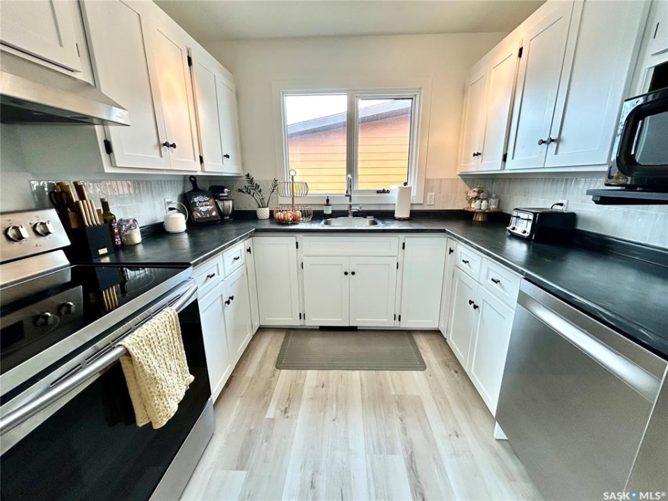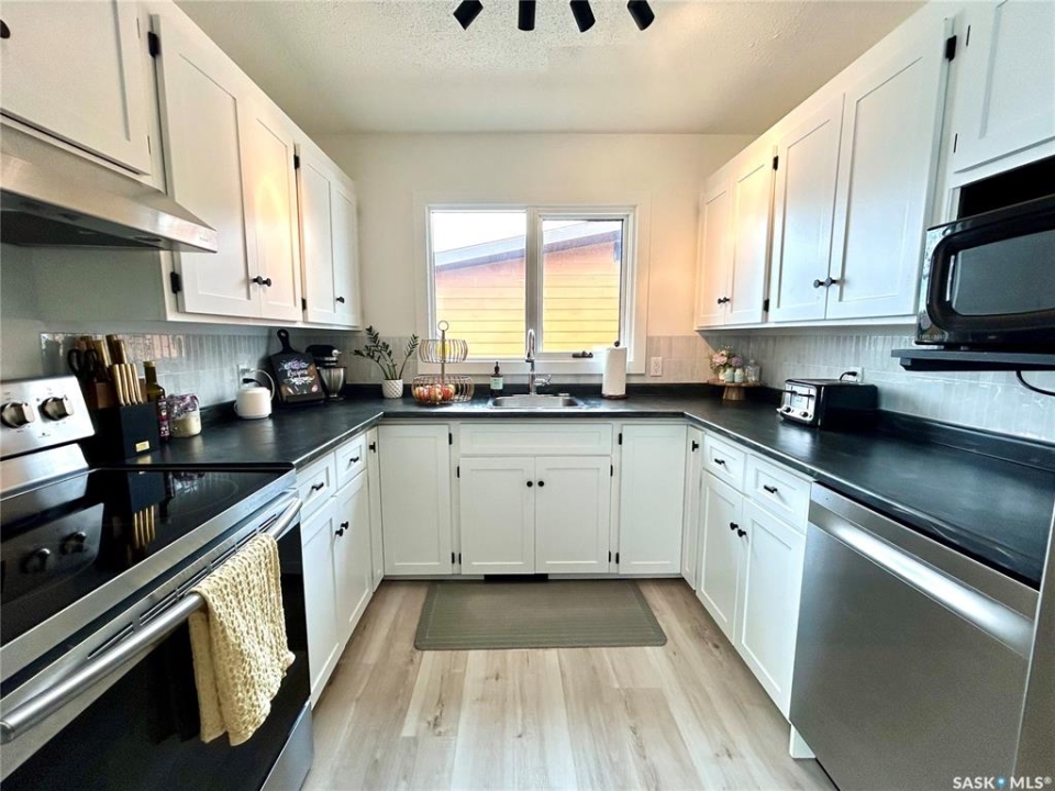 Welcome to this beautifully renovated family home, perfectly situated on the edge of town and just steps from the elementary school - an ideal location for growing families. Nestled on a quiet crescent and backing onto open field, you'll enjoy stunning sunset views right from your backyard. This spacious home offers 5 bedrooms, with 3 up and 2 down, providing a functional layout for families of all sizes. The property has been fully updated throughout, featuring a modern kitchen, refreshed bathrooms, new flooring, paint, fixtures, and upgraded electrical. Stainless steel appliances are included, and the double detached garage adds extra convenience and value. If you're looking for a move-in ready home at an attractive price point, this one is definitely worth a look! Home inspection completed by sellers available for interested buyers.
