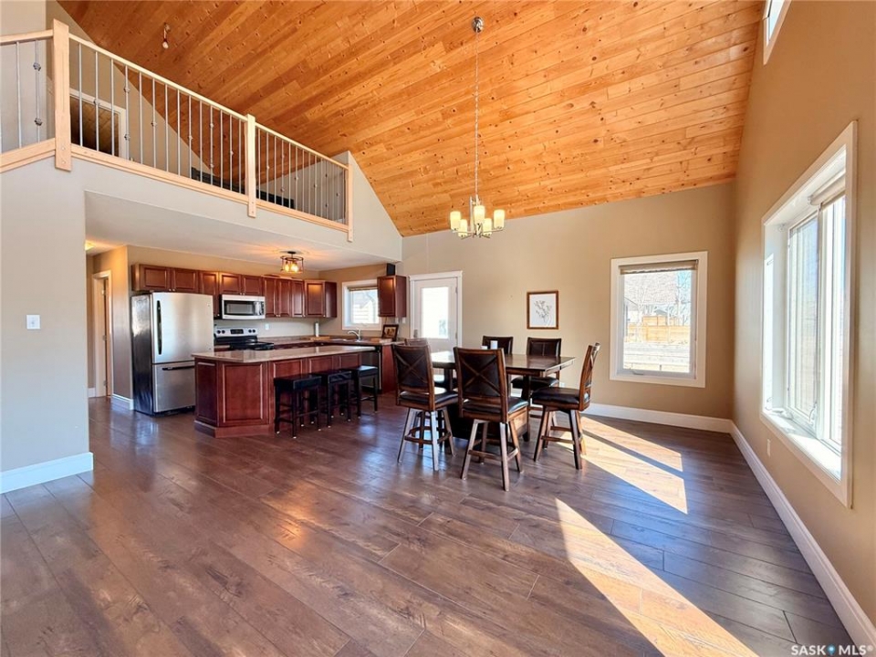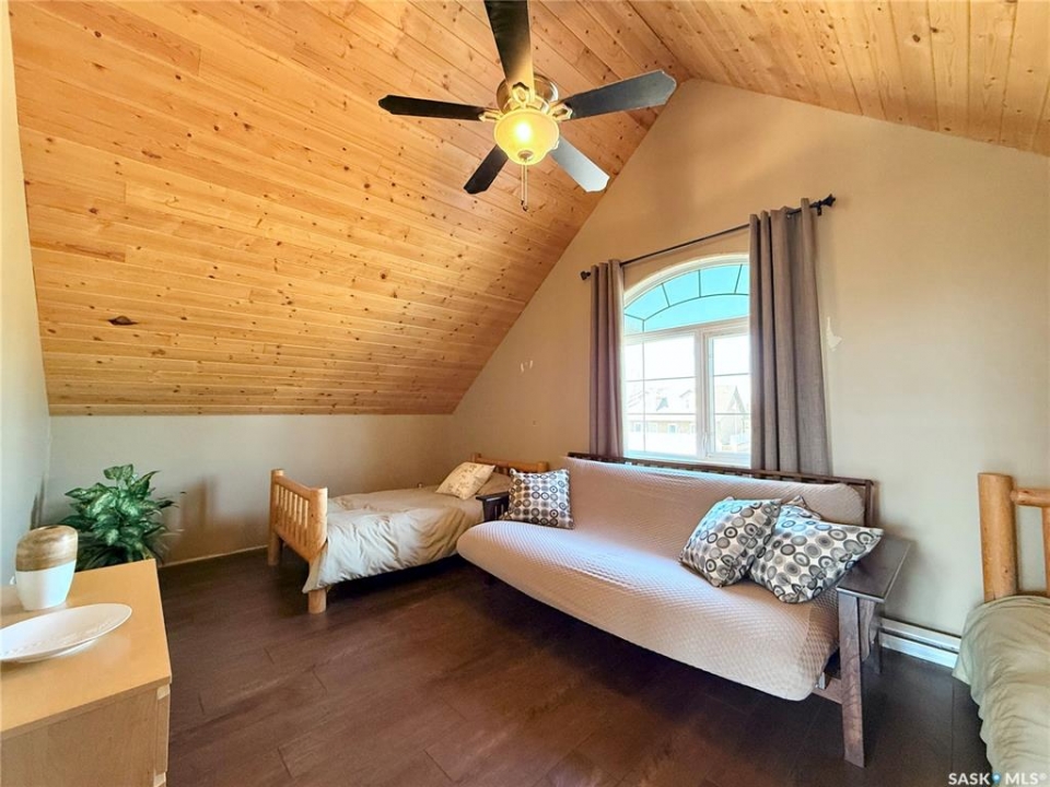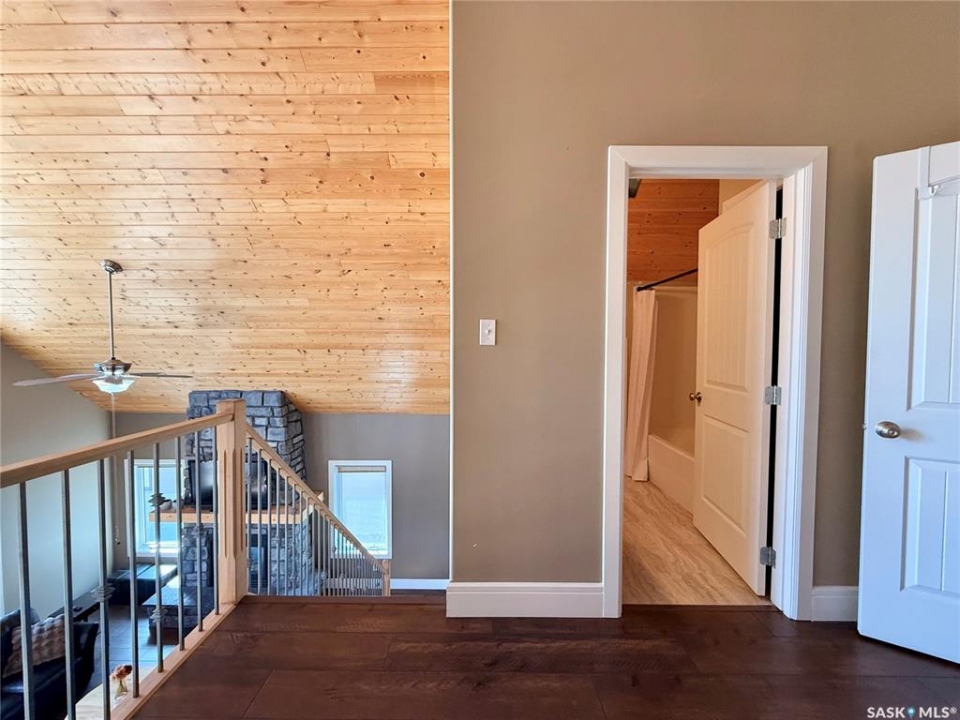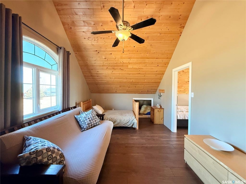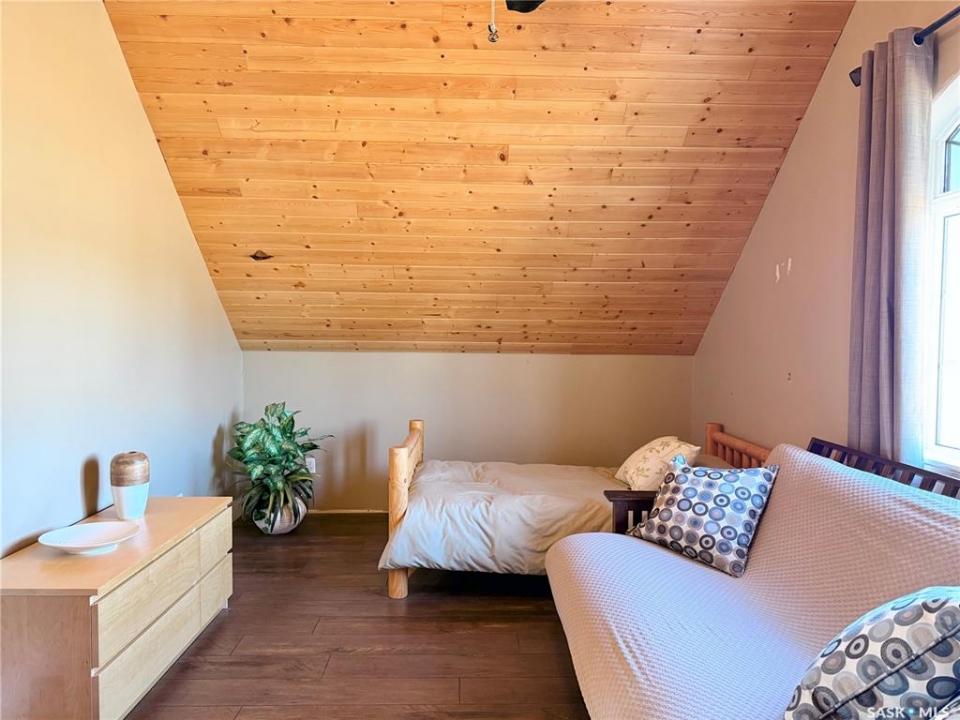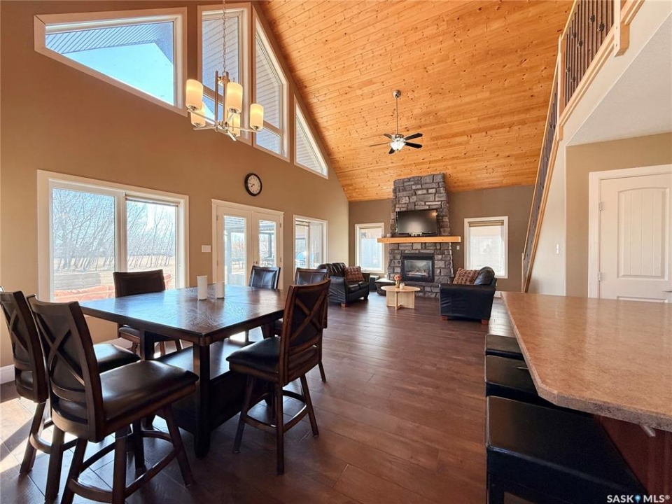 Welcome to this stunning cabin in Hitchcock Bay, offering 1,612 sq ft of inviting living space with soaring vaulted ceilings and warm pine finishes that create a true lakehouse feel. A beautiful floor-to-ceiling stone fireplace anchors the living room, adding warmth and character while large windows frame peaceful views of the surrounding green space. The open-concept main floor is designed for gathering, featuring a spacious living and dining area alongside a well-appointed kitchen with a large island, perfect for hosting family and friends after a day at the lake. Two generous bedrooms, full laundry, and a 5-piece bathroom with dual sinks complete the main level. Upstairs, the loft offers a private retreat with a spacious primary bedroom, cozy bonus sitting area, and a 4-piece bathroom, creating your own quiet escape at the end of the day. Step outside to the expansive wrap-around deck, ideal for morning coffee, evening sunsets, and summer entertaining. The 28 x 28 double garage provides ample room for vehicles, boats, and all your lake essentials. Located just a short walk to playgrounds and backing green space. Located just a short walk to playgrounds and backing green space. Hitchcock Bay offers an incredible lifestyle with access to a double boat launch, beaches, playgrounds, a 9-hole golf course, mini golf, fish filleting shack, community center, pickleball and multi-sport courts, summer programs for kids, swimming lessons, and exceptional fishing, making every season something to look forward to. Enjoy year-round potable water and high-speed internet. Call your favourite realtor to view today.