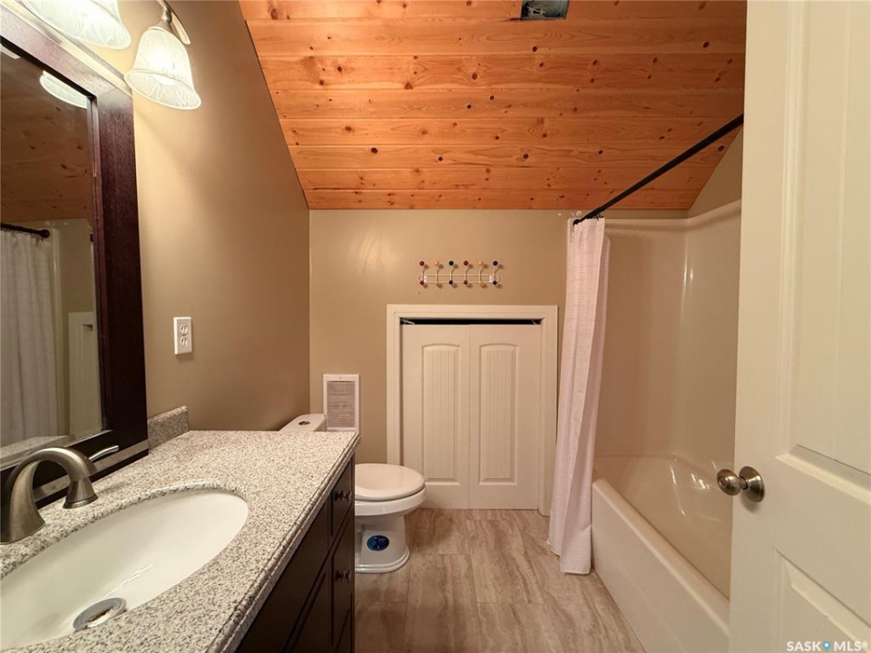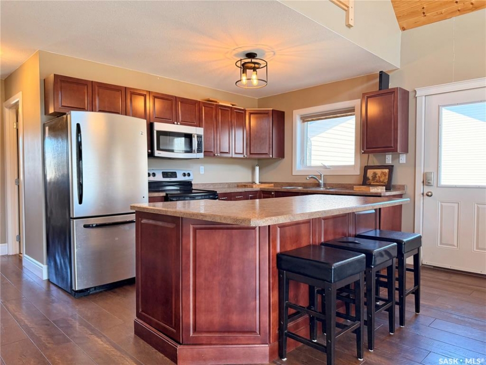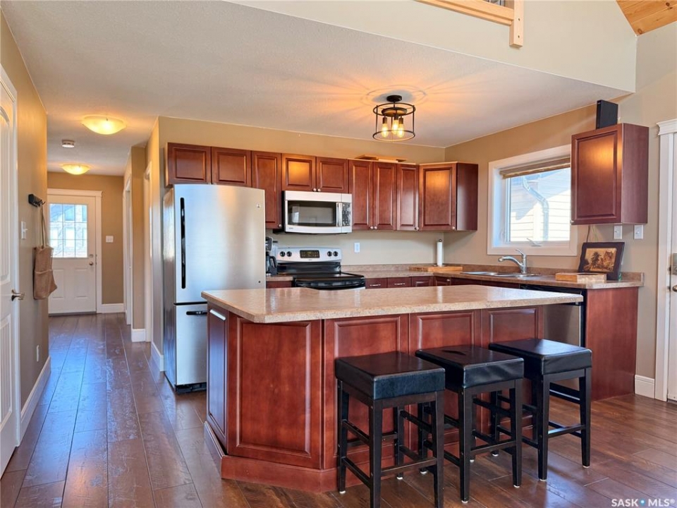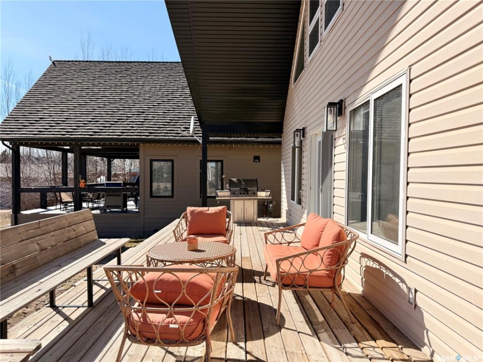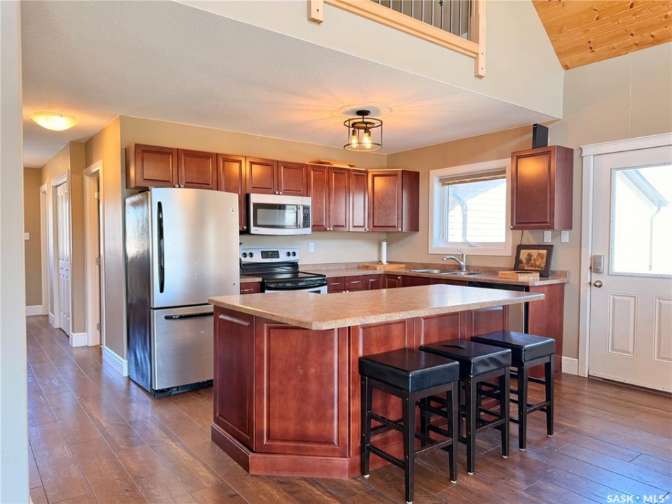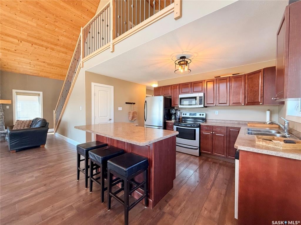Welcome to this stunning cabin in Hitchcock Bay, offering 1,612 sq ft of inviting living space with soaring vaulted ceilings and warm pine finishes that create a true lakehouse feel. A beautiful floor-to-ceiling stone fireplace anchors the living room, adding warmth and character while large windows frame peaceful views of the surrounding green space. The open-concept main floor is designed for gathering, featuring a spacious living and dining area alongside a well-appointed kitchen with a large island, perfect for hosting family and friends after a day at the lake. Two generous bedrooms, full laundry, and a 5-piece bathroom with dual sinks complete the main level. Upstairs, the loft offers a private retreat with a spacious primary bedroom, cozy bonus sitting area, and a 4-piece bathroom, creating your own quiet escape at the end of the day. Step outside to the expansive wrap-around deck, ideal for morning coffee, evening sunsets, and summer entertaining. The 28 x 28 double garage provides ample room for vehicles, boats, and all your lake essentials. Located just a short walk to playgrounds and backing green space. Located just a short walk to playgrounds and backing green space. Hitchcock Bay offers an incredible lifestyle with access to a double boat launch, beaches, playgrounds, a 9-hole golf course, mini golf, fish filleting shack, community center, pickleball and multi-sport courts, summer programs for kids, swimming lessons, and exceptional fishing, making every season something to look forward to. Enjoy year-round potable water and high-speed internet. Call your favourite realtor to view today.