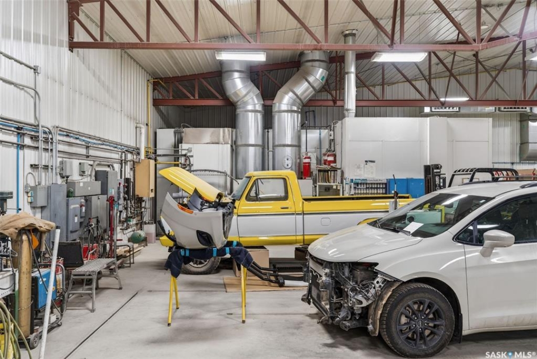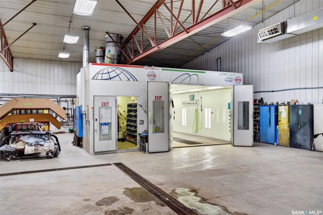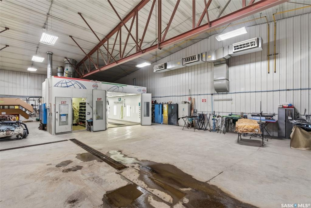 “Check out the Video and Photos of this Modern 7,000 Sq. Ft. Auto Body Facility (Built 2014) with Three-Phase Power & Paint Booth Included.” Turnkey opportunity to own a well-established and highly respected business—"Lanigan Auto Palace", a father-and-son operated auto body repair shop proudly serving the community for over 40 years. This modern, state-of-the-art facility was constructed in 2014 and offers approximately 7,000 sq. ft. (100' x 70') of steel-frame construction designed for efficiency and long-term durability. The building features in-floor heat, three-phase power, two 12-ft overhead doors, plus an additional overhead receiving door for smooth workflow and vehicle movement. Inside, you'll find a professional reception area, multiple offices, and a dedicated staff/lunch room, providing a comfortable and functional workspace. The shop is fully equipped and includes a Global Finishing Solutions Ultra Plus Paint Booth, making this a true turnkey operation for continued success. A 30' x 40' mezzanine adds valuable storage space, while the wash bay connected to town sewer enhances daily operations and efficiency. The property sits on approximately 1 acre of land with 250 feet of frontage, offering excellent accessibility and room for expansion or additional uses. Additional outbuildings provide further storage, including the original shop building and a detached garage, giving flexibility for parts storage, overflow work, or rental potential. A Clean Phase 2 Environmental Report is available, offering peace of mind to buyers. Sellers are open to multiple options and would consider selling the building only, creating an excellent opportunity for investors or operators looking to establish or expand their automotive or light industrial business in the growing community of Lanigan. Call today for more information!