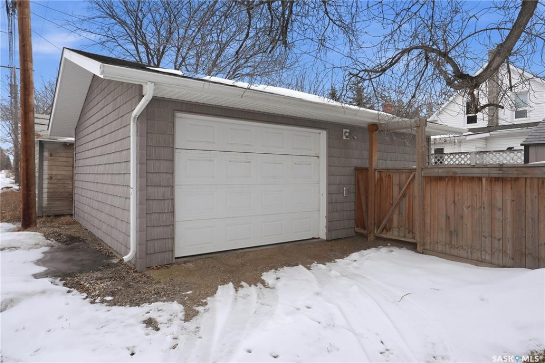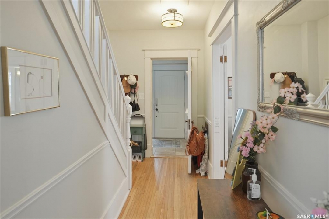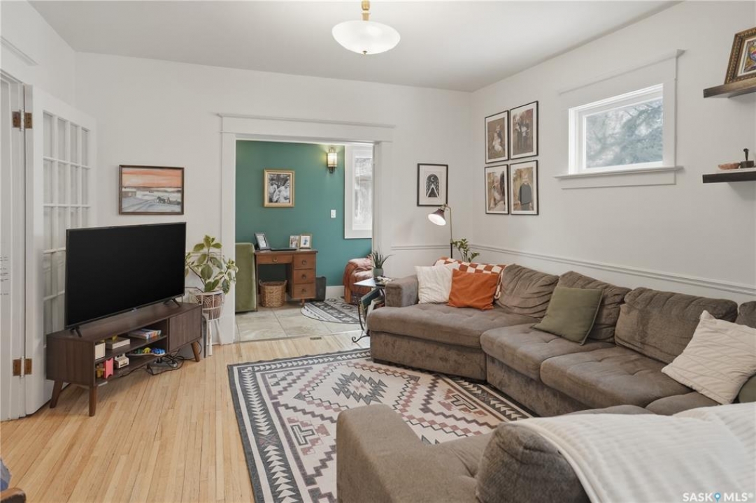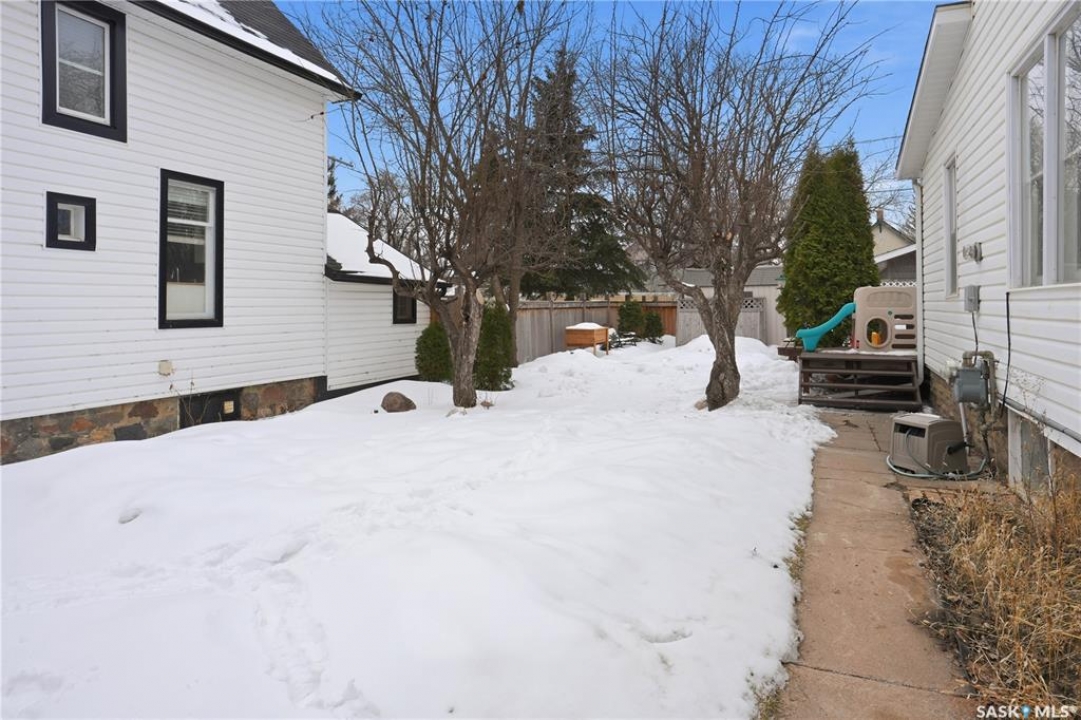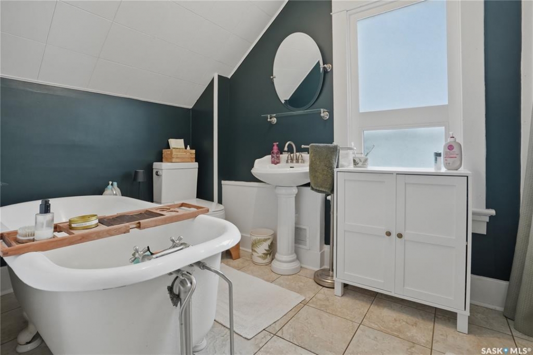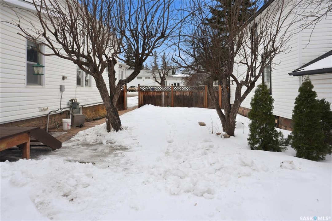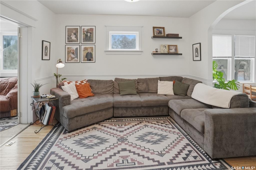 Welcome to this beautiful, well-maintained character home on the west side of North Battleford. Where timeless charm meets everyday functionality! Step inside to a spacious front entry with plenty of room for coats, shoes, and storage, making it perfect for busy households. You'll immediately notice the stunning wood banister that adds warmth and character as it leads upstairs. To the left, a bright and inviting living room flows seamlessly into a sunroom. Ideal for a home office, plant haven, or cozy reading nook. On the opposite side, the generous dining room sits just off the kitchen, creating a perfect space for hosting family dinners or entertaining guests. The kitchen features a large island and ample storage, and opens into a comfortable sitting area at the back of the home. A convenient main floor bedroom, currently used as a playroom, helps keep toys tucked away, along with a 2-piece bathroom and main floor laundry. Upstairs, you'll find three additional bedrooms and a spacious 4-piece bathroom complete with a classic clawfoot tub and a separate walk-in shower. The basement offers even more living space with a family room and plenty of storage options. This home is equipped with hot water on demand and central air conditioning for year-round comfort. Outside, enjoy a deck perfect for BBQ season, a private patio, and a fully fenced yard with green space and a small garden area. A single detached garage with an attached shop/storage space completes this fantastic property. Where classic charm, generous space, and everyday functionality come together. This is a home you won't want to miss!