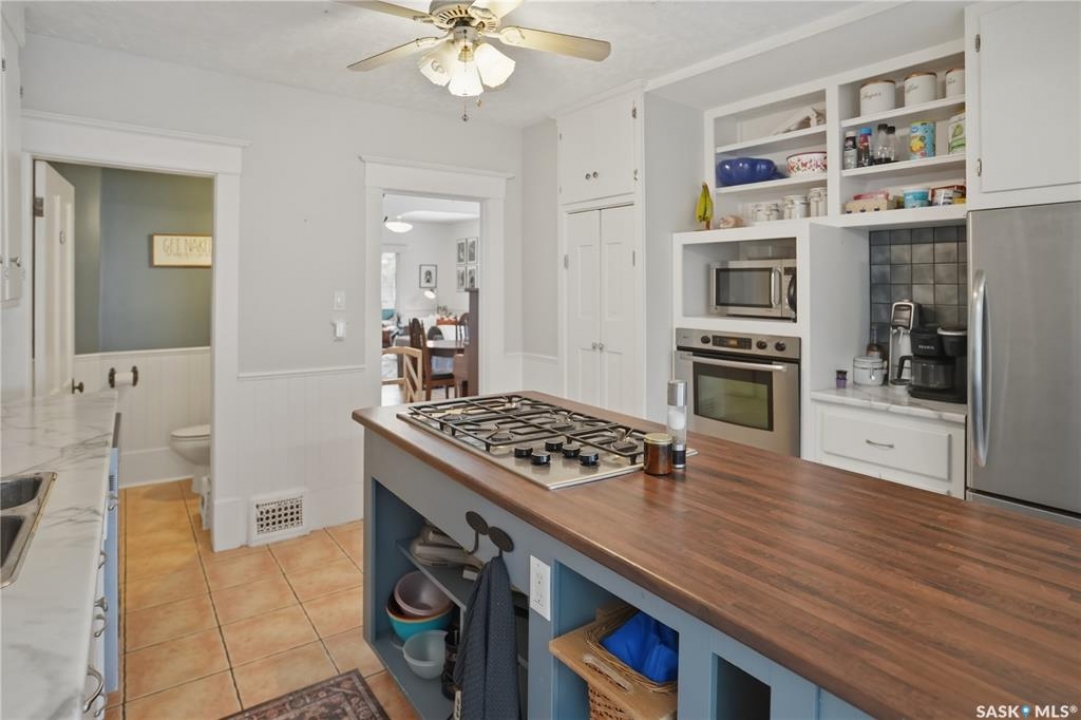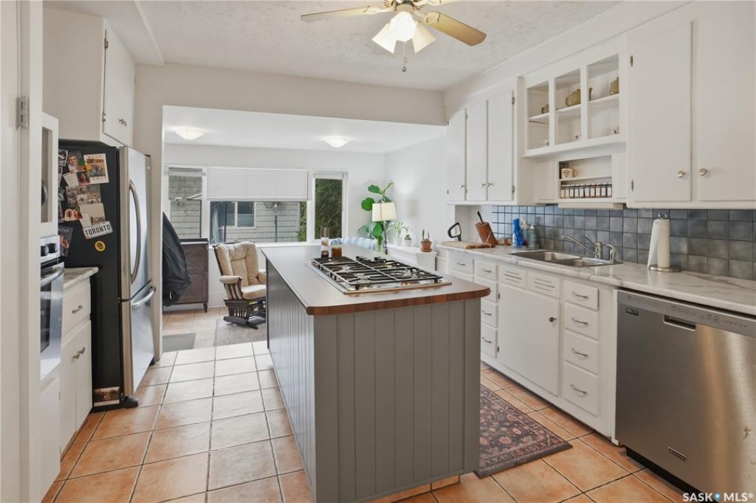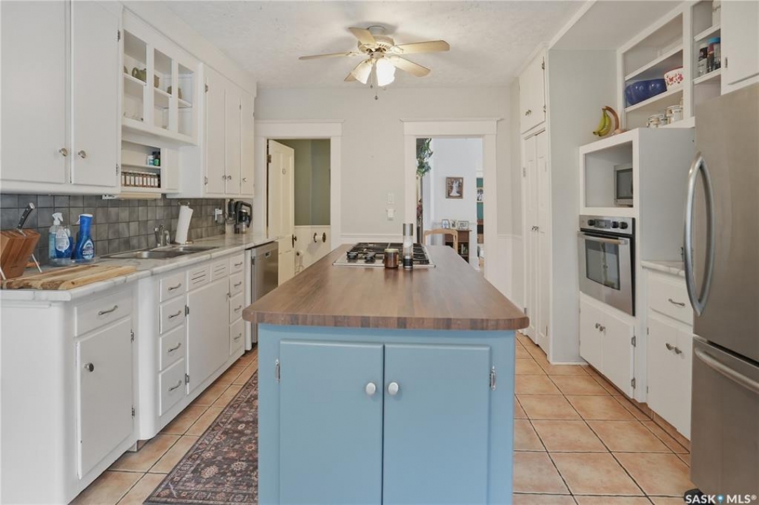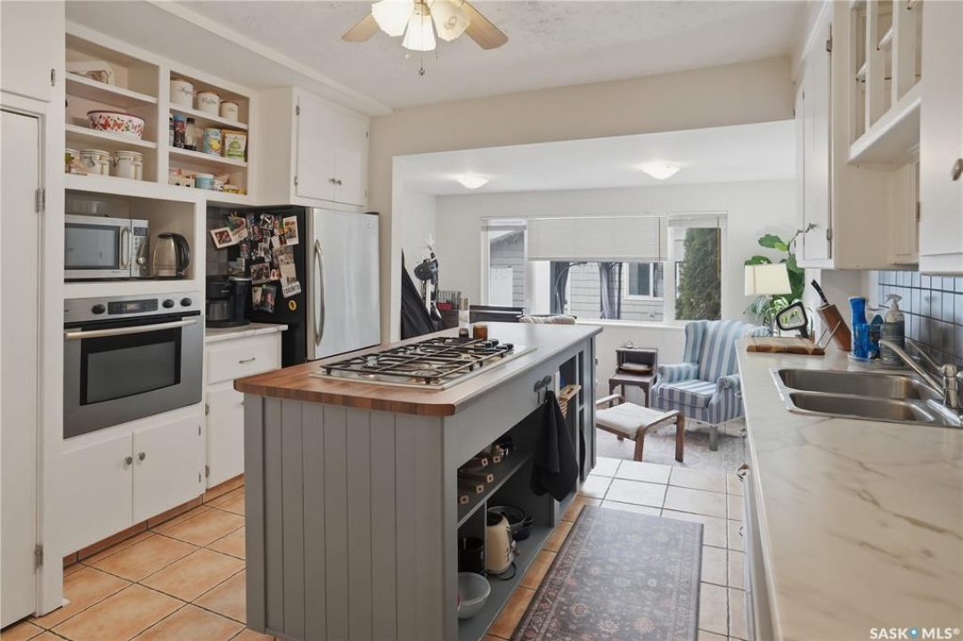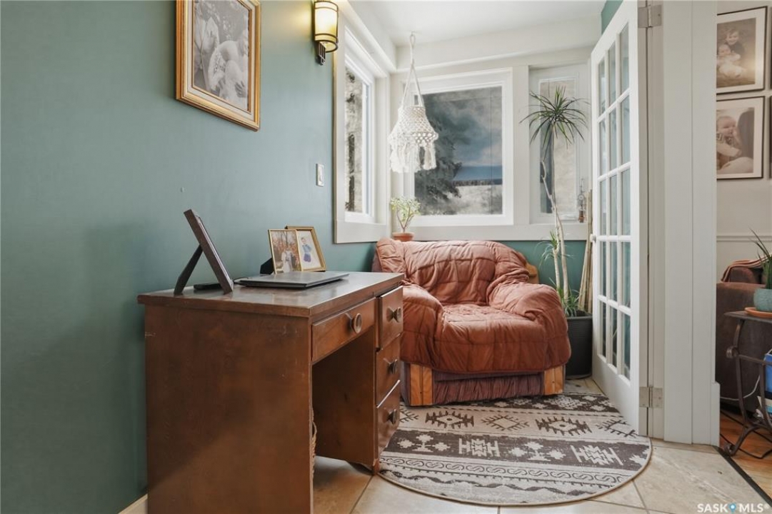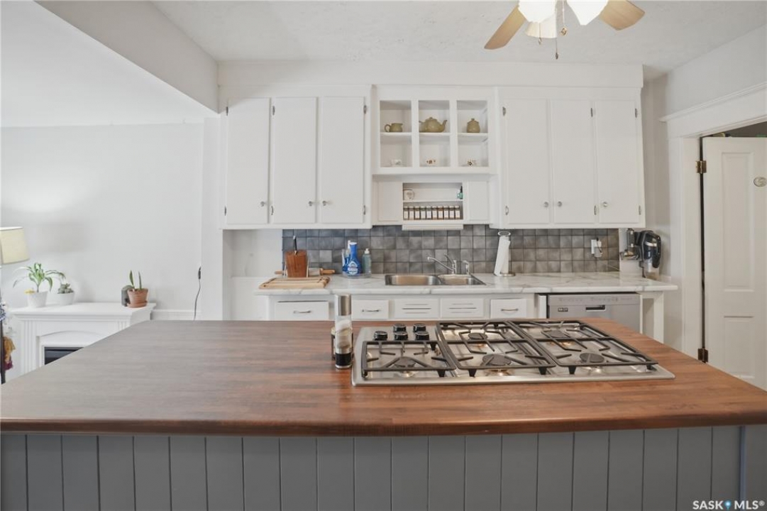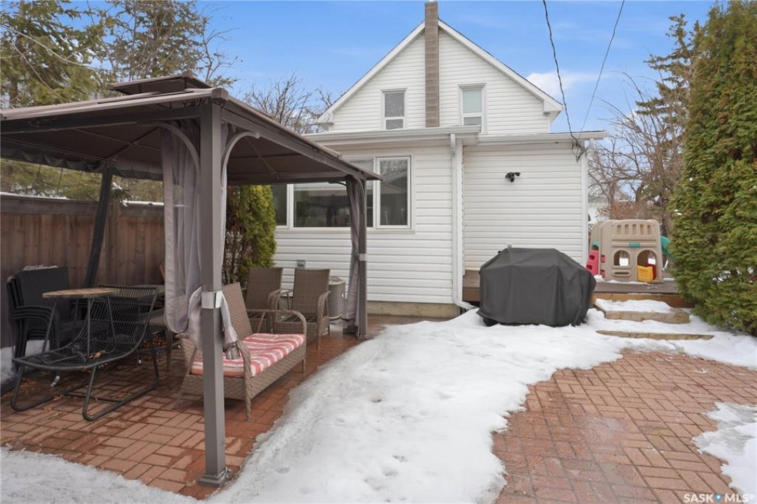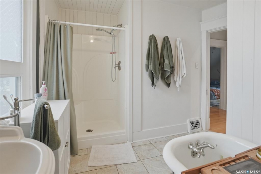Welcome to this beautiful, well-maintained character home on the west side of North Battleford. Where timeless charm meets everyday functionality! Step inside to a spacious front entry with plenty of room for coats, shoes, and storage, making it perfect for busy households. You'll immediately notice the stunning wood banister that adds warmth and character as it leads upstairs. To the left, a bright and inviting living room flows seamlessly into a sunroom. Ideal for a home office, plant haven, or cozy reading nook. On the opposite side, the generous dining room sits just off the kitchen, creating a perfect space for hosting family dinners or entertaining guests. The kitchen features a large island and ample storage, and opens into a comfortable sitting area at the back of the home. A convenient main floor bedroom, currently used as a playroom, helps keep toys tucked away, along with a 2-piece bathroom and main floor laundry. Upstairs, you'll find three additional bedrooms and a spacious 4-piece bathroom complete with a classic clawfoot tub and a separate walk-in shower. The basement offers even more living space with a family room and plenty of storage options. This home is equipped with hot water on demand and central air conditioning for year-round comfort. Outside, enjoy a deck perfect for BBQ season, a private patio, and a fully fenced yard with green space and a small garden area. A single detached garage with an attached shop/storage space completes this fantastic property. Where classic charm, generous space, and everyday functionality come together. This is a home you won't want to miss!