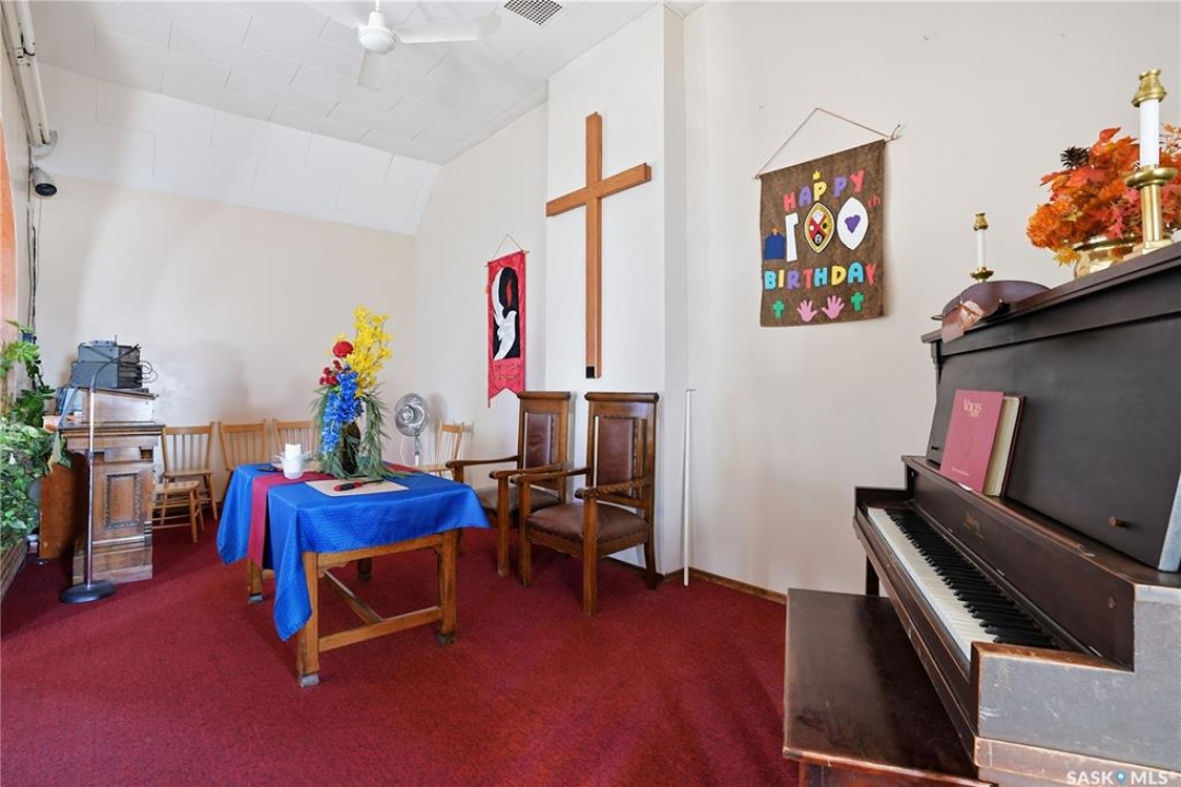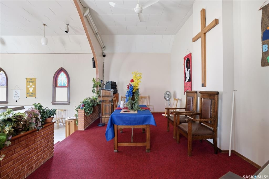 Unique opportunity here! This well maintained Church is located in the bustling town of Central Butte. Situated on a large corner lot with lots of parking and across the street from the school. Pride of ownership shows throughout as the facility has been well maintained. Heading inside we find a foyer / coat room with the first set of stairs to the basement. Next we find the main sanctuary with hardwood floors, vaulted ceilings and stained glass windows - the possibilities are endless for this space. Off the stage we find an office space with access to the side yard and to the basement. Downstairs we find a large open space as well as an office, a kitchen and 2 bathrooms. Whether you are looking for a Church, a commercial space or a beautiful building to convert into a custom home. Opportunities like this don't come along very often. Reach out today to book your viewing!