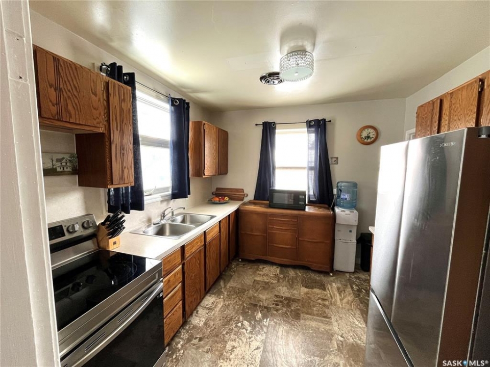 Exceptionally, well cared for, 943 sq. ft. Bungalow, with 3 bedroom, 2 bathrooms on a fully fenced-in (chain link) yard. Main floor features original hardwood throughout living room, dining room, & porch. The main bathroom was renovated in 2026. Newer Samsung fridge and stove in 2024. Most windows on main floor have been replaced with PVC opening windows. New flooring was installed in basement in 2023. Basement includes large bedroom, Family room & 3pc bath which was renovated in 2025. The shingles were replaced with 30yr shingles on house and garage in 2025. This yard is fully fenced-in complete with a 1 car 18'x24'detached, heated garage with plenty of extra parking! Don't Miss out on this Super Buy!!