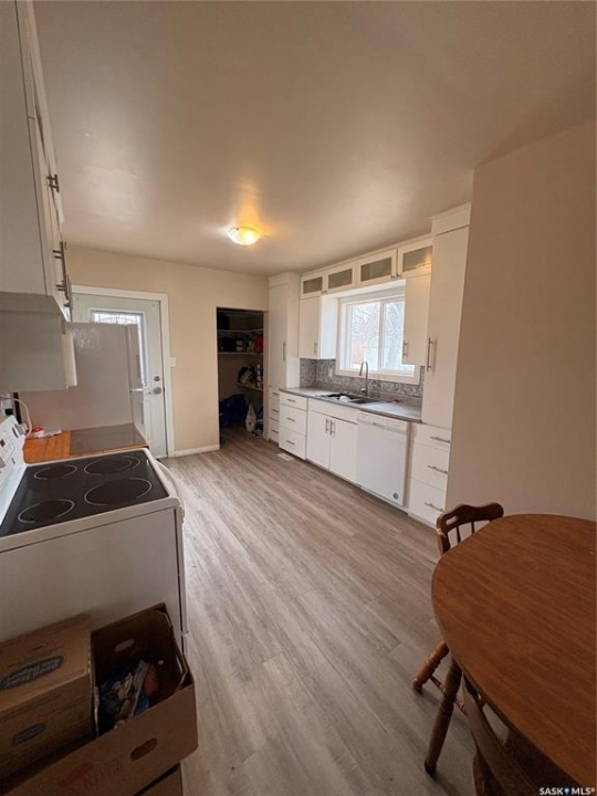 Welcome to this charming 2-bedroom bungalow nestled in the quaint community of Lafleche, SK - where small town living meets everyday comfort. Step inside and you'll immediately notice the abundance of natural light flowing throughout the main level, complemented by updated windows (2021). The functional layout offers a cozy living room with a bedroom just off to the side, while the combined laundry and 3-piece bathroom adds everyday convenience right on the main floor. The open-concept kitchen is both practical and inviting, featuring a large pantry for extra storage and a dedicated dining area - perfect for casual meals or morning coffee. Just off the living room, the spacious primary bedroom includes a generous walk-in closet, offering plenty of room for storage. Downstairs, the basement is a blank canvas ready for your personal touch - whether you're dreaming of extra living space, a rec room, or additional bedrooms. Outside, you'll find a single detached garage and a manageable yard, ideal for those looking for low-maintenance living. Located in the welcoming town of Lafleche, you'll appreciate convenient local amenities including a Co-op gas station, library, restaurants, K–12 school, and post office, all just minutes away. If you've been looking for an affordable home with charm and potential in a peaceful community, this could be the perfect fit. Book your showing today!