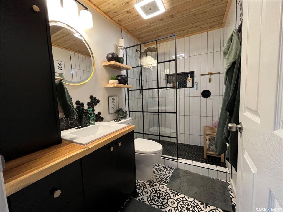 Welcome to this beautiful 4 level split home located in a quiet neighbourhood in North Battleford. Built in 1954 with additions completed in 1995, this 1,748 ft � property offers a great blend of character and functional living. Featuring 4 bedrooms and 3 bathrooms, this home is well suited for families or anyone needing extra space. The layout provides multiple living areas across different levels, great for privacy or gathering. Recent updates include new flooring throughout, updated light fixtures, and new front windows. The kitchen features newer appliances, including a brand new stovetop and microwave. Bathrooms have been refreshed, including a spa like ensuite off the primary bedroom. A beautiful wood burning fireplace adds character to the living room, though it is currently not functional. Outside, the spacious driveway was lifted and eaves on the south side were replaced in 2025. The property also includes a workshop that could be converted into a single car garage. The backyard is truly unique, featuring a courtyard on the north side and terracotta coloured concrete with minimal grass. There is still plenty of garden bed space, making it both low maintenance and ideal for outdoor enjoyment. Don't miss the opportunity to book a viewing today!