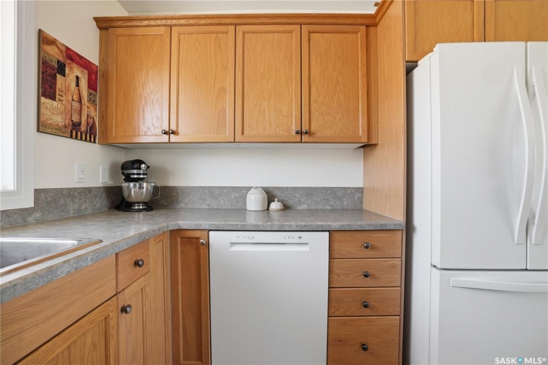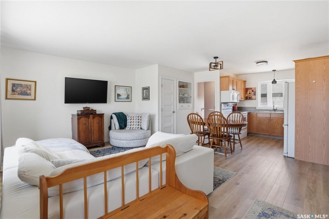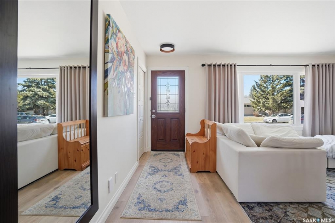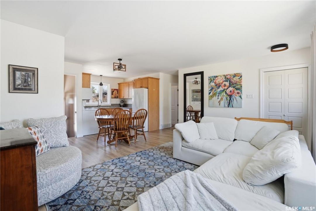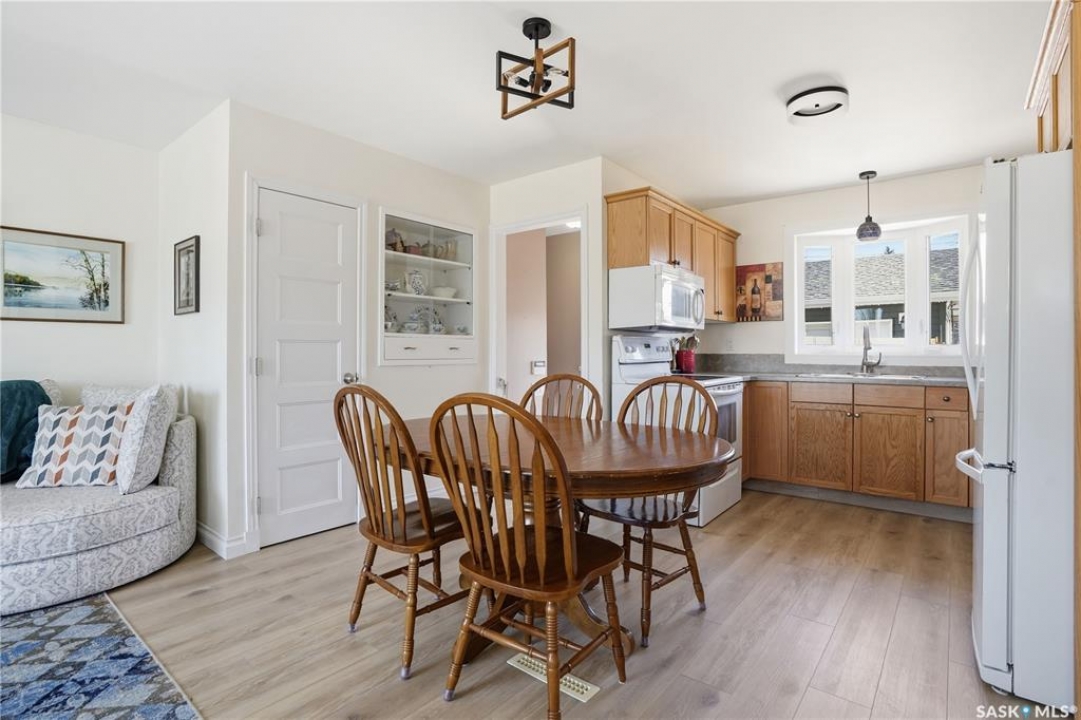 Extensively renovated 4 bedroom home with beautiful street appeal. Bright kitchen with open dining area and living room, 3 good sized bedrooms on main, doors to deck off primary bedroom, 4 pc bath has Bathfitters tub/surround, finished basement with t-bar ceiling and pot lites, large 3 pc bath, rec room, big bedroom with extra den area and walk in closet with built-ins, laundry and storage, matching double electrified garage with lots of room behind, great yard, underground sprinklers, big private deck, fire pit, fenced, basement was excavated, braced, blue skinned 3 sides, spray foamed, newer windows, shingles, electrical panel. New since 2020: Hi-eff furnace, kitchen exhaust through roof, dishwasher, wood fencing, sump pump, main floor paint, radon control, attic insulation, some lights, basement speakers, LVP in kitchen, livingroom & hall, home has rare for it's age truss roof system, smoke free home a pleasure to see. E. & OE.