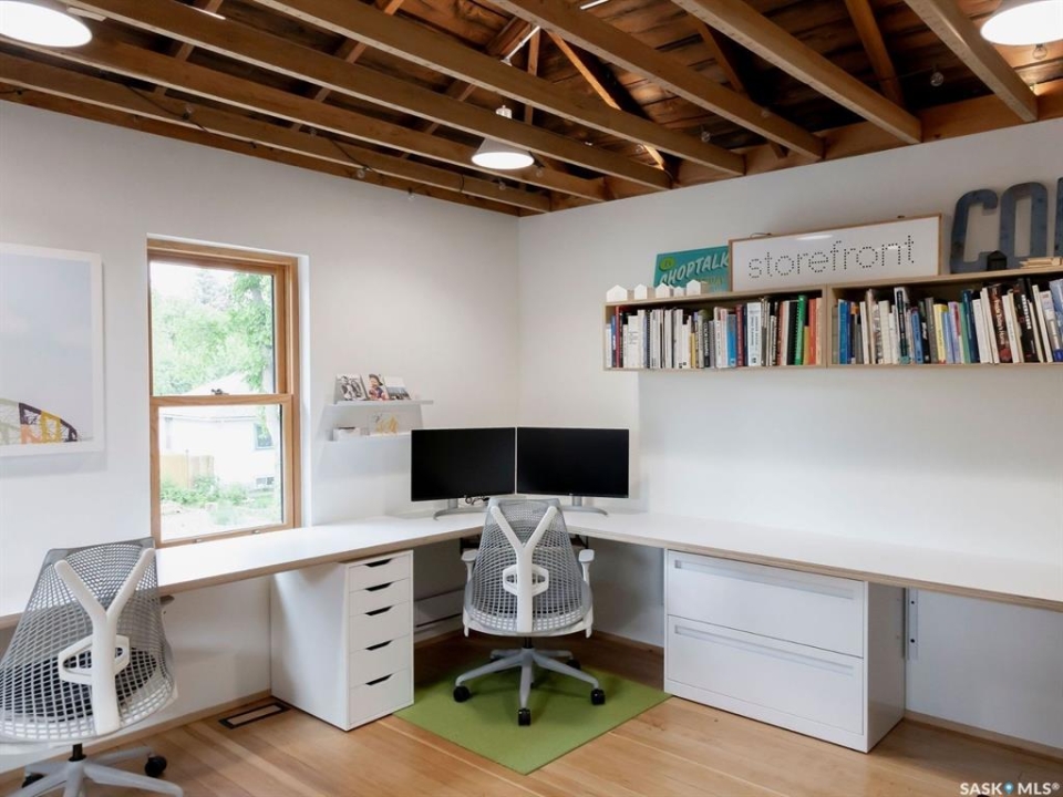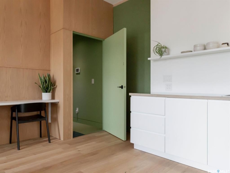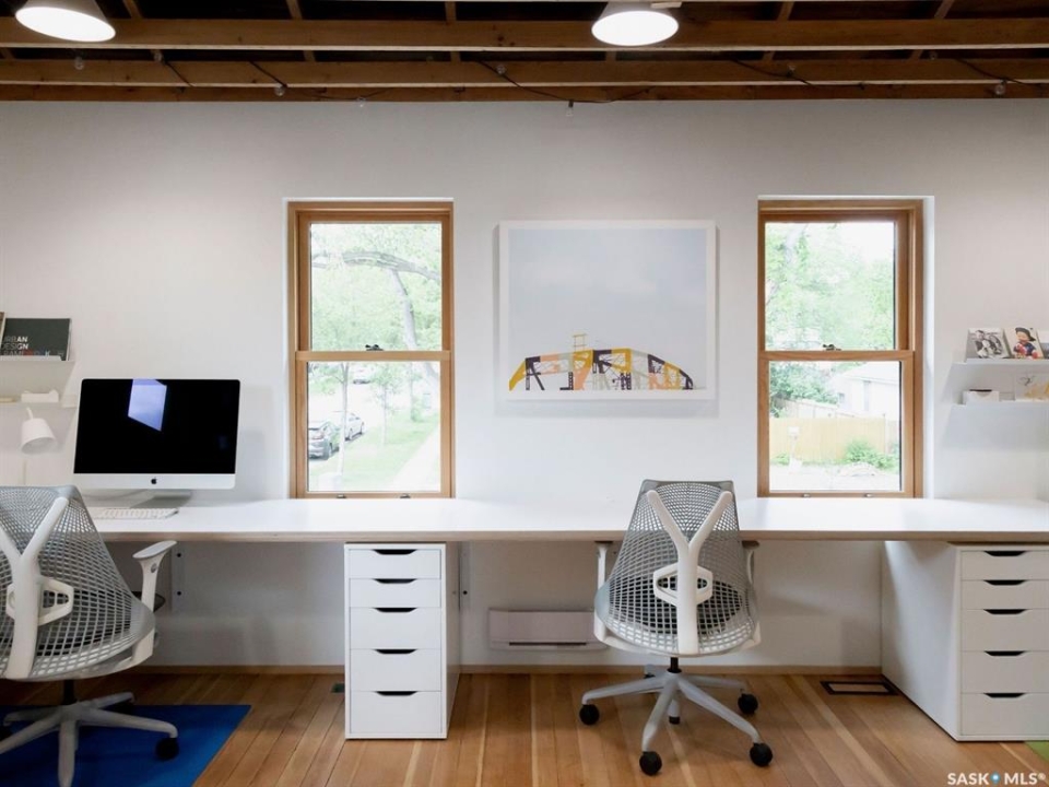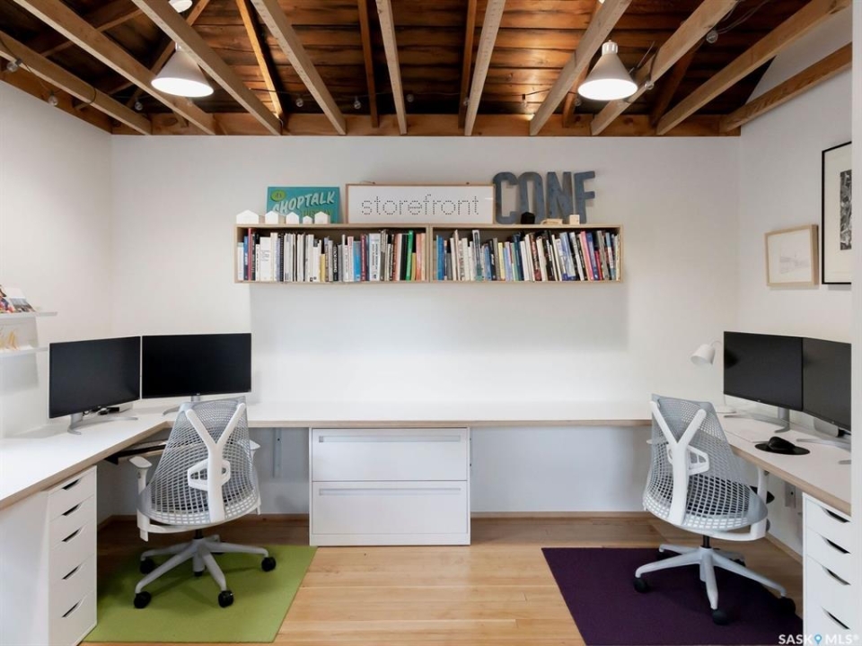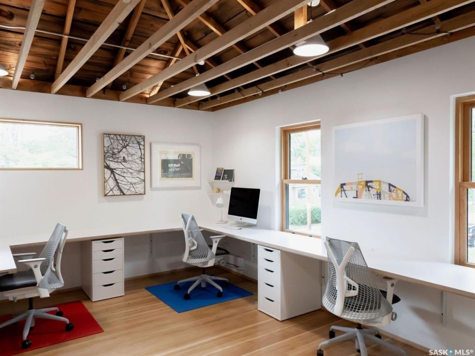 This is a freestanding commercial property in Caswell Hill, Saskatoon - fully renovated in 2020 by a licensed architectural technologist. The work is structural, mechanical, and architectural: the building was taken to its foundation and rebuilt with the discipline of someone who designs for a living. The result is 1,200 square feet with an effective age of approximately five years and zero deferred maintenance. The interior features white oak millwork, exposed timber ceiling, polished concrete floors, and black steel detailing throughout. The space is move-in ready and suited to professional use without modification. The property is freestanding - no shared walls, no condo corporation, no fees. Two dedicated parking stalls. Corner lot with a landscaped rear yard. B1 zoning permits a broad range of neighbourhood commercial uses including office, retail, personal service, and studio operations. Located steps from the Caswell Bus Barns, the property sits in one of Saskatoon's most soon to be active and design-forward neighbourhoods. The environment, the condition, and the location of this exquisite building are aligned for a designer, architect, consultant, wellness professional, creative studio, or neighbourhood café seeking to own rather than lease.