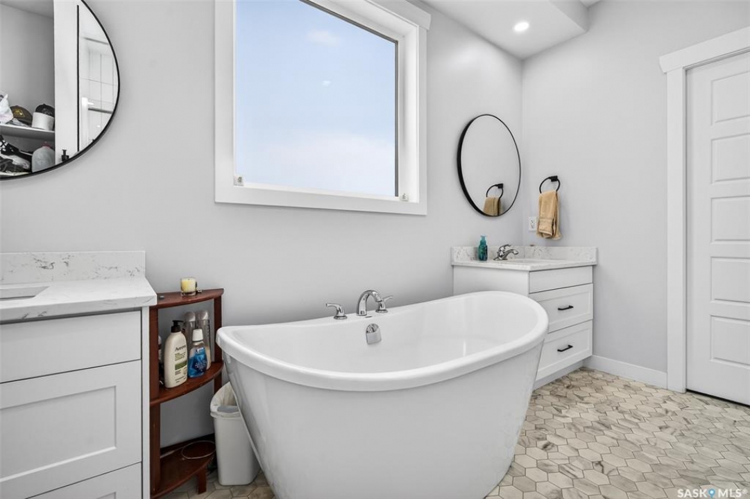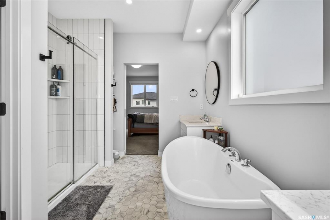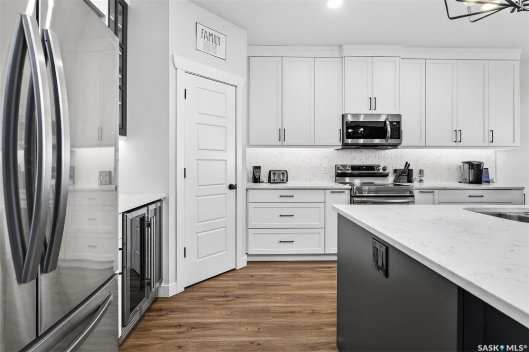 This just might be your DREAM HOME! Welcome to 978 Maplewood Drive in the desirable, family friendly West Park area of Moose Jaw! This stunning home is thoughtfully designed to seamlessly blend luxury with everyday functionality and offers over 2600 sq ft of refined and cohesive finishes throughout A welcoming front foyer framed by large corner windows immediately sets a bright, airy tone. Nearby, a thoughtfully placed mudroom, with large walk in close, and laundry area offers everyday convenience with direct access to the attached, heated triple car garage! The main living space is nothing short of impressive, with dramatic two storey ceilings and oversized windows that fill the home with natural light. A striking, full height custom fireplace wall serves as the focal point, adding warmth and architectural interest to this inviting space—perfect for both quiet evenings and entertaining. The kitchen delivers both style and performance, offering a fresh and crisp feel with its white cabinetry and oversized island with gorgeous quartz countertops! Off the main living area is the Primary Bedroom which offers a serene escape, complete with a luxurious ensuite showcasing his and hers sinks, a freestanding soaking tub, tiled shower, private water closet, and an expansive walk in closet. Above, the second level offers an open, versatile bonus living area, a divided layout of 1 bedroom and one full bath to the left and 2 additional bedrooms with ‘jack and jill' style bath, all overlooking the main level while maintaining excellent separation of space. Downstairs, the fully developed lower level provides even more room to spread out, featuring a comfortable and cozy family room a spacious flex room currently used as a home gym, a fifth bedroom with walk in closet, and full bath. Step out the patio doors to find yourself in your fully fenced and landscaped backyard, with covered deck - Perfectly designed for outdoor entertaining and relaxation!