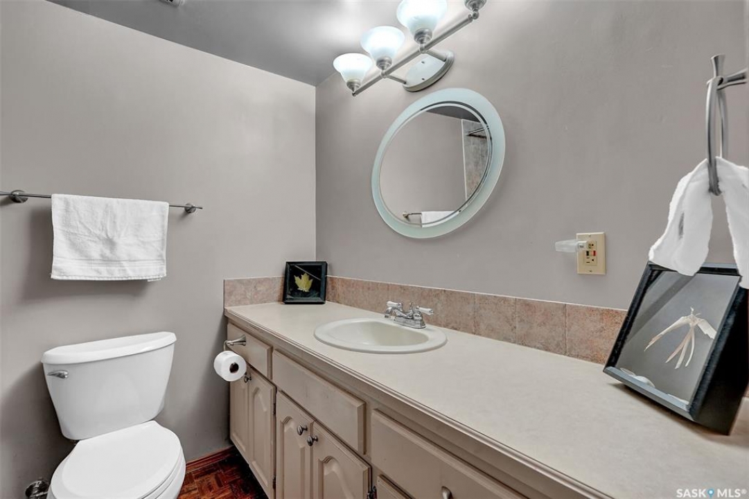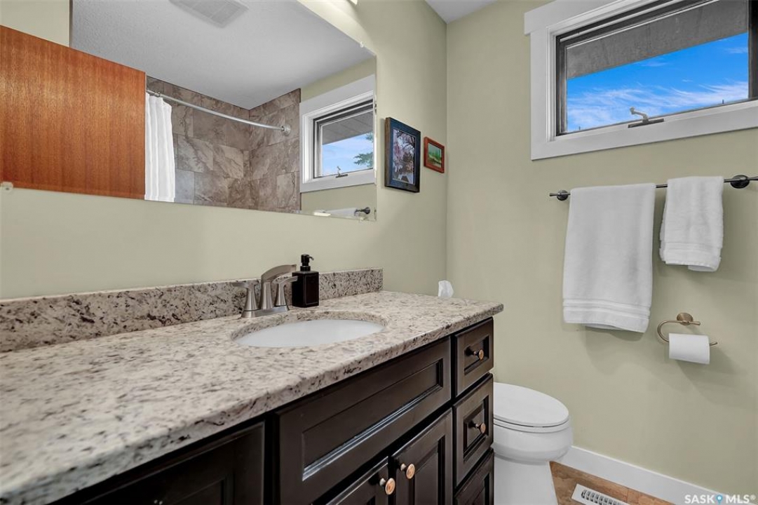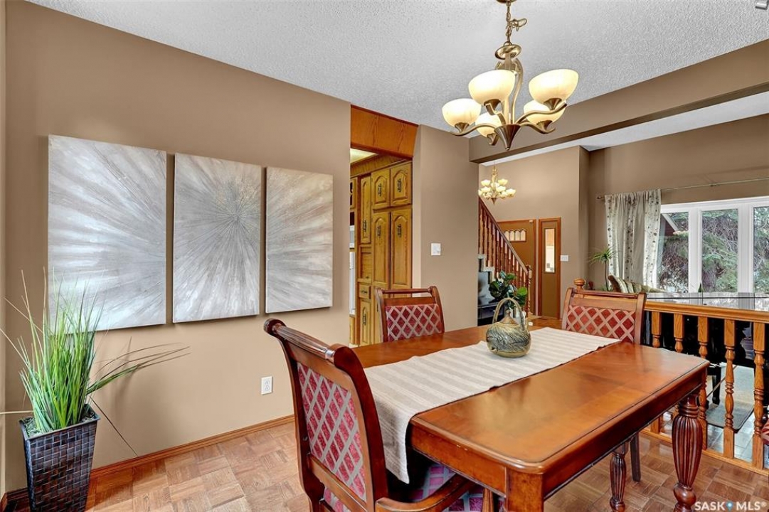 Built by Fiorante Homes, situated in the desirable Lakewood neighbourhood on a quiet bay, this impressive 1,816 sqft 2 storey home offers excellent street appeal and a functional layout. Upon entering, you're welcomed by a spacious foyer that opens into a formal living room featuring 13-foot ceilings and a large bay window overlooking the bay. The adjacent dining room is ideal for entertaining. The kitchen offers oak cabinetry and bay window to the back yard. There is an everyday eating area with direct access to a maintenance-free deck with aluminum railing. The fully fenced backyard features mature trees and a storage shed. Off the dining area, the sunken family room boasts 9 foot ceilings, a wood burning fireplace with brick façade and wood mantel, with built-in oak cabinetry. The main floor is completed with a laundry room with utility sink and a convenient two-piece bath. Upstairs features three bedrooms, including a spacious primary suite with a renovated four piece ensuite with custom tile surround. The primary bedroom also includes a private balcony with aluminum railing and Trex decking overlooking the backyard. A renovated four-piece main bathroom includes granite countertops, undermount sink, and tiled tub surround. The additional bedrooms are a good size and feature upgraded triple-pane windows. An open view from the upper level overlooks the living room below. The basement is fully developed with new carpet (March 2026), a recreation room with dry bar, a four-piece bathroom, and a large utility room for storage. Additional highlights include a double attached insulated garage and a mature yard.