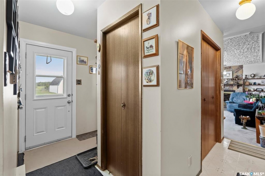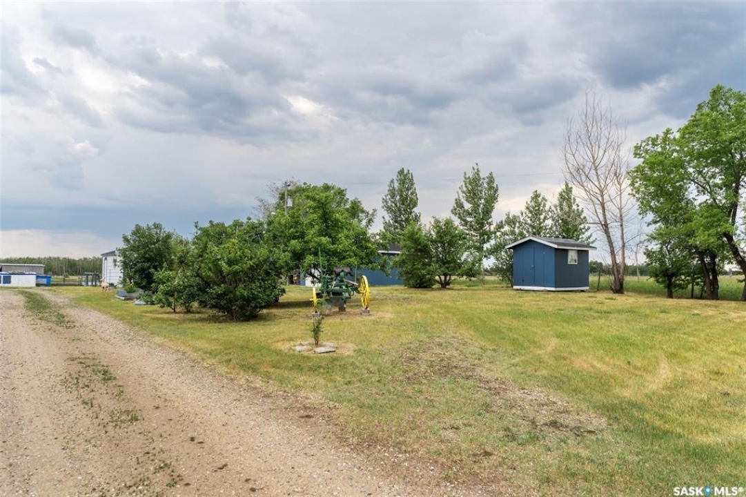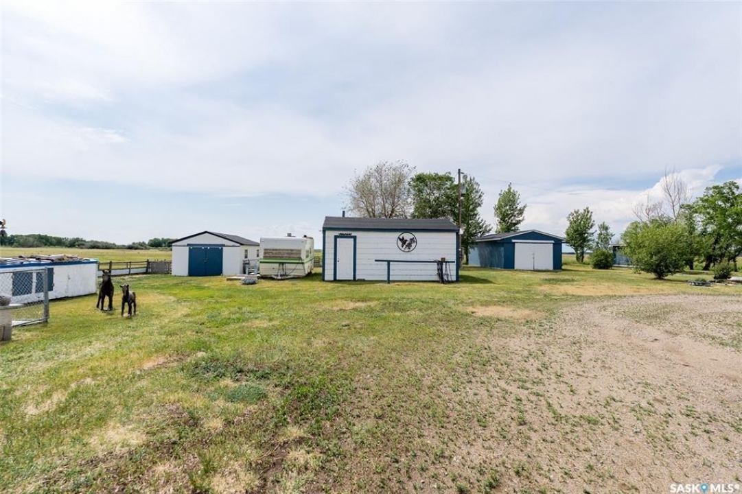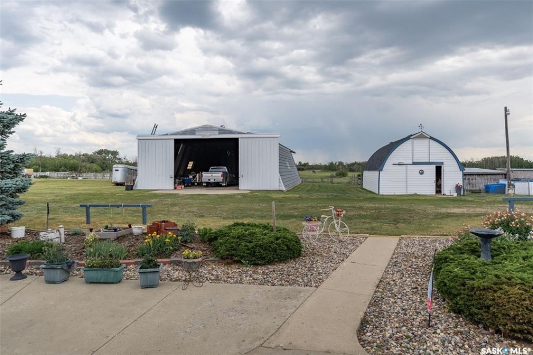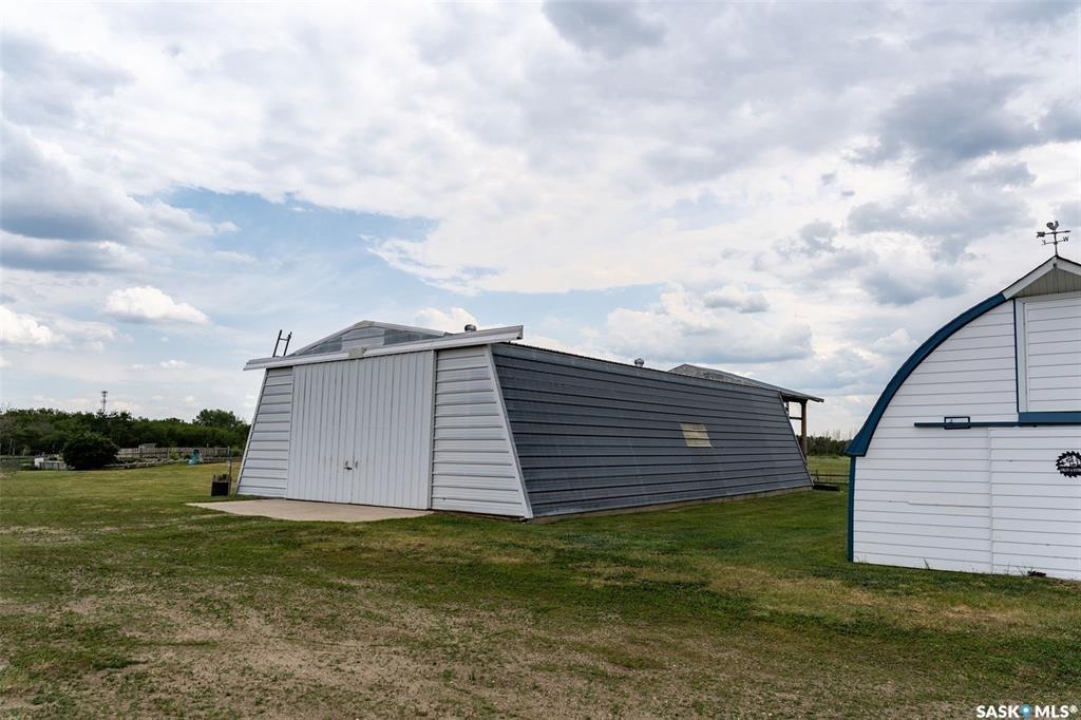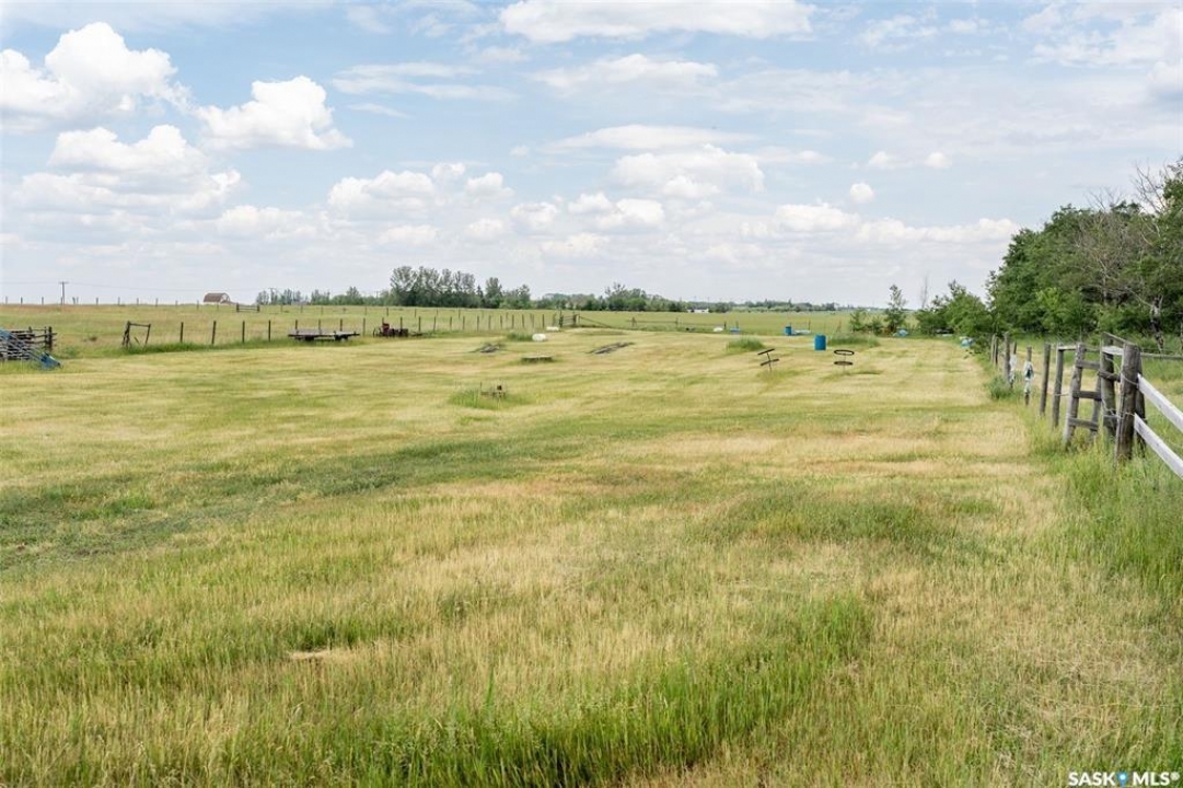 Discover 55.92 acres of opportunity on pavement just minutes from Saskatoon. This well-located property offers an excellent setup for a hobby farm, ideally suited for small livestock such as sheep or goats, with fenced and cross-fenced pasture and watering bowls already in place. The yard site is well-equipped with a massive 40' x 66' Quonset with concrete floor, multiple outbuildings, and established shelters to support a variety of agricultural uses. Functional and versatile, it's ready to accommodate your operation from day one. The solid 1,617 sq ft bungalow, built in 1973, offers generous living space and has seen key updates including siding, windows, and roof providing added efficiency and curb appeal. Nestled among mature trees with expansive prairie views, it's a comfortable and inviting place to call home. With pavement right to the driveway and close proximity to city amenities, this property delivers the perfect balance of rural living and convenience. A rare opportunity to own a well-appointed acreage in a highly desirable location.
