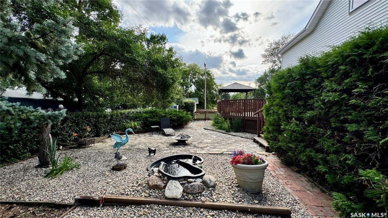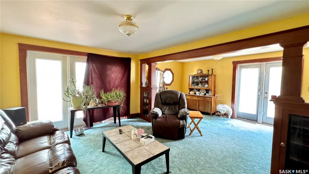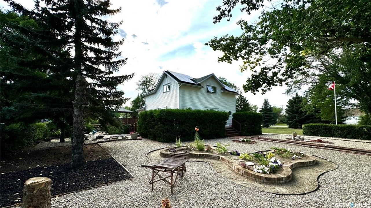 106 2ND ST EAST, DINSMORE, SK Discover the perfect blend of CHARACTER and MODERN CONVENIENCE in this charming 1910 home, thoughtfully expanded with a 1983 addition. Offering over 2,200 SQ FT, this spacious property features 5+ BEDROOMS and 4 BATHROOMS, including a PRIMARY BEDROOM with ENSUITE, plus the convenience of MAIN FLOOR LAUNDRY. A versatile main floor den provides the option for a 6TH BEDROOM or HOME OFFICE. The LIVING ROOM and DEN are currently being updated with NEW VINYL PLANK FLOORING, adding a fresh, modern touch. Updated photos will be available soon. The FINISHED BASEMENT adds even more living space with a FAMILY ROOM, ADDITIONAL BEDROOM, 3-PIECE BATH, WORKSHOP, and LARGE UTILITY ROOM. Inside, you'll appreciate the ORIGINAL HARDWOOD TRIM, preserving the home's timeless appeal, paired with updated flooring in key areas. Patio doors lead to a spacious deck, ideal for relaxing or entertaining, while SOLAR PANELS enhance energy efficiency with approx 6 months remaining on payments. Utility costs are economical, approximately $2,300/year SaskPower, $800/year SaskEnergy, and $110/month for water, sewer, and garbage. Key updates over the past 15 years include a HOT WATER BOILER, SELECT WINDOWS and DOORS, and SHINGLES (2016). Sewer lines have been maintained, with roto-rootering completed and most clay lines replaced from the house to the street. Situated on a large 162 x 130 LOT, this property features MATURE LANDSCAPING, PERENNIAL GARDENS, SPRUCE TREES, STONE PATHWAYS, and VIBRANT FLOWER BEDS. A SINGLE DETACHED GARAGE adds additional functionality. This DINSMORE, SK HOME FOR SALE offers a rare combination of SPACE, CHARACTER, UPDATES, and ENERGY EFFICIENCY, making it a truly inviting place to call home.