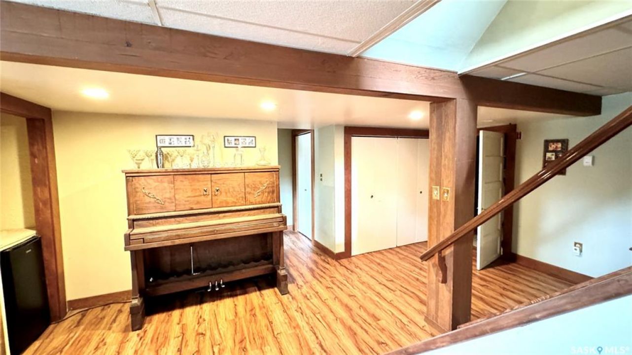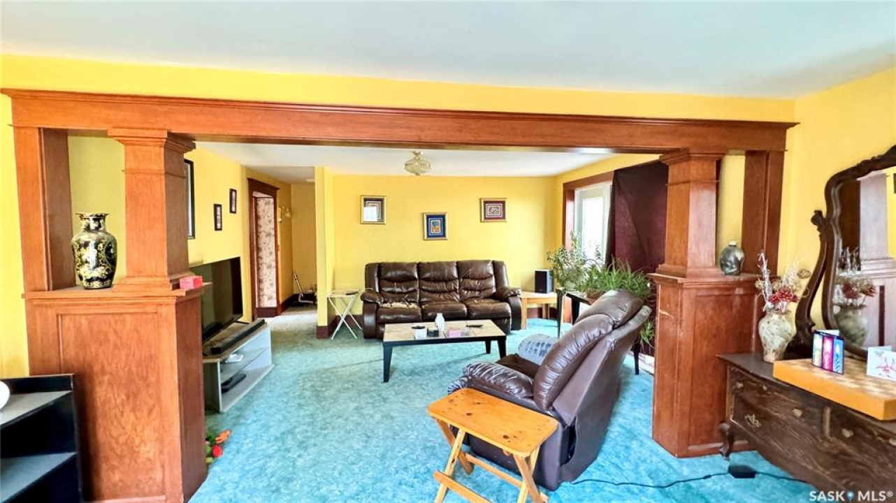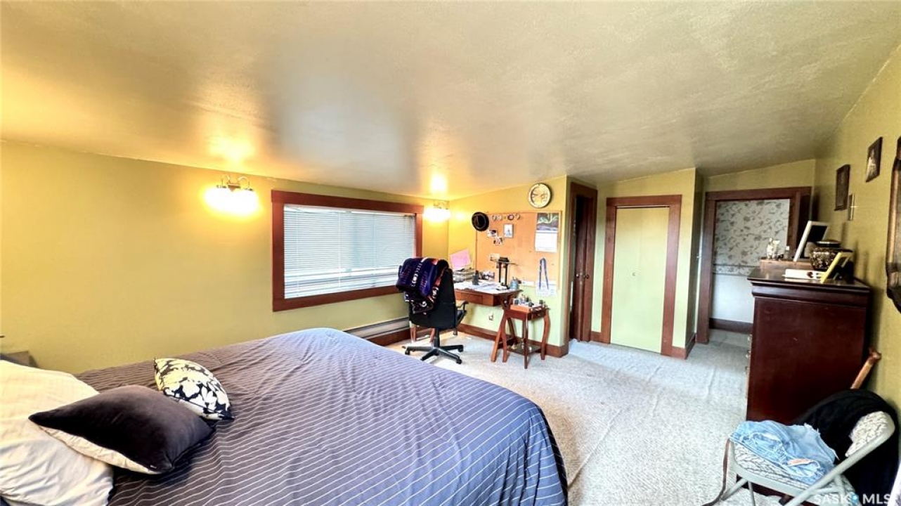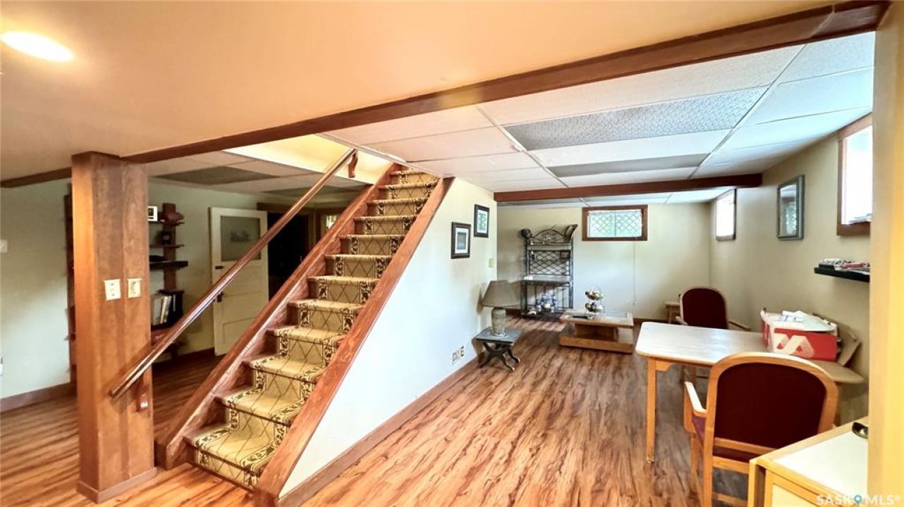 106 2ND ST EAST, DINSMORE, SK Discover the perfect blend of CHARACTER and MODERN CONVENIENCE in this charming 1910 home, thoughtfully expanded with a 1983 addition. Offering over 2,200 SQ FT, this spacious property features 5+ BEDROOMS and 4 BATHROOMS, including a PRIMARY BEDROOM with ENSUITE, plus the convenience of MAIN FLOOR LAUNDRY. A versatile main floor den provides the option for a 6TH BEDROOM or HOME OFFICE. The LIVING ROOM and DEN are currently being updated with NEW VINYL PLANK FLOORING, adding a fresh, modern touch. Updated photos will be available soon. The FINISHED BASEMENT adds even more living space with a FAMILY ROOM, ADDITIONAL BEDROOM, 3-PIECE BATH, WORKSHOP, and LARGE UTILITY ROOM. Inside, you'll appreciate the ORIGINAL HARDWOOD TRIM, preserving the home's timeless appeal, paired with updated flooring in key areas. Patio doors lead to a spacious deck, ideal for relaxing or entertaining, while SOLAR PANELS enhance energy efficiency with approx 6 months remaining on payments. Utility costs are economical, approximately $2,300/year SaskPower, $800/year SaskEnergy, and $110/month for water, sewer, and garbage. Key updates over the past 15 years include a HOT WATER BOILER, SELECT WINDOWS and DOORS, and SHINGLES (2016). Sewer lines have been maintained, with roto-rootering completed and most clay lines replaced from the house to the street. Situated on a large 162 x 130 LOT, this property features MATURE LANDSCAPING, PERENNIAL GARDENS, SPRUCE TREES, STONE PATHWAYS, and VIBRANT FLOWER BEDS. A SINGLE DETACHED GARAGE adds additional functionality. This DINSMORE, SK HOME FOR SALE offers a rare combination of SPACE, CHARACTER, UPDATES, and ENERGY EFFICIENCY, making it a truly inviting place to call home.