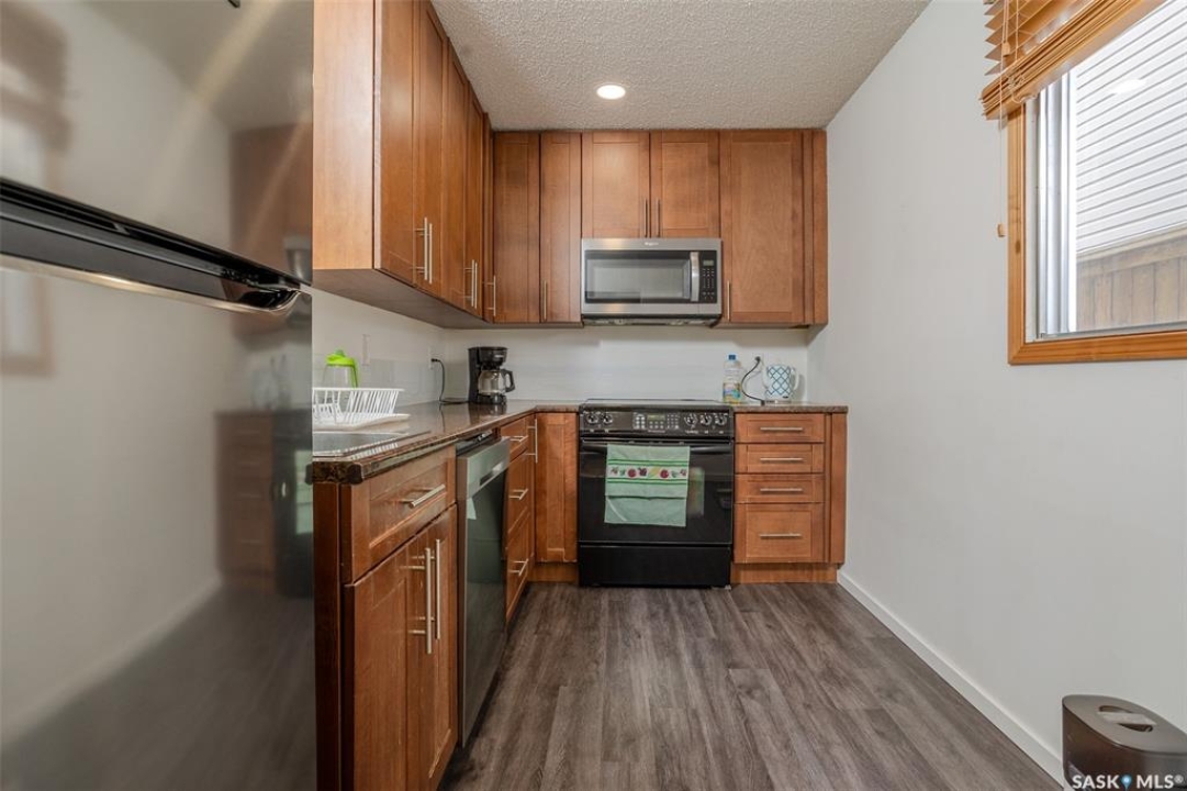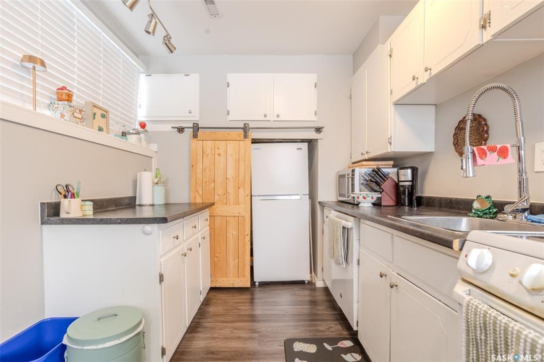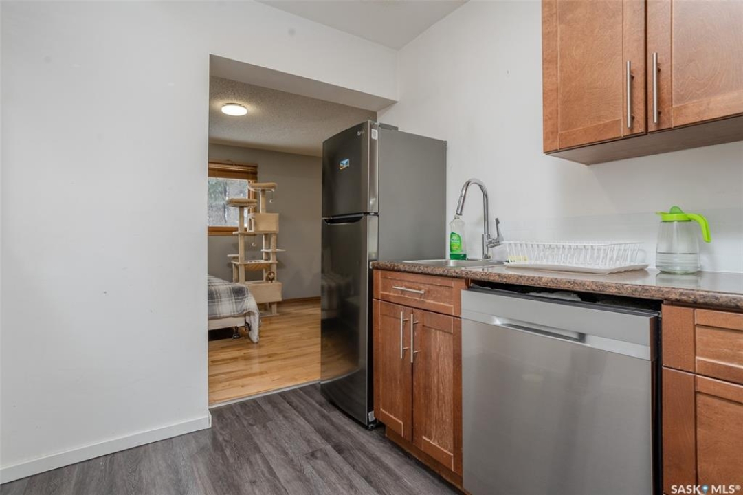 Attention investors, first time buyers, house hackers, or those looking for multi family living! This is a great opportunity in an established neighbourhood close to schools and parks. This 4 level split offers three levels above grade and a large heated attached garage with direct entry. The main living space features a spacious kitchen with maple cabinetry, large island, new wall oven in 2024, and tile flooring that flows into the hardwood living room with large windows bringing in natural light. Upstairs you will find two secondary bedrooms, a 4 piece bathroom, and a primary bedroom with walk in closet and 2 piece ensuite. A generously sized laundry area completes the upper level. The main level functions as a self contained granny suite with a separate side entrance, large windows, its own kitchen with dishwasher, living area, bedroom, 3 piece bathroom, and dedicated laundry. The basement offers a bachelor suite with large south facing windows that make the space bright and inviting. It includes a kitchen, laundry and bathroom area, and bachelor style bedroom. Basement is non conforming but is set up well with a separate entrance from the outside and is heated by its own furnace. Notable updates include hot water heater in 2020, basement suite renovation in 2018, main bathroom updates in 2018, completion of the granny suite in 2018, attic insulation upgraded to R40 in 2020, new fence in 2019, removal of south side trees in 2019 and many new windows throughout. Whether you are looking to offset your mortgage, invest, or bring multiple generations under one roof, this property offers flexibility and long term value. With double drive, garage and corner lot there is ample on and off street parking. Call your Realtor today to book your private showing!