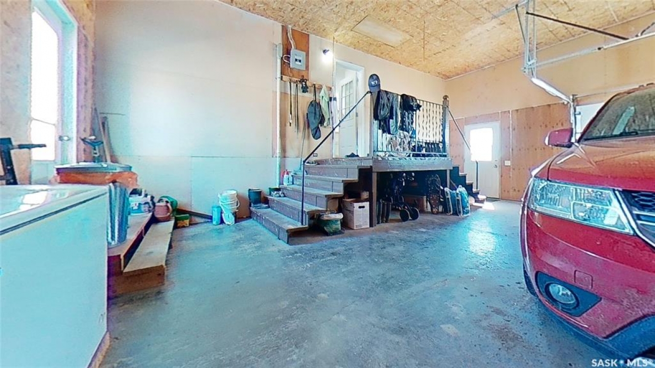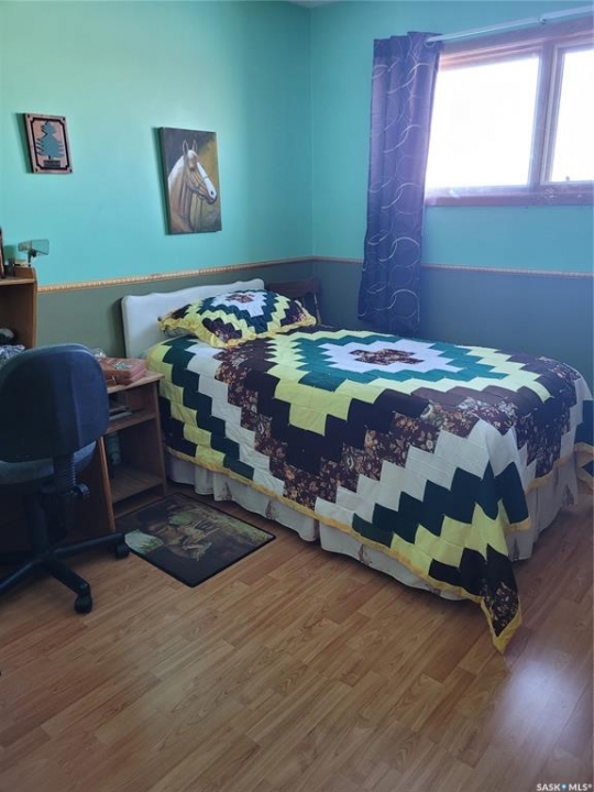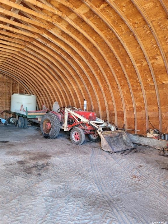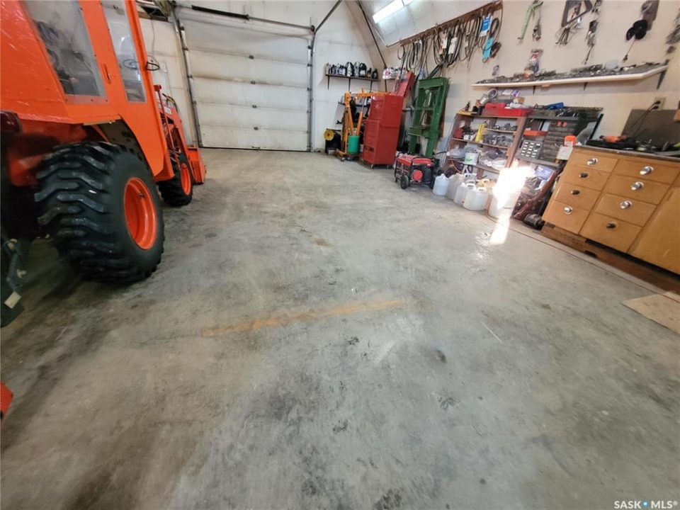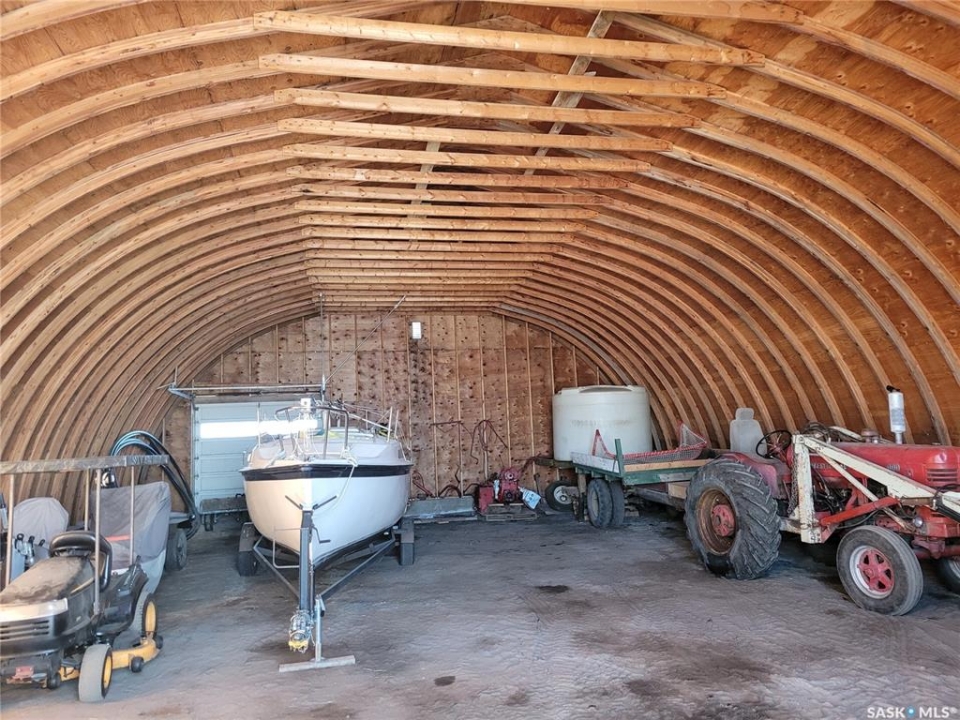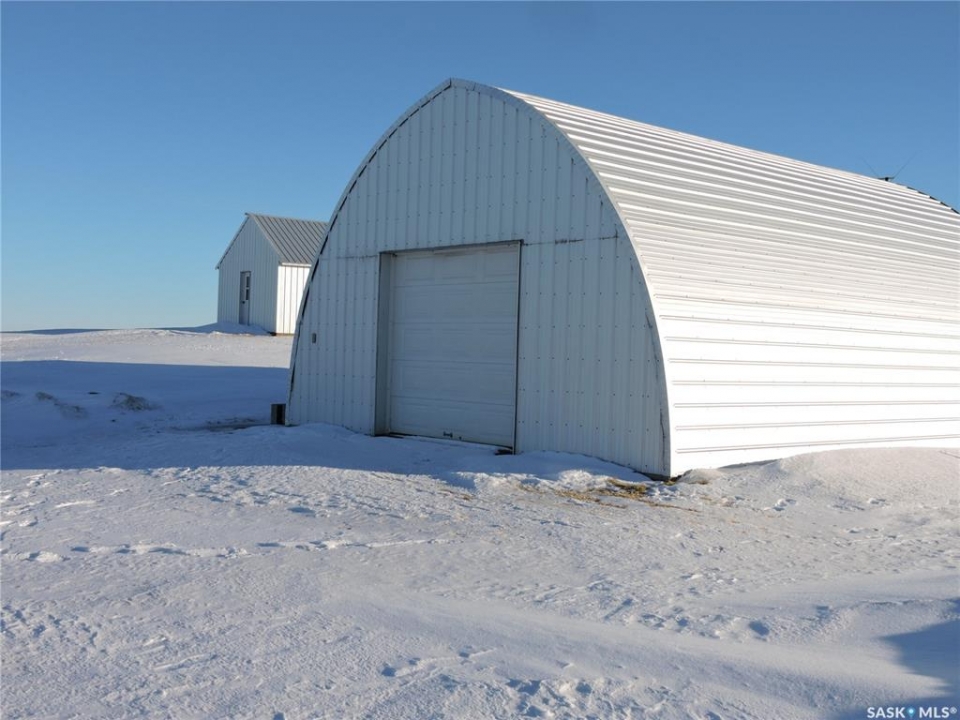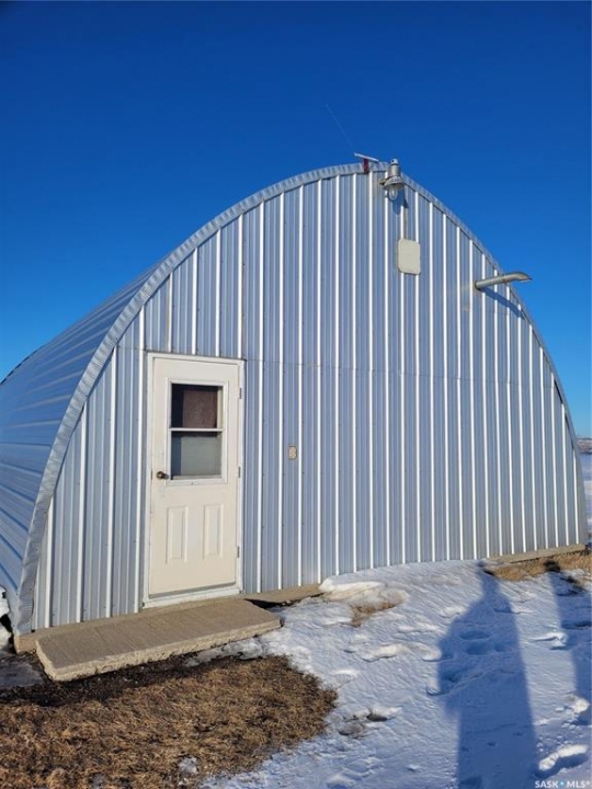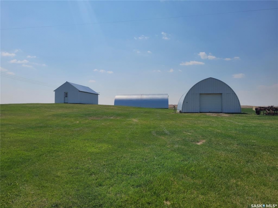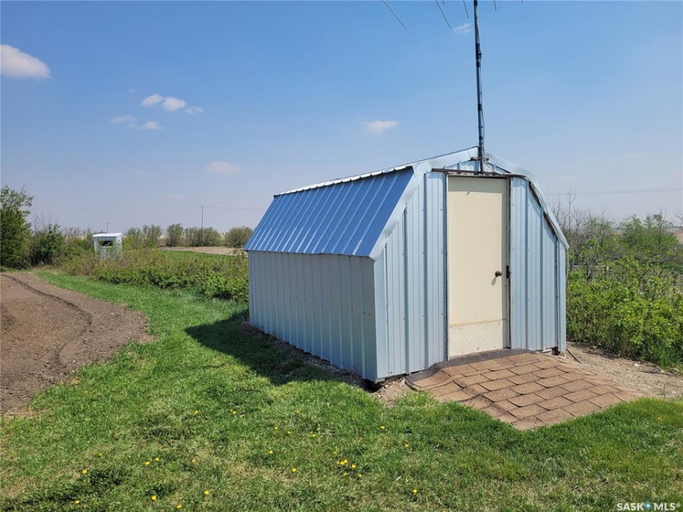 This rural residence in the RM of Longlaketon , Saskatchewan offers 1028 sq. ft. of living space on approx. 10 acres of land, large garden area, saskatoon berry orchard and numerous well maintained outbuildings. The house features a functional layout with two bedrooms and two bathrooms on the upper floor, as well as a kitchen/dining room, living room, and laundry room. The kitchen showcases traditional wooden cabinetry with ornate detailing, complemented by a window above the sink allowing natural light. Bedrooms feature hardwood floors, windows for natural light, and space for essential furniture. The attached garage, with its OSB-lined walls and concrete floor, provides ample space for vehicle storage and additional utility. Outbuildings include a nice size heated workshop, a large Quonset, non-heated shop, a sheltered well, double detached garage and garden shed.The property is electric heated. New owners can install furnace equipment and a gas line to the house if desired. Overall, this home presents a blend of traditional design elements with practical living spaces, suitable for a family or couple or single person seeking a comfortable residence in a rural Saskatchewan setting. It's easy access to the main highway, access to school bus transportation, 40 minute drive to Regina, 15 minute drive to Strasbourg.