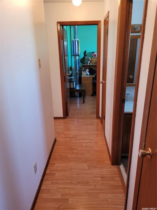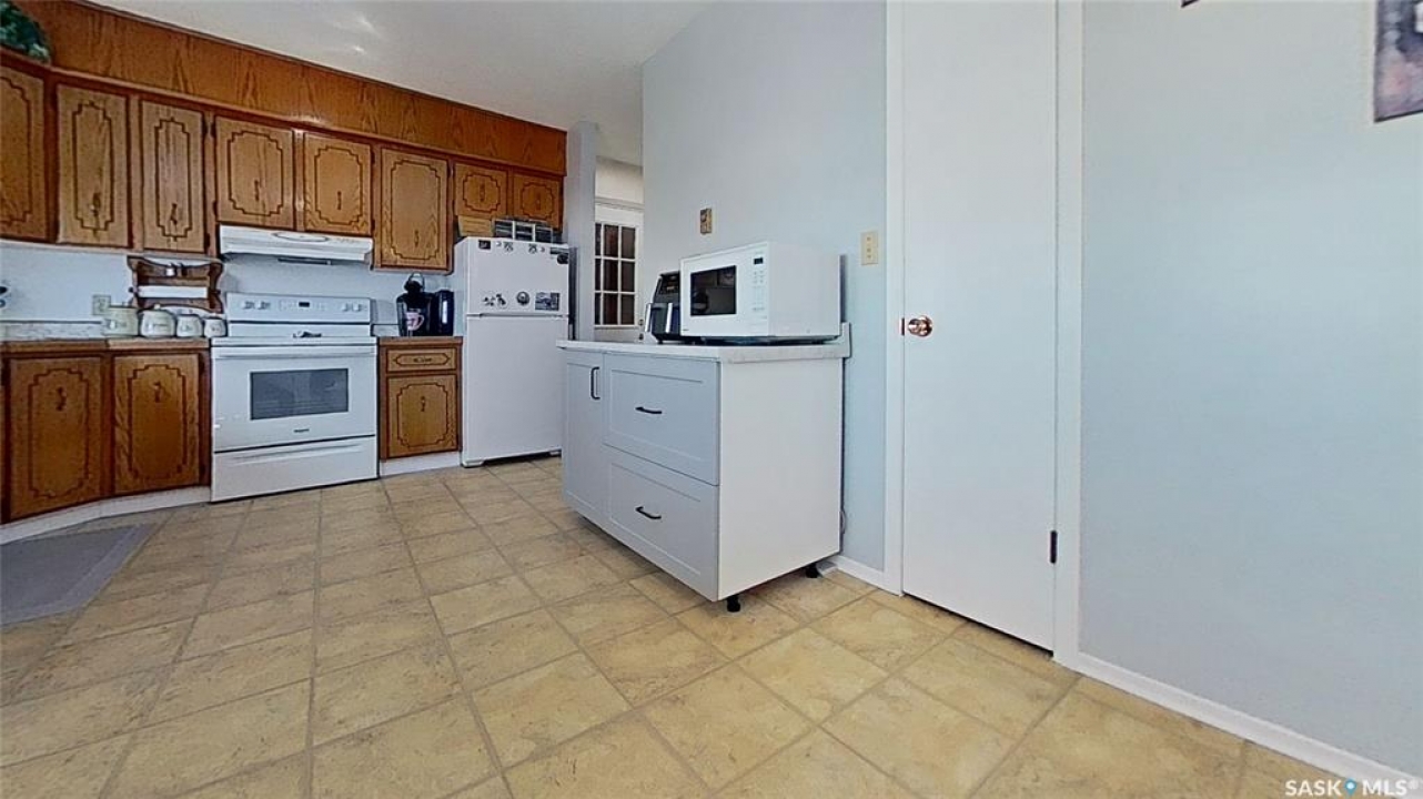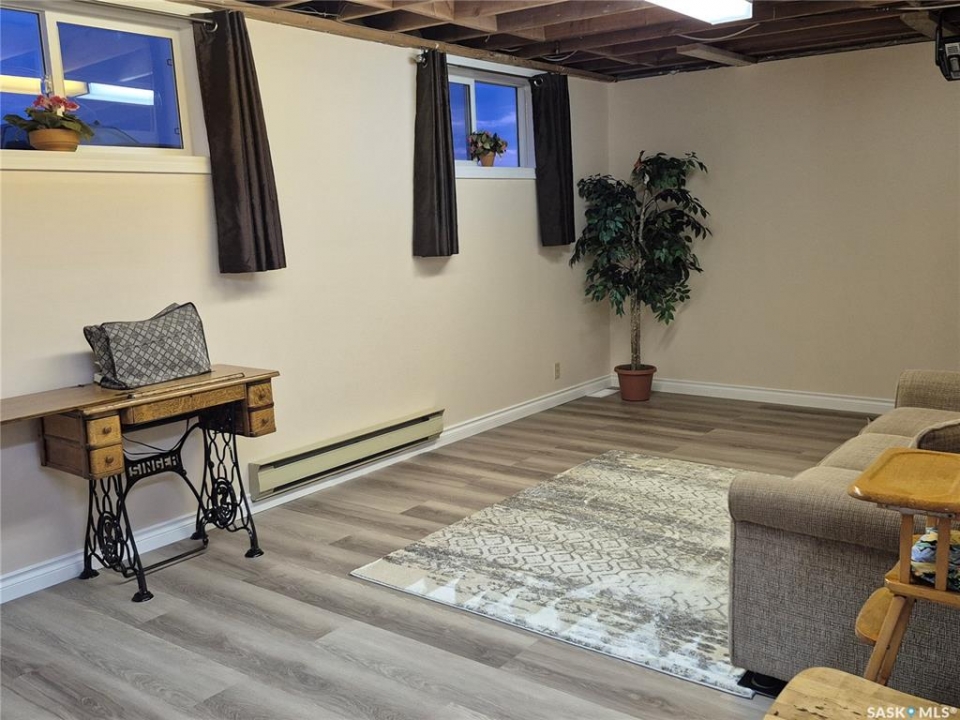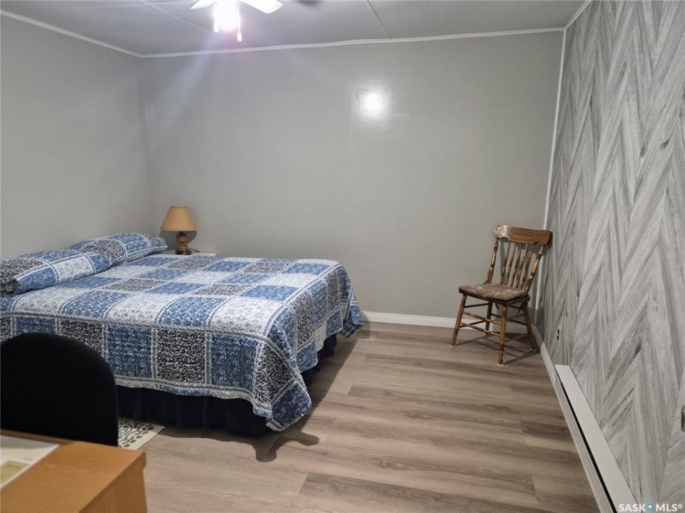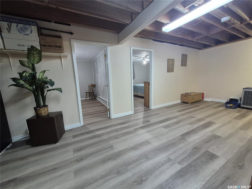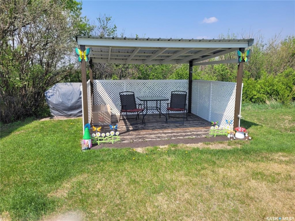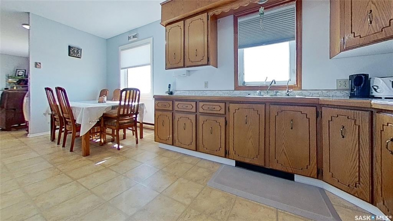 This rural residence in the RM of Longlaketon , Saskatchewan offers 1028 sq. ft. of living space on approx. 10 acres of land, large garden area, saskatoon berry orchard and numerous well maintained outbuildings. The house features a functional layout with two bedrooms and two bathrooms on the upper floor, as well as a kitchen/dining room, living room, and laundry room. The kitchen showcases traditional wooden cabinetry with ornate detailing, complemented by a window above the sink allowing natural light. Bedrooms feature hardwood floors, windows for natural light, and space for essential furniture. The attached garage, with its OSB-lined walls and concrete floor, provides ample space for vehicle storage and additional utility. Outbuildings include a nice size heated workshop, a large Quonset, non-heated shop, a sheltered well, double detached garage and garden shed.The property is electric heated. New owners can install furnace equipment and a gas line to the house if desired. Overall, this home presents a blend of traditional design elements with practical living spaces, suitable for a family or couple or single person seeking a comfortable residence in a rural Saskatchewan setting. It's easy access to the main highway, access to school bus transportation, 40 minute drive to Regina, 15 minute drive to Strasbourg.