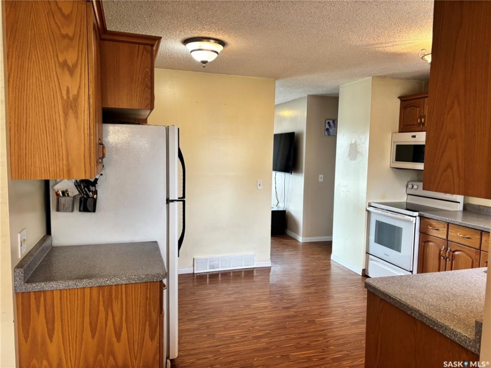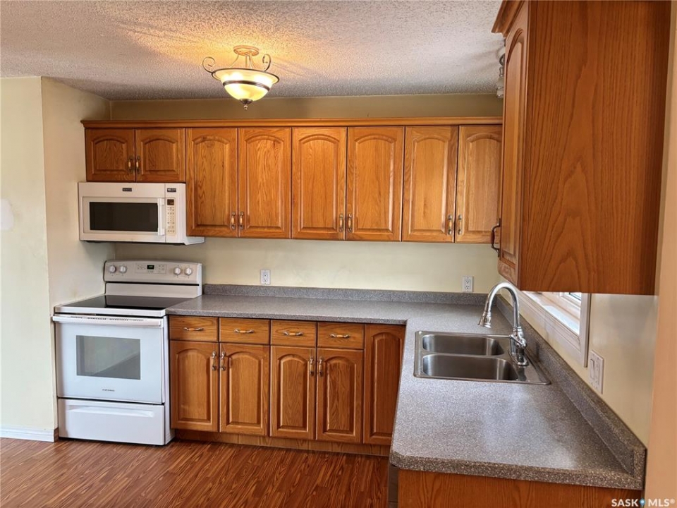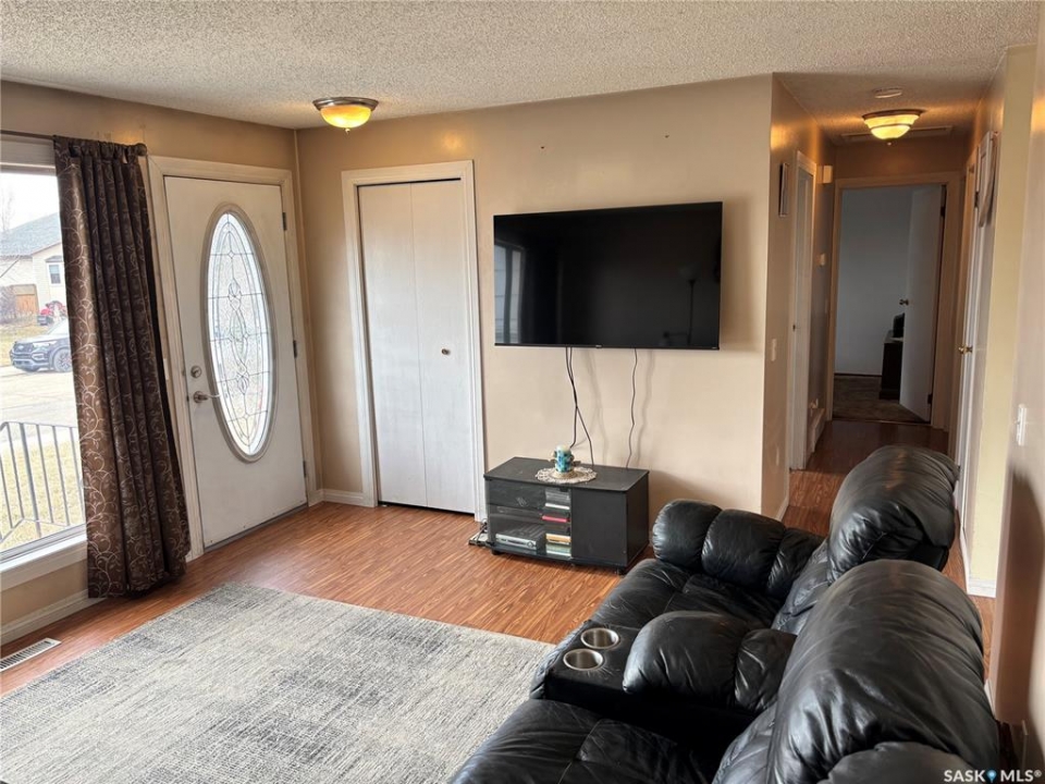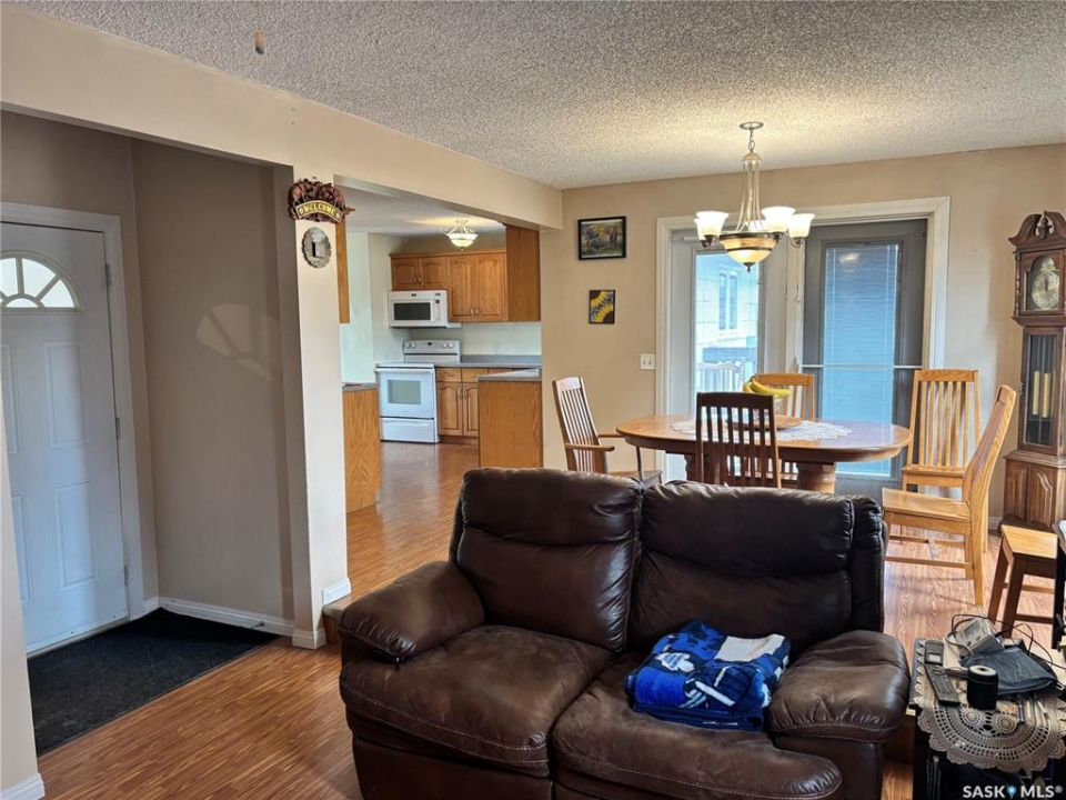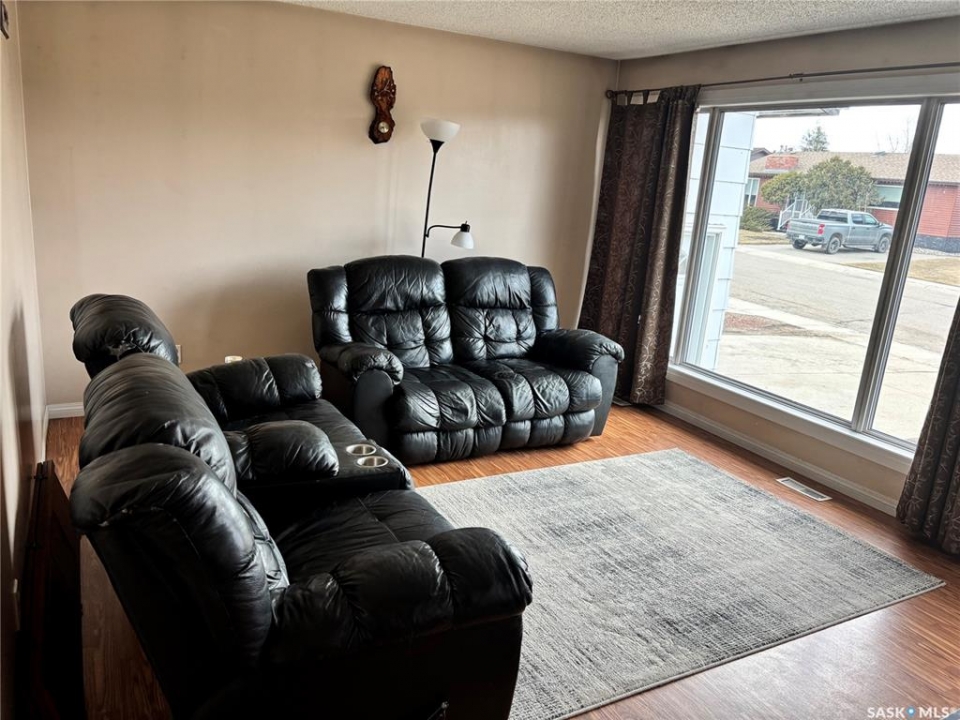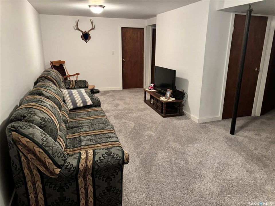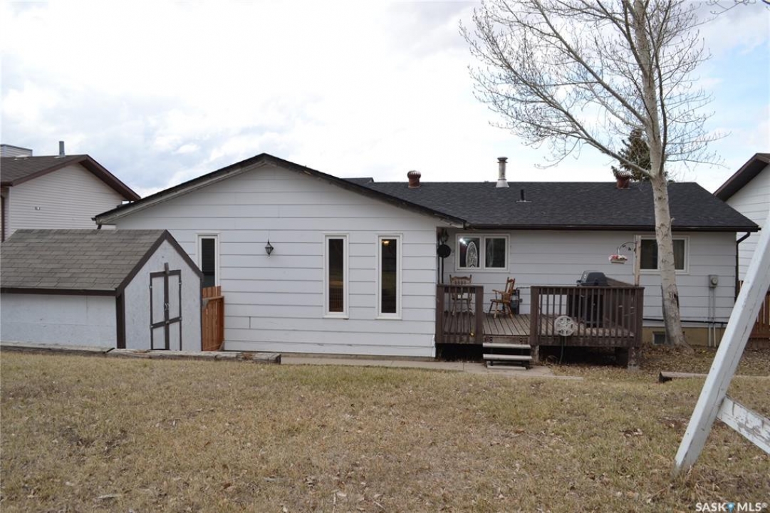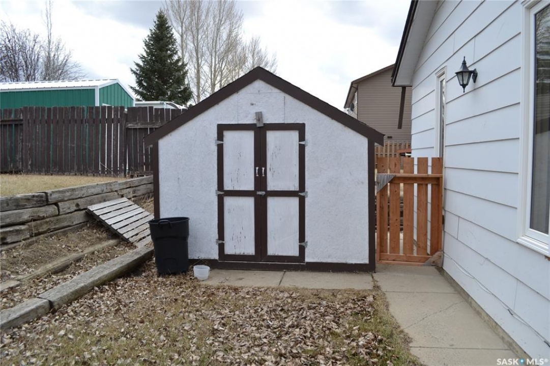 This could be the perfect place to call home! Ideally situated on Stewart Crescent in the subdivision of Rosedale, this property offers an exceptional blend of comfort, functionality, & space for the whole family. The main level features 3 bedrooms & a four-piece bathroom complete with a jetted soaker tub. A bright & inviting front living room is complemented by a separate rear family room, providing plenty of space for both relaxation & entertaining. The kitchen offers an abundance of cabinetry & generous counter space, with a sink that overlooks the backyard, while the adjoining dining area opens through garden doors onto the deck—perfect for seamless indoor-outdoor living. Convenience is key with direct entry from the attached garage into a mudroom area, complete with a large walk-in closet to keep outerwear & footwear neatly organized. The fully developed basement expands your living space with a cozy family room featuring a versatile nook ideal for a play area or home office, a 3-piece bathroom, a dedicated laundry room, ample storage with built-in shelving, a 4th bedroom, and den that could easily be converted into a 5th bedroom with the addition of a window. The attached 14' x 26' garage provides space for parking along with built-in storage & a workbench area. Outside, the fully fenced & tiered backyard is designed for enjoyment, featuring an upper lawn area ideal for kids & pets, as well as a lower level complete with a shed, deck, & patio space. Underground sprinklers in the front yard add convenience. A double concrete driveway enhances curb appeal & provides additional parking. Families will appreciate the school bus stop out front, offering easy access to all 3 schools in Kindersley. Numerous updates over the years including basement carpet (2021), shingles (2018), main-level windows (2014), and more. Included in the purchase are freezer, fridge, range, microwave hood fan, washer, & dryer—making this a move-in ready opportunity!