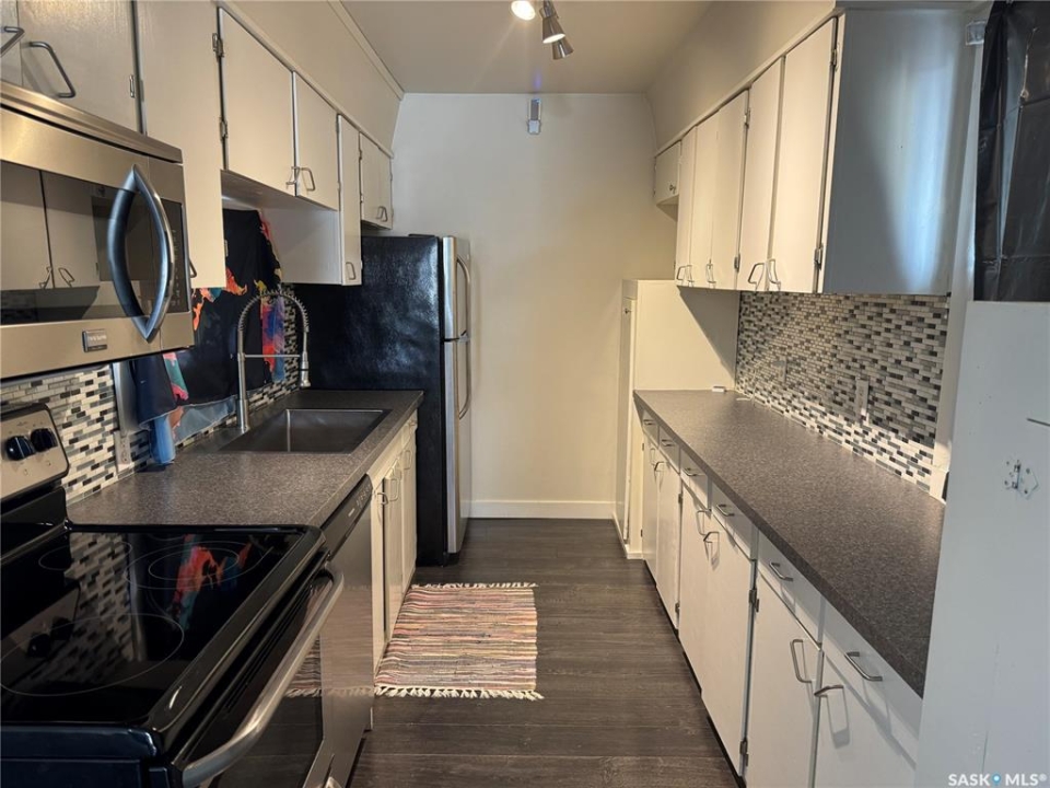 Here's your chance to get into a well-located home in East Hill, perfectly positioned within walking distance to Kinsmen Park and Prince Albert Collegiate Institute, plus all the nearby amenities you need. This 864 sq ft bungalow offers a comfortable layout with plenty of natural light throughout. The updated kitchen features a clean, efficient design with stainless steel appliances and opens into a generously sized dining space. The living room provides a bright and inviting area to relax, complete with modern flooring and the added bonus of original hardwood hidden underneath. Two bedrooms and a full bathroom complete the main level. The basement is already framed and ready for development, with space planned for a family room, bedroom, and storage, along with roughed-in plumbing for a future bathroom—giving you the flexibility to finish it exactly how you want. Laundry and mechanical are also located downstairs. Outside, the yard is fully fenced and set up for everyday living, featuring a covered deck, storage shed, and back alley access with oversized gates—ideal for extra parking or easy access. A single detached garage is also included and, while it could use some updating, remains functional. A solid option for first-time buyers, students, investors, or those looking to simplify—this is a practical home in a great location with room to make it your own. Book your showing today!