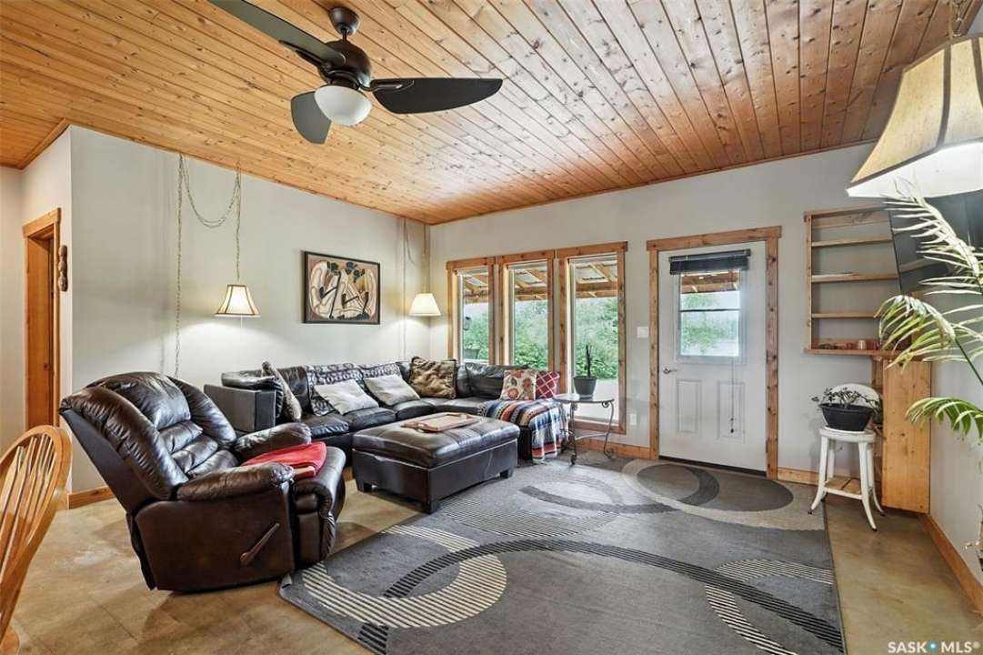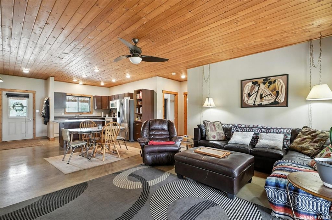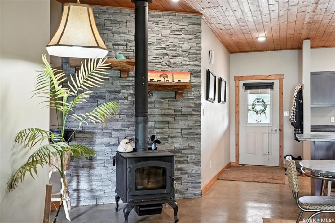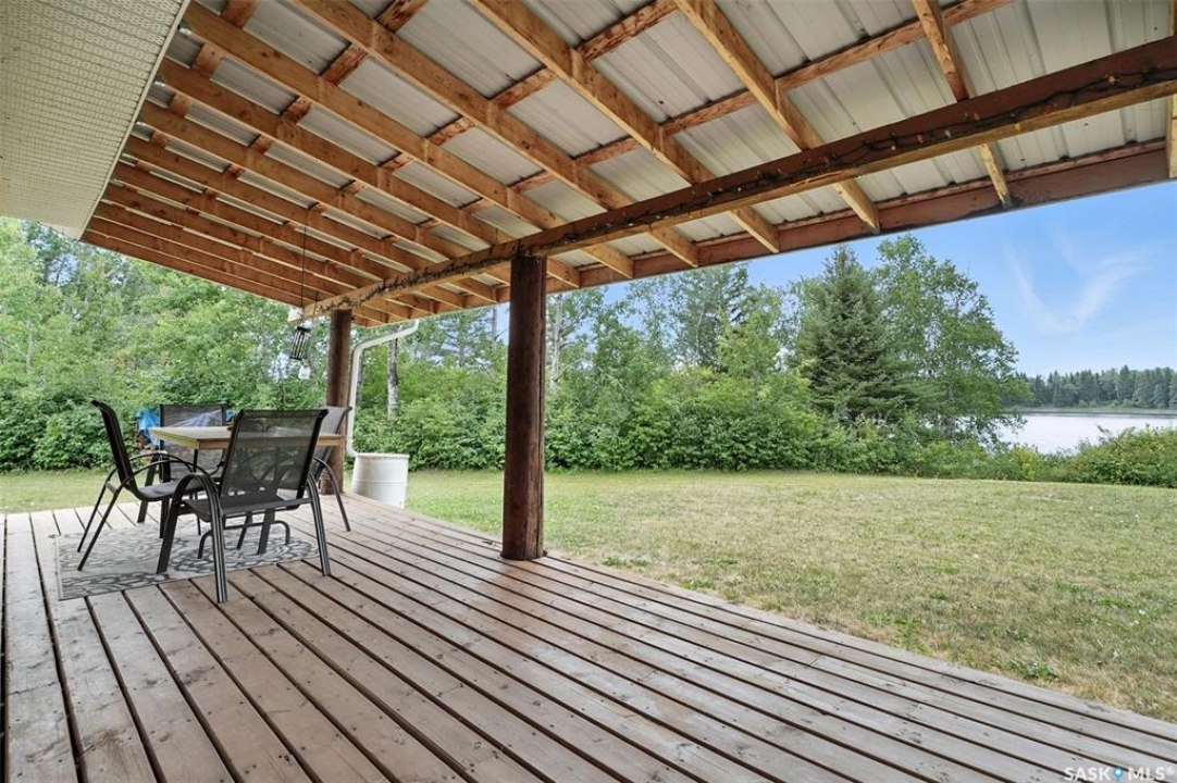 Welcome to this one and kind waterfront private acreage located at Fish Lake, SK offers a serene and picturesque setting. The property spans across 4.99 acres The house was built in 2016 and boast over 1800 sq ft with three spacious bedrooms. The open concept kitchen has plenty of cupboard and counter space with island. Master bedroom has 5pc bathroom! House is equipped with in floor radiant heat and wood burning stove for supplement heat. Head on out the living room door to back deck overlooking the lake. The property numerous outbuilding for storage and wood cutting station. The house is equipped with a well and a septic tank. The property has large heated shop measuring 33 X 38 and heated attached garage. There is no public reserve on the lake front and the well is under ground spring fed.