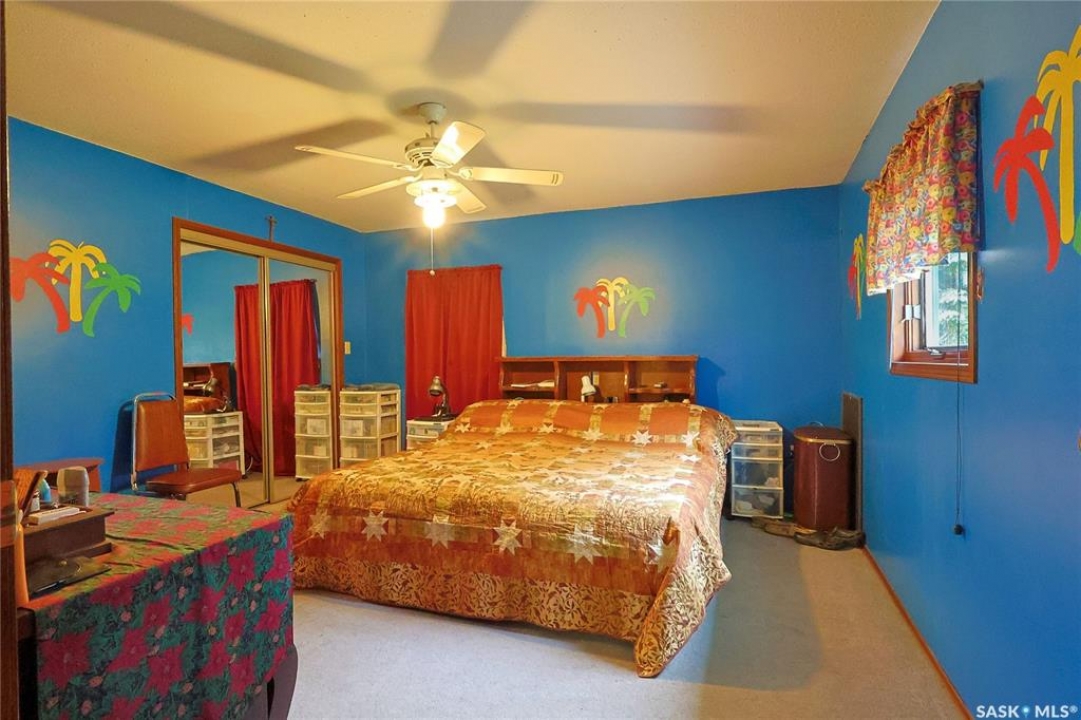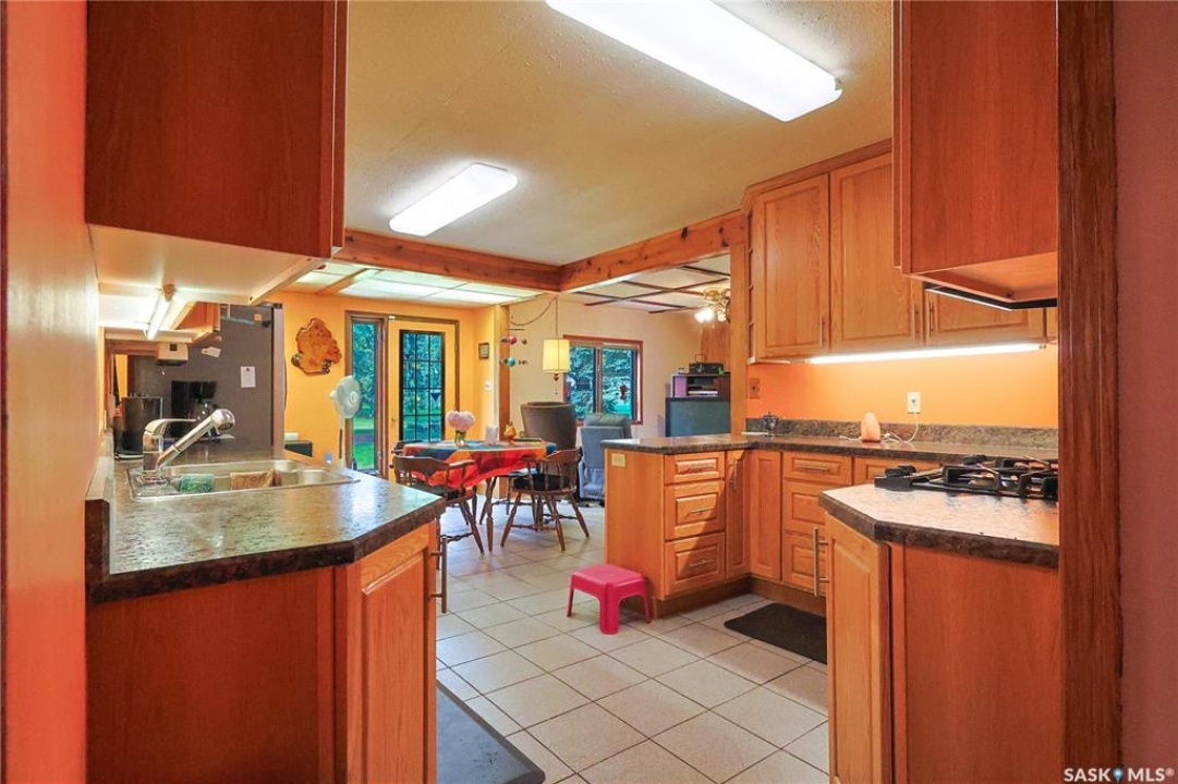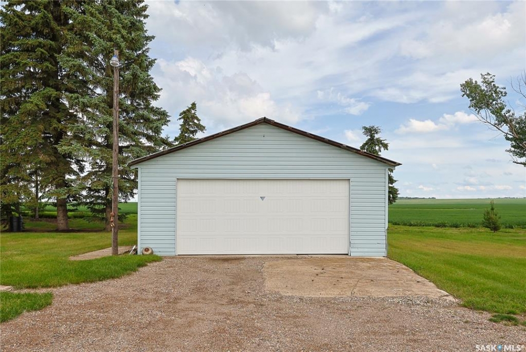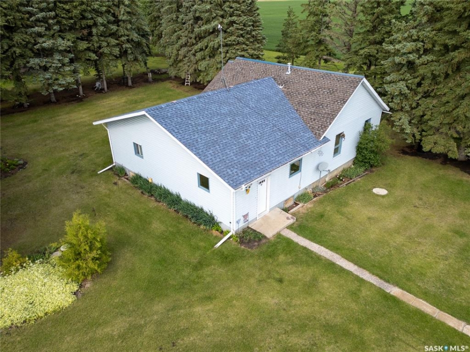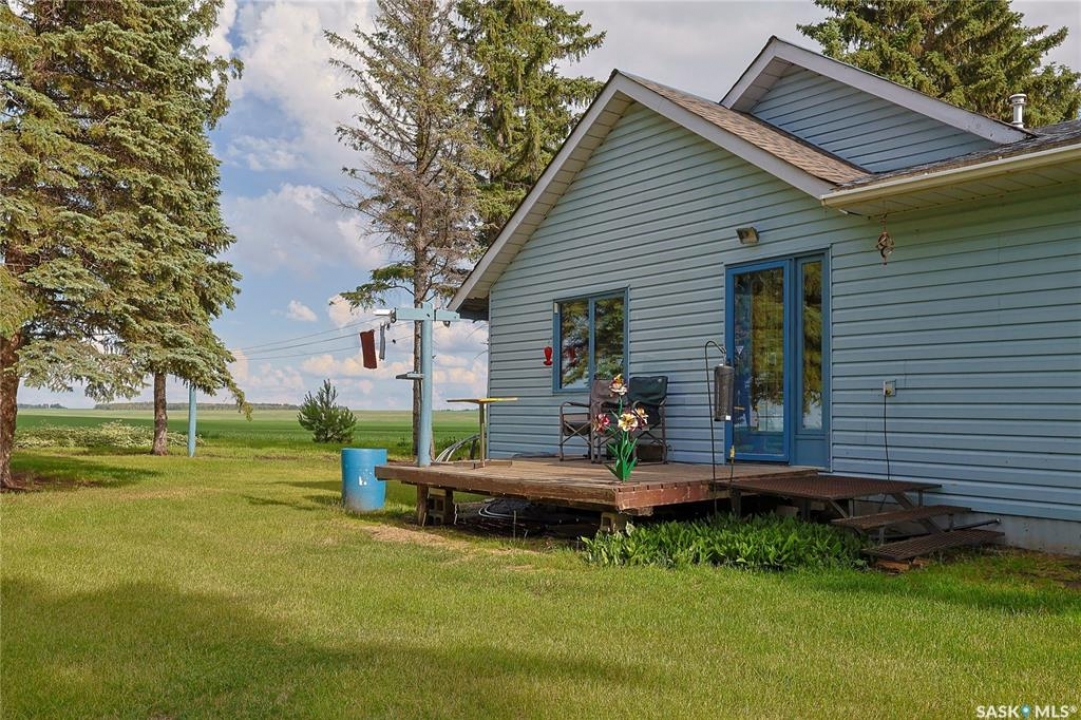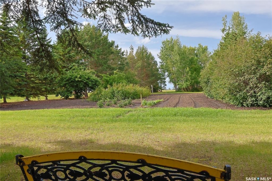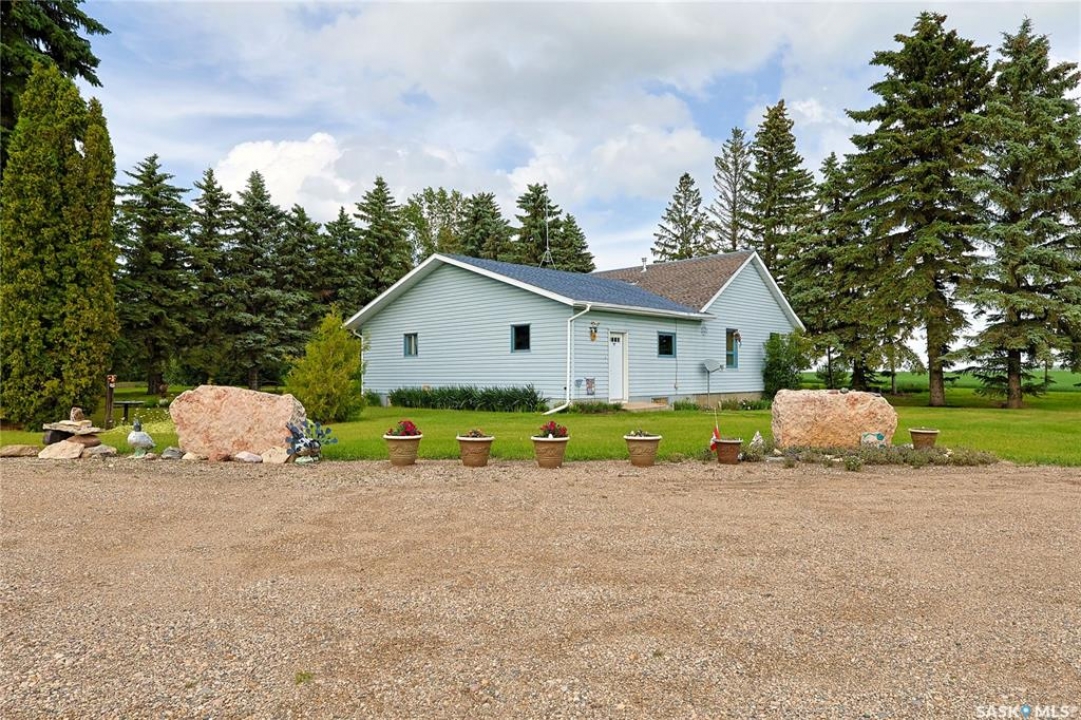 Priced to Sell! Large 1676 sq. ft. bungalow nestled in a well-groomed 10/acre yard site serviced with Sask. Water Utility Pipeline. Featuring 3 bedrooms, 2 baths, open kitchen, dining room, living room combination all with a charming fresh air fireplace. Features a solid oak kitchen, gas kitchen range with spacious main floor laundry area conveniently located between master bedroom and kitchen/dining room. Basement is partially finished and requires upgrades, natural gas HEE Furnace and Hot Water Tank upgraded in 2022. Outbuildings include 40' x 80' insulated shop with hydraulic car lift and 38' x 70' metal Quonset. Yard features pines and poplar trees. A variety of fruit trees, apple, pear, Saskatoon, Sour Cherry trees and large raspberry patch, strawberry patch and a well-established asparagus patch. Other features are perennial flower beds, wild orchids, lilies, carnations, Irises, Lupins and Poppy Patch. Call and start planning your move now!