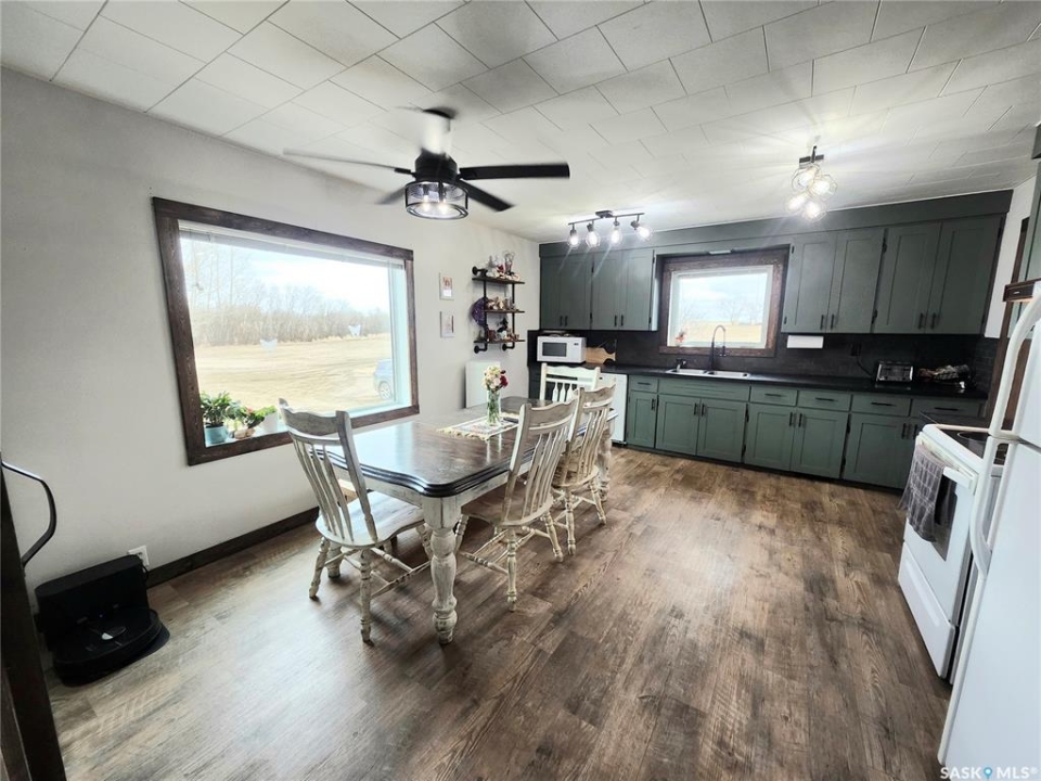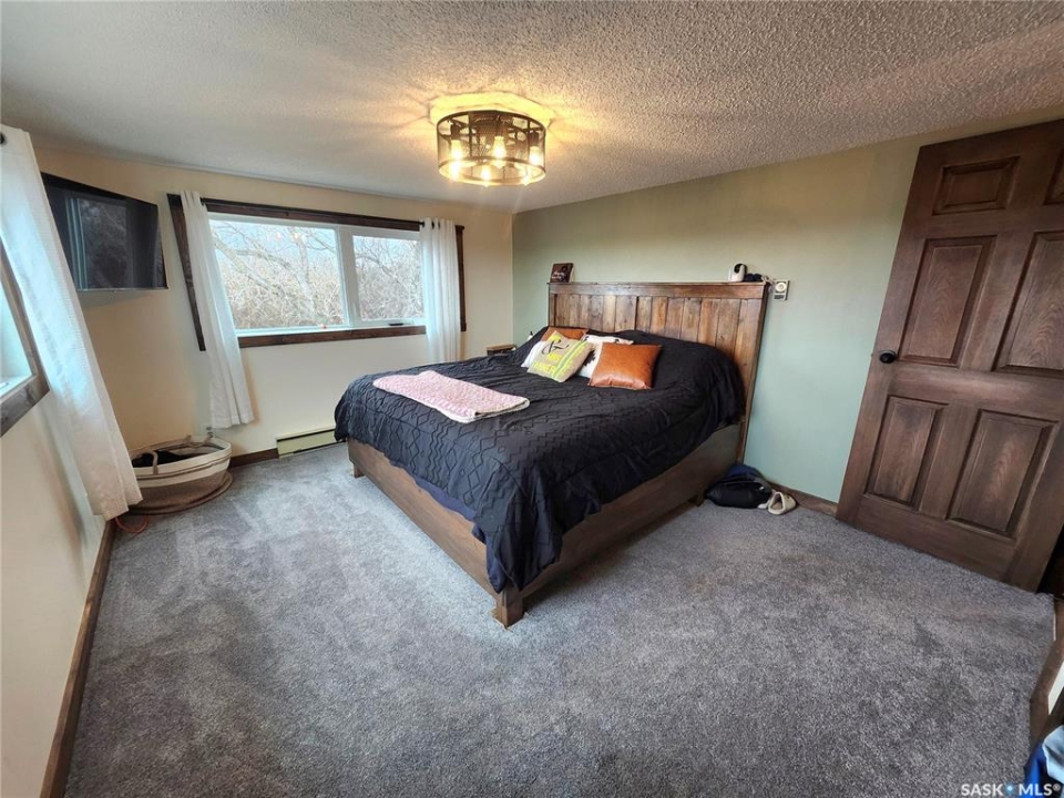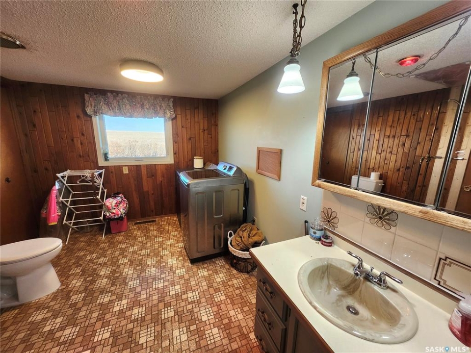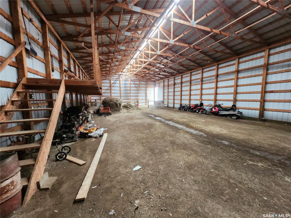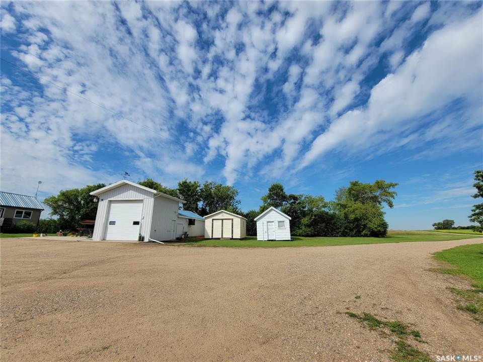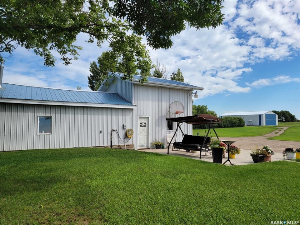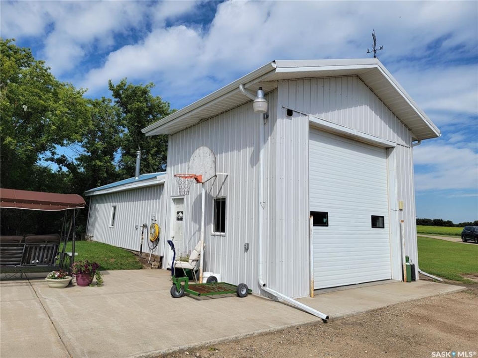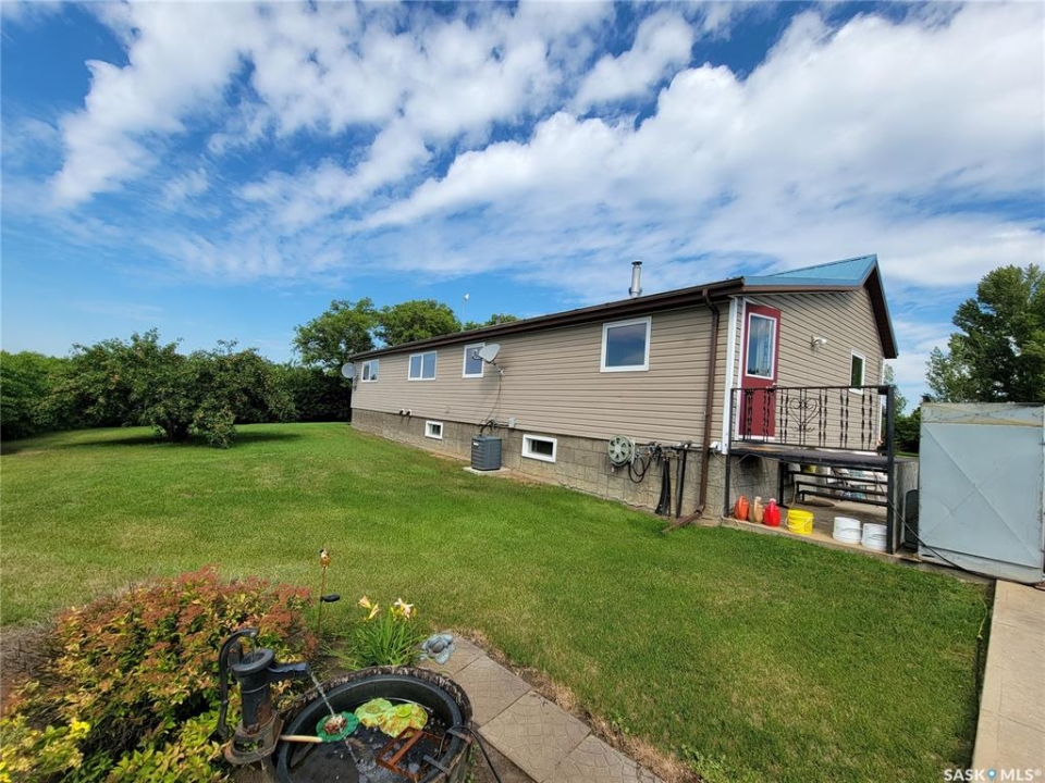 Peace, privacy, and panoramic prairie views await at 61 Rosemary Road, located just 8 km from Unity. Set on 23.64 acres of gently rolling hills, this property offers the perfect balance of rural serenity and functional living—ideal for those seeking space, originally built in 1925, the home was relocated onto a concrete foundation in 1971 and underwent a major transformation in 1981. At that time, a 14' x 26' addition expanded the home to include two additional bedrooms, remainder of the house was taken down to the studs and completely updated with new wiring, insulation, plumbing, drywall, and interior finishes. The exterior was enhanced with 2” Styrofoam insulation, vinyl siding, and a durable metal roof, while triple-pane windows were installed in 2009 for improved efficiency. The main floor features a bright and inviting layout with large entry way, three bedrooms, two full bathrooms (one currently under renovation), a spacious kitchen with ample cabinetry that was recently updated and massive custom built pantry, a sun-filled living room with updated vinyl floors through out (2024). Living room features a stone accent wall with metal interior framing for wood burning stove if buyer wanted to add one to the home. The partially developed basement includes a fourth bedroom, recreation area, cold storage, and a utility/storage room, offering additional flexibility for growing families or guests. Outdoors, the property is exceptional with mature trees, loads of perennials from flowers to fruits, gardens/ raised garden beds, well-equipped with multiple electrified outbuildings. Pole shop measuring 44' x 78', complete with a mezzanine built in 2008, and a natural gas heated garage/shop. Additional features and updates but not limited too: new injection pump, new tank pump, new control panel for RO System, central air, trenched underground power lines, a lagoon waste system, backup equipment generator, main floor doors, and 200-foot well drilled in 2012.