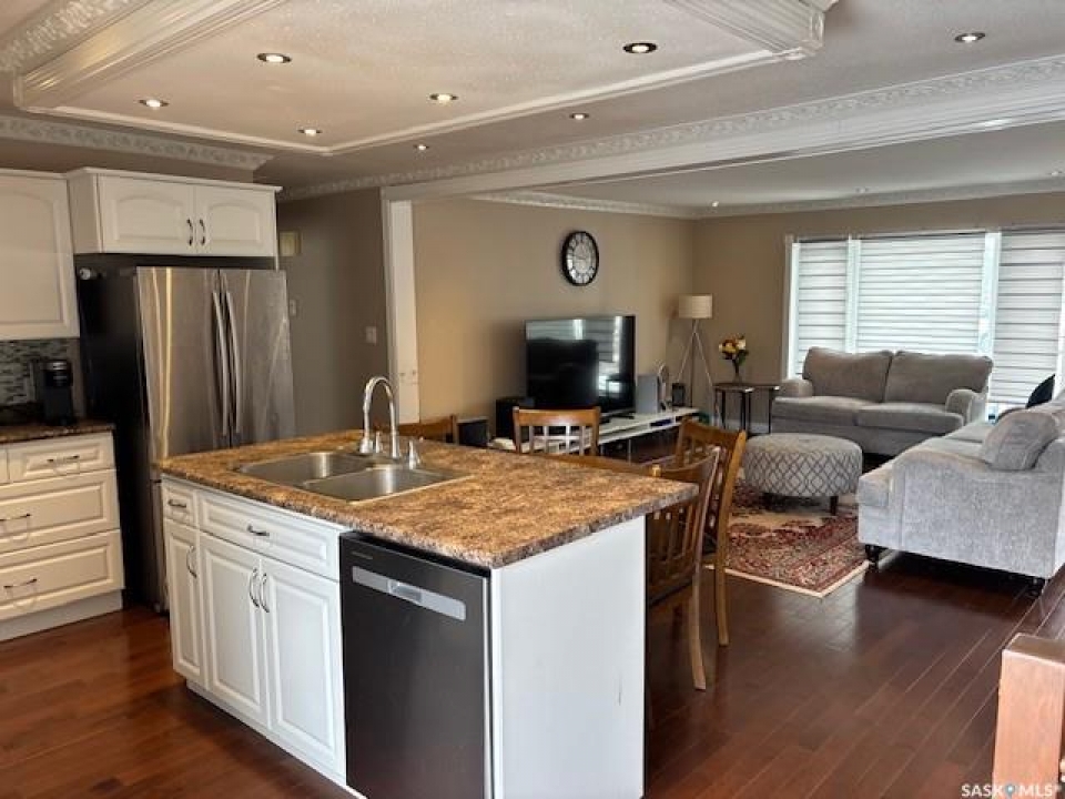Prime spot in Canora, SK, and a close commute to Yorkton, SK! Nestled on a peaceful crescent, this home offers just over 1100 sqft of living space. The generous living room leads into a spacious kitchen with ample cupboards and an island, ideal for prep and gatherings. The 4pce bathroom has been recently upgraded and features a separate shower and a relaxing jacuzzi tub. The remainder of the main level includes 3 sizeable bedrooms and hardwood flooring running throughout. The basement has had extensive renovations with durable vinyl plank flooring, a large recreation area, dedicated home gym, additional bedroom and a full 4pce bath, plus extra storage or a quiet home office. A single attached garage with direct entry adds everyday convenience. The irregular shaped yard provides privacy, comfort, and a deck perfect for outdoor enjoyment. Located near Canora Composite School, Canora's famous swimming pool, splash park, and tennis courts! Sold with most furnishings included and only a few personal items excluded. Reach out for details and to arrange a viewing—this move-in-ready home is sure to attract attention!