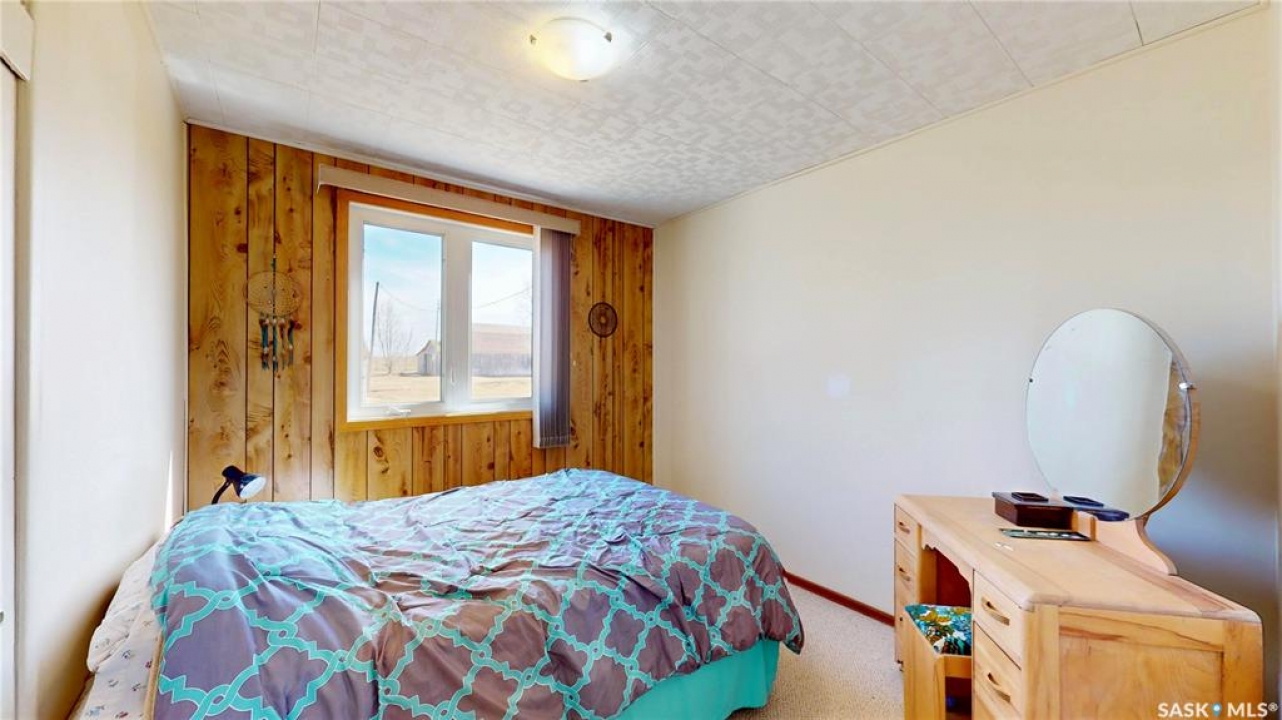 Escape to the peace and privacy of acreage living with this well-maintained 3 bedroom, 1 bathroom home situated on just under 40 acres. Located only 20 minutes from Pilot Butte and White City and 25 minutes to Regina, you get the perfect balance of country living with convenient access to city amenities. Offering 1,531 sq/ft of living space, this home has been cared for with pride and is structurally sound with all major maintenance looked after. Recent updates include a new furnace (2024), newer water heater, and 5/8 tongue and groove plywood done on the roof. The home also features double pane windows throughout for added efficiency. A major bonus to this property is the solar panel system, keeping power costs incredibly low, typically around $50–$60/month during sunny periods—along with a backup generator for added peace of mind. The iron filtration system ensures quality water inside the home, supplied by a fiberglass well drilled in 2008 (last tested approximately 4 years ago and confirmed safe to drink). The land offers great versatility, with the ability to be grazed by horses or used to produce hay bales, making it a strong option for those looking to enjoy a hobby farm lifestyle or generate some additional use from the acreage. The grid road is well-maintained year-round by the RM, with regular snow clearing in the winter and grading in the summer, making access easy in all seasons. If you've been looking for space, privacy, and a move-in ready acreage within a short drive to the city, this property is one you won't want to miss.
