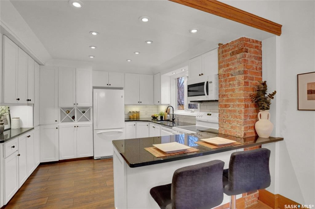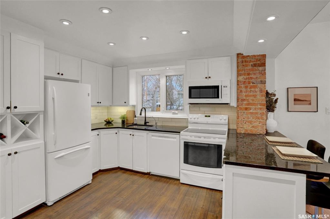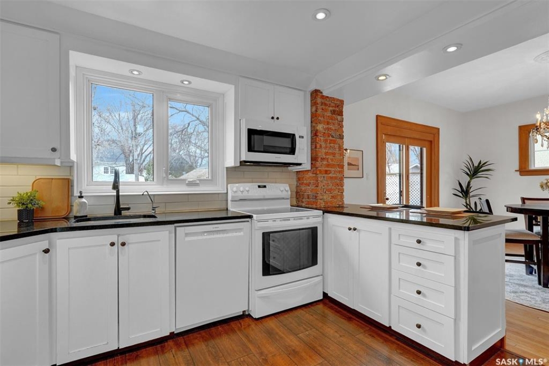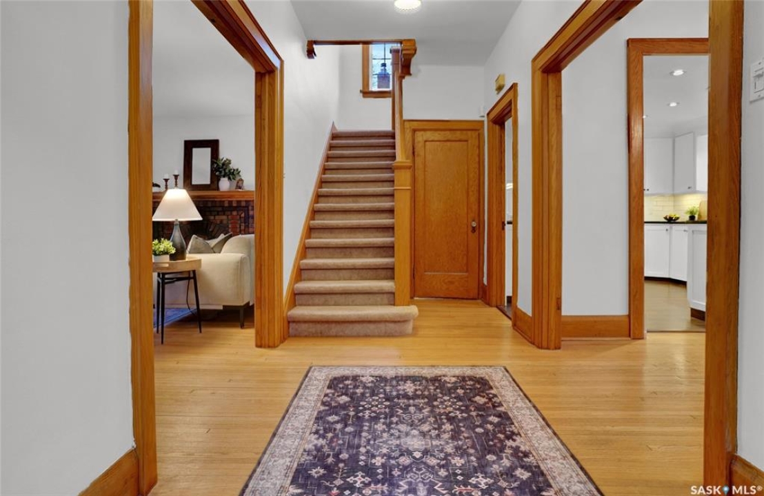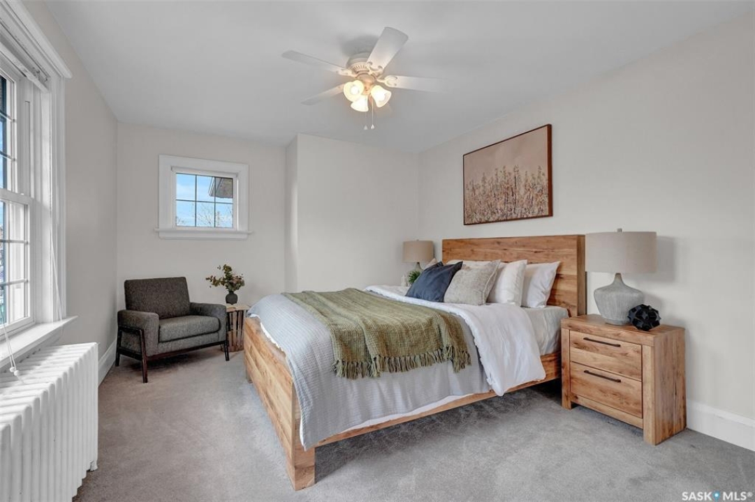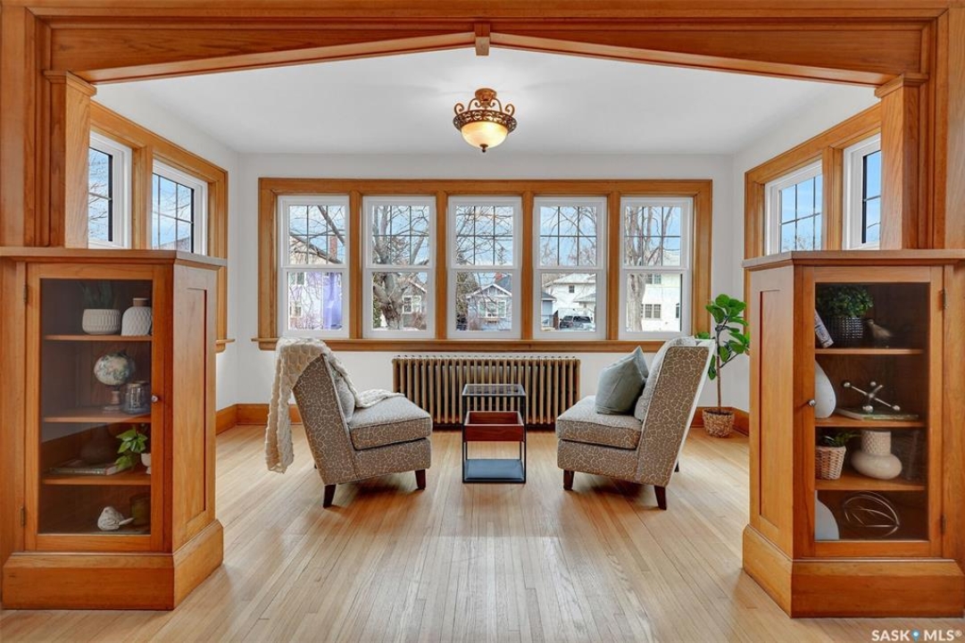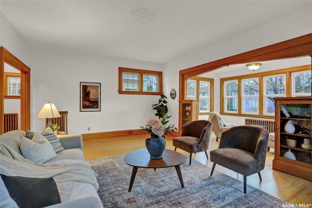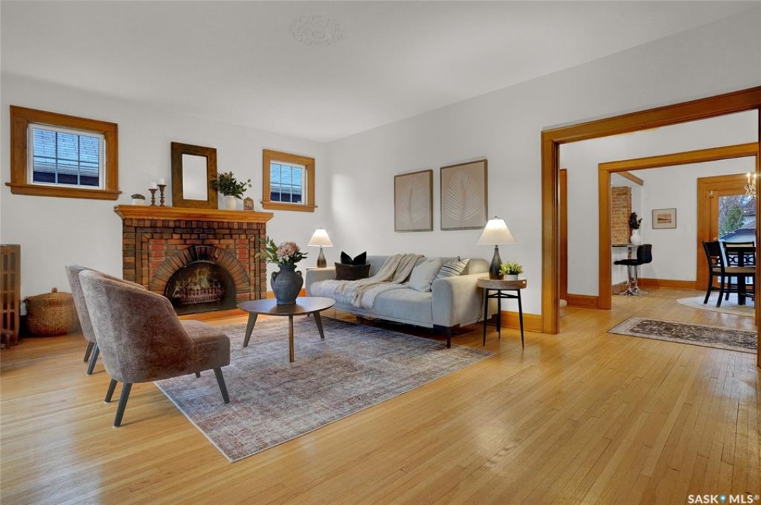 Welcome to 3129 Rae Street in very desirable Old Lakeview neighbourhood. This beautifully maintained family home has character and charm, and thoughtful updates that blend together perfectly. Step inside to a spacious entry leading to a very open main floor floor plan, with original oak hardwood flooring, and high original oak baseboards, all rooms flooded with natural light ideal for everyday living. Large formal living room with original attractive wood burning fireplace, and natural oak trimmed piano windows on either side of fireplace. Charming adjacent sunroom with west exposure could have multi purposes. These two rooms are separated with unique elegant natural oak trim and book cases flanked on either side with glass front doors. The updated kitchen is attractive and functional. Lots of cabinetry, and granite counters provides plenty of work space, with additional island/eating bar. Kitchen is open to bright dining room ,garden door leading to back deck ,with good sized rear yard has good use of paving stones and lawn. Upstairs are 3 generous sized bedrooms, including Primary suite with private 4 piece bath and good closet space, there's a cozy reading area for quiet time. Upstairs 3 piece bath complete this level. Basement is fully finished with extremely large recreation room, perfect hangout for many activities. It's also hardwired for home theatre system. Fourth bedroom with good closet and storage space. A separate upgraded 4 piece bath. Wonderful use of windows throughout the home, providing amazing natural light. Many upgrades to this home include; high efficiency hot water boiler, newer windows, newer shingles. Home is in excellent move in condition, with classic character and modern updates throughout. Home is close to schools, buses, parks, Legislature, walkable to down town. With 1800 square feet of living space, this property offers exceptional value and lifestyle