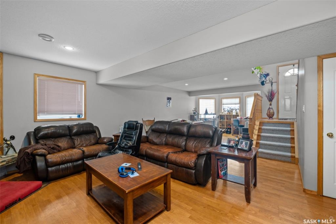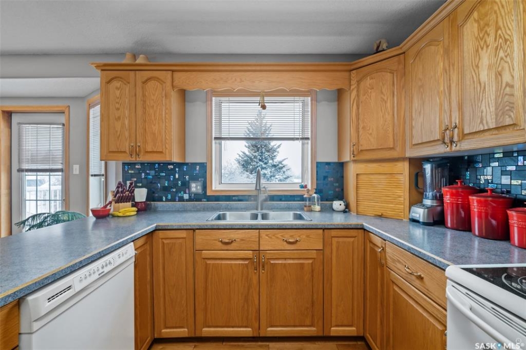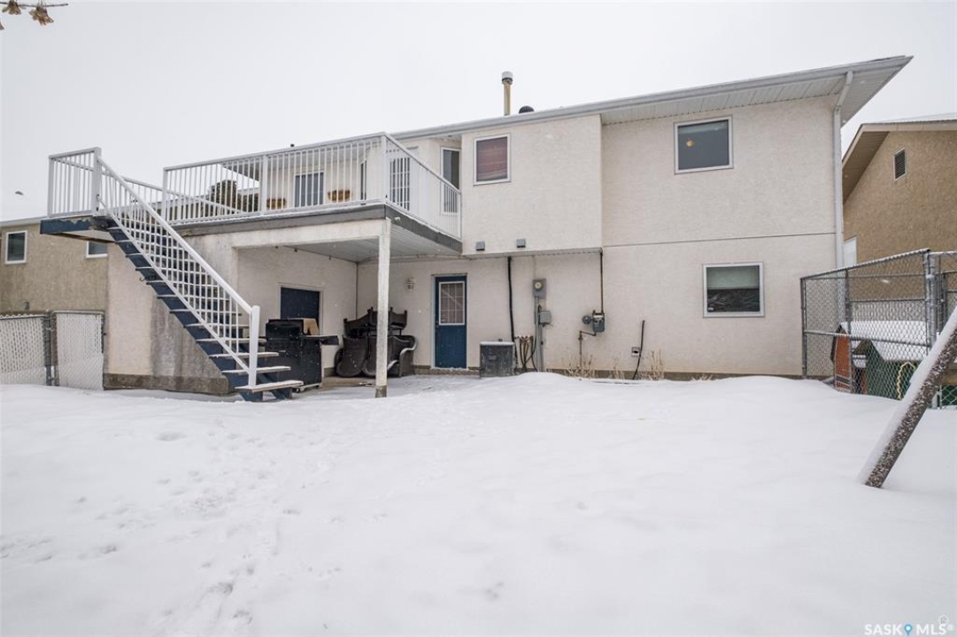 Beautiful 5 bedroom and 3 bathroom home located on a quiet cul-de-sac close to schools and parks! The main floor welcomes you with a spacious living room highlighted by south facing bay windows that bring in plenty of natural light. The bright kitchen and dining area is equipped with oak cabinets, stylish backsplash, a peninsula island, sunshine ceiling, and direct access to the deck, creating an inviting space for everyday living and hosting family and friends. This level also includes a 4 piece bathroom and 3 good size bedrooms, including the primary bedroom that has a walk-in closet and a 3 piece ensuite complete with a relaxing jet tub. The fully finished basement offers a generous family room centered around a cozy gas fireplace that has a beautiful stone surround, along with a walkout to the patio that adds to the homes functionality. Two additional bedrooms, a 3 piece bathroom, and a combined laundry/utility room complete this level. Additional highlights include central air conditioning, shingles replaced with added ventilation in 2023, kitchen faucet updated in 2025, and a security system updated in 2025. The fully fenced yard is complete with mature trees and shrubs, underground sprinklers, and a thoughtfully xeriscaped backyard that creates a clean and inviting outdoor space to relax and entertain. Don't miss out on what this exceptional property has to offer. Book your showing today!