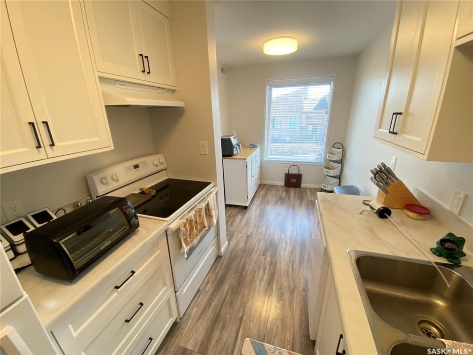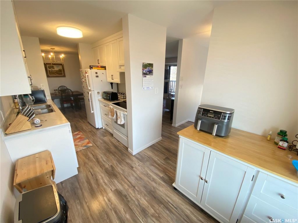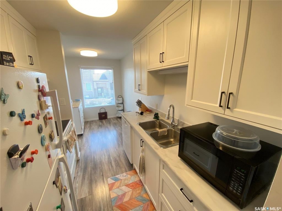 Unit 6 111 Fenson is the perfect condo with lots of recent updates. This second story unit as you enter from the ground level has a nice foyer area to store all the boots and extras before heading upstairs. The large kitchen area provides lots of cabinet space along with fridge, stove, and your dishwasher. Dining area off the kitchen can host a large table and then adjoins to the large living space with access to your balcony to enjoy. Down the hallway the primary bedroom allows for king size furniture and contains a renovated walk-in shower ensuite. 2 additional bedrooms along with the 4-piece upgraded main bath. The laundry pair is in the utility storage room which contains lots of space for additional food and belongings. Outside off the balacony is your natural gas furnace room which also allows for additional storage. Condo fees are $350.00 per month. Central Air conditioning in the home also for those hot summer days. A great opportunity in this renovated unit is situated in the east end of the city within a short walk to the mall, and dual elementary schools.