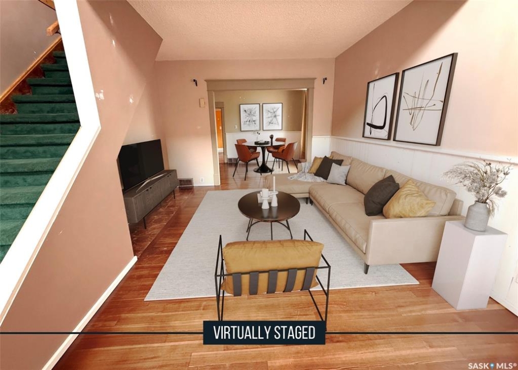 A smart entry point with income potential, this character filled home puts you steps from downtown and Elmwood Park, offering both lifestyle appeal and long term value. Bright, inviting, and full of personality, this 1,096 sq. ft. two storey blends timeless charm with everyday comfort. Sunlight pours through the space, highlighting beautifully refinished original hardwood floors and a warm, welcoming layout. The living room flows into a formal dining room, creating an ideal setting for hosting and everyday meals, all enhanced by a vaulted loft above that adds openness and natural light. The kitchen is functional and offers good workspace, with room to make it your own over time. A generous mudroom with in home laundry adds practical convenience to daily living. Two comfortable main floor bedrooms are connected by an updated 4 piece bath. Upstairs, the loft provides excellent flexibility and includes its own 3 piece bath. It works beautifully as a primary retreat, home office, or creative space, with potential to suit a variety of needs. Outside, a large south facing deck invites you to relax and enjoy the sun, while the rear of the property offers plenty of off street parking. With central air, an affordable price point, and immediate possession available, this is a compelling opportunity for first time buyers or those looking for a property with added potential.