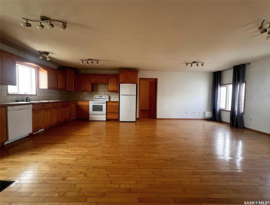 Sturdy, practical, welcoming, understated and affordable, this 2 bedroom, 2 bathroom 2008 bungalow is a great choice for a single person, a couple, or a young family starting out. The property features an oversize single attached garage, and the fenced yard has garden boxes and is framed in mature shrubs and trees. The exterior of the house features vinyl siding, and the interior hosts 1,144 sq/ft of sensible and relaxed living space with a bright, neutral colour palette. Inside the front door you step onto timeless hardwood flooring, the cheerful kitchen rests to your left and flows into an expansive, seamless open-concept for the main area, providing a blank slate for a desired flow of spaces between dining and living. Off the kitchen is the comfortable primary bedroom, also with hardwood floor, a window to the east-facing front of the house, and a cozy and private 4-piece ensuite with ceramic-tile floors and a walk-in closet. Across the house from here is the secondary, carpeted bedroom, while the main 4-piece bathroom with extra cabinet storage sits nearby. The laundry room is situated towards the back of the house and hosts the water heater, and there is a spacious porch here as well off of the garage that has organization space for outdoor gear. This is a newer build for this area of town and it sits over a crawl space rather than a full basement. Call for more info or to book your own personal showing!