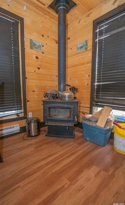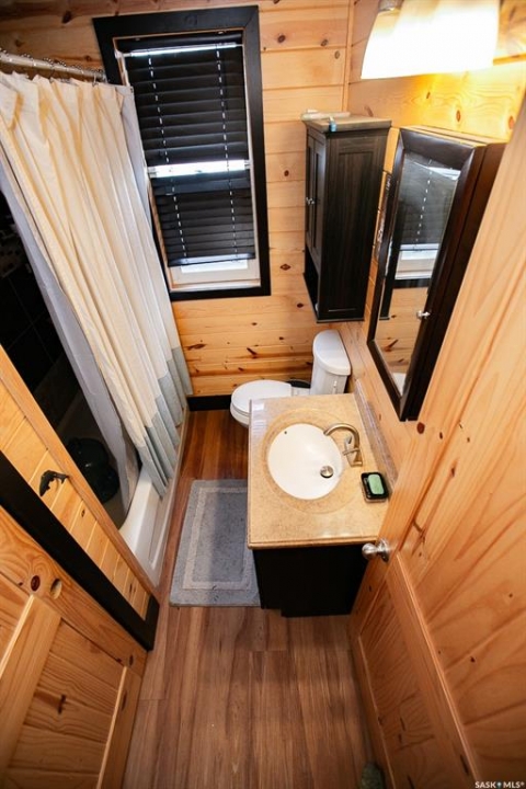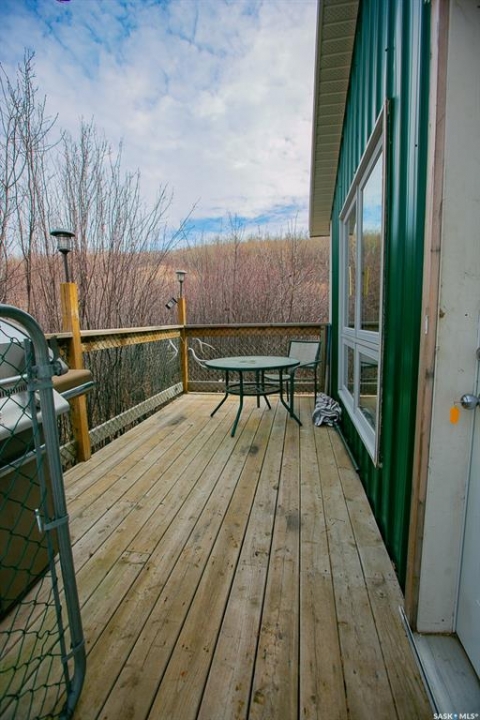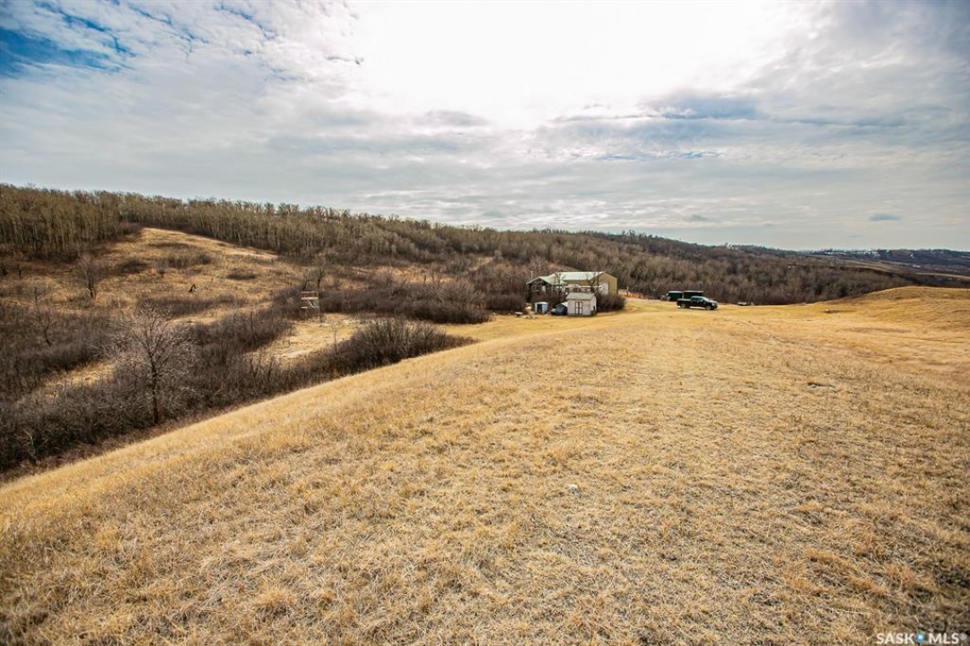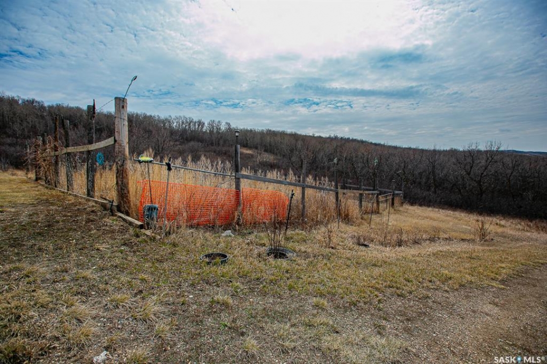 Unique property located approximately 33kms from North Regina. This opportunity includes 39'x39' quonset with concrete floor. 14'x10' door with 12' walls. 200 amp electrical service. Home is setup with wood stove and electric baseboard heaters. Main level includes functional kitchen, dining area with adjacent living-room. Four piece bathroom. Bedroom (is framed into a portion of the quonset) allows direct access into quonset. Yard site blends the sunset views into the valley plus the natural hillside with atv/walking trailers and plenty of natural bush.