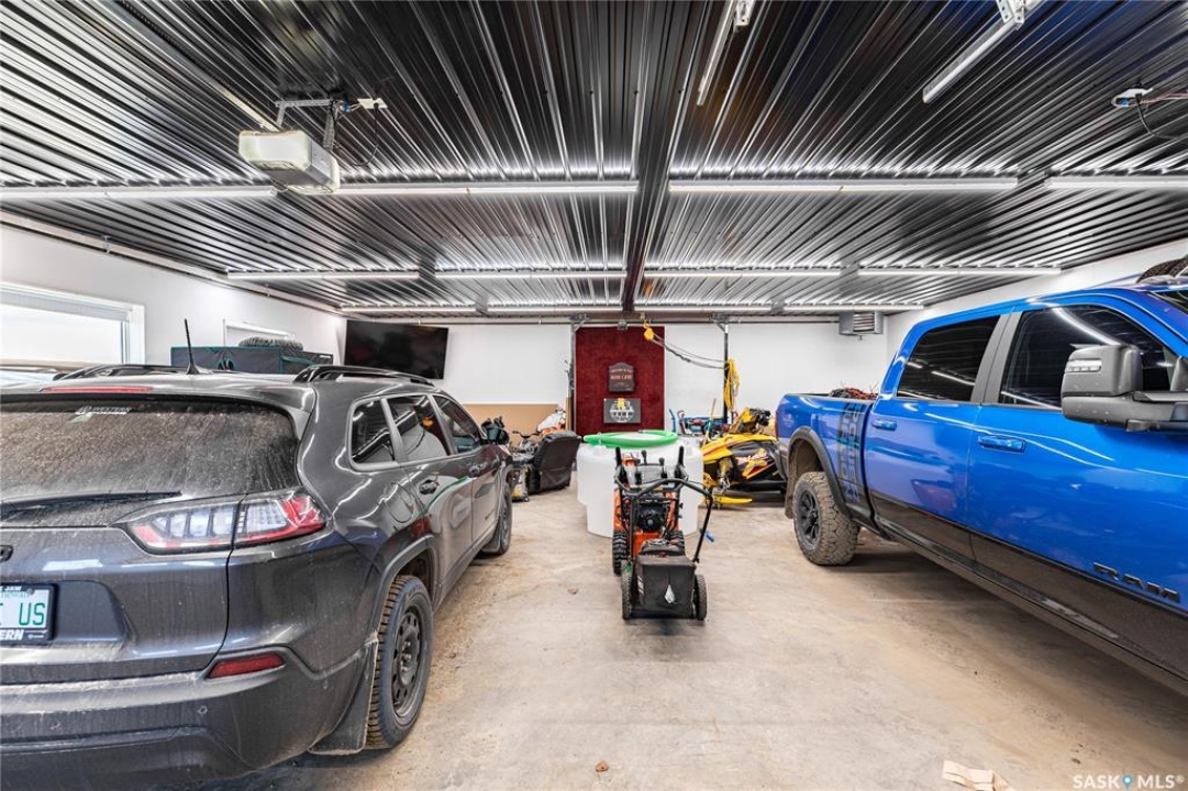 Welcome to your waterfront escape at South Lake, Buffalo Pound-where privacy, comfort, and lake life come together. Situated at the very end of a quiet dead-end road, this property offers exceptional seclusion as it's the last home to the east, making it a rare find for those seeking peace and uninterrupted views. This 2013, 809 SQ/ft mobile home features a bright and inviting layout with 2 bedrooms and a beautifully remodelled 4-piece bathroom (2025). Recent upgrades include new triple-pane windows (January 2026) on the east side of the living room and both bedrooms, enhancing energy efficiency and maximizing those stunning lake views. The home is equipped with reverse osmosis, a stove, built-in dishwasher, washer and dryer, and a newer fridge with a clear-view screen. Step outside and enjoy the wraparound deck spanning two sides of the home-perfect for entertaining or relaxing-with a natural gas BBQ hookup ready to go. The 36 x 40 natural gas heated garage is a standout feature, complete with; LED lighting, 220V plugs, a floor drain, and even a convenient “not so private” 2-piece bathroom. There's ample room for all your vehicles, tools, toys, and even a place to watch the game! Behind the garage, you'll find a 20 x 30 private playground space, along with RV parking that includes a power hookup. The tiered lot is thoughtfully designed with multiple outdoor living areas, including a firepit, horseshoe pit, and steps leading down to the water where a deck pad awaits on the shoreline—perfect for soaking up those summer days. A GPS-marked location is already set for your boat lift, adding to the ease of lakefront living. Additional features include underground sprinklers, one storage shed, and a heated 10 x 20 outdoor pool with its own wraparound deck—ideal for entertaining family and friends. Whether you're looking for a year-round home or the perfect lake retreat, this property delivers lifestyle, location, and unmatched privacy.