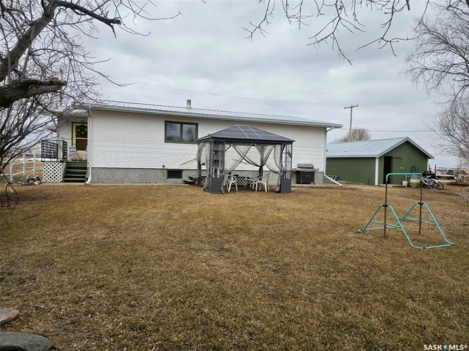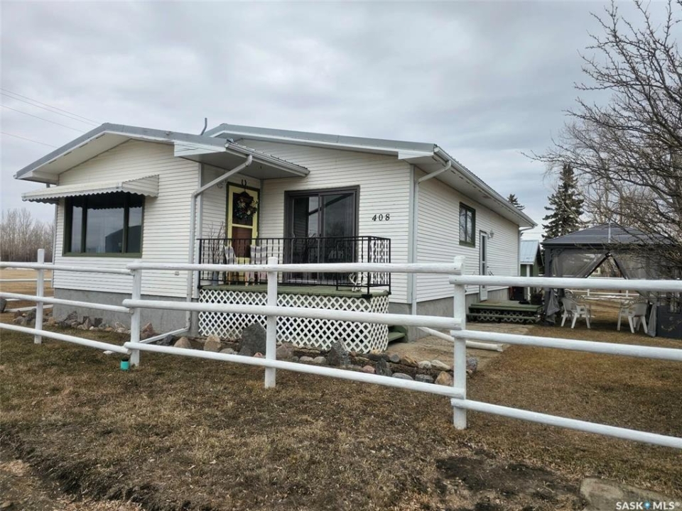 Welcome to the newly improved 408 Mary Street in the quiet village of Tramping Lake! Situated on a prime corner parcel, this property now spans an impressive five 25' lots, offering 125 feet of frontage at the corner of Mary Street and Prairie Avenue—an exceptional outdoor space perfect for family gatherings, summer barbecues, and evening bonfires. Over the past 12 months, this home has undergone numerous thoughtful updates, making it a fantastic opportunity for a young family or first-time buyer. The main floor is bright and inviting, featuring spacious bedrooms, convenient main floor laundry within the 4-piece bathroom, and a functional kitchen and dining area complete with patio doors leading to a side deck ideal for grilling. The partially developed basement is requiring flooring, and ceilings but adds versatility with three large separated spaces, including a recreation room, a bedroom, and an additional room ideal for storage or the option to finish as a fourth bedroom. Outside, you'll find a host of upgrades including a new metal roof on the garage, refreshed exterior trim and garage paint, new parging on the foundation, updated fencing, a vegetable garden, and a charming brick fire pit area. A newly added gazebo is also included—perfect for enjoying the outdoors in comfort. Interior updates include fresh paint throughout approximately 80% of the home, new flooring in the bathroom and entryway, a new hot water heater, and the addition of a reverse osmosis system providing high-quality drinking water directly to the kitchen sink. The sewer line was also replaced to the street. If you're looking for a quiet cozy space with a great yard for your family, this one should make your list!