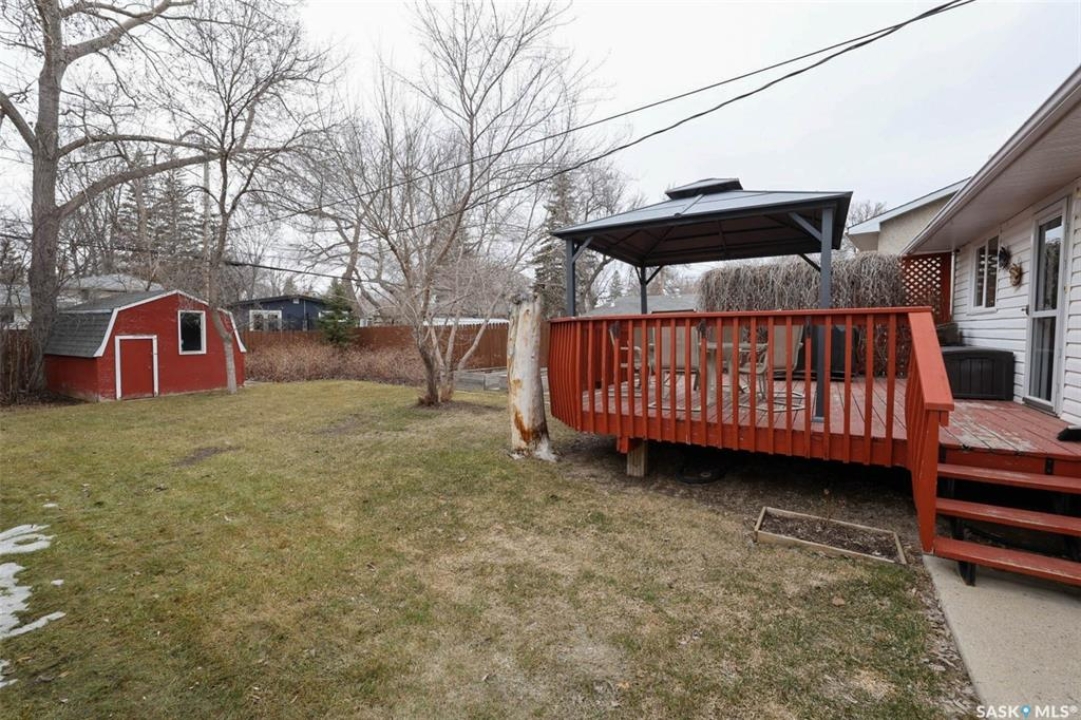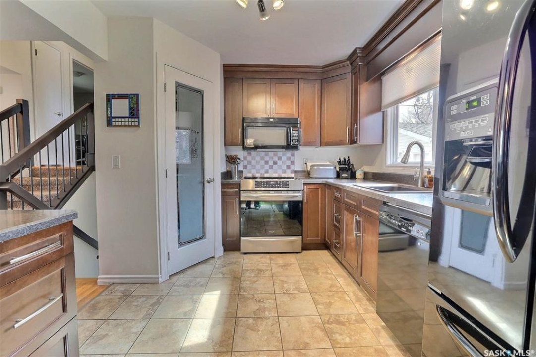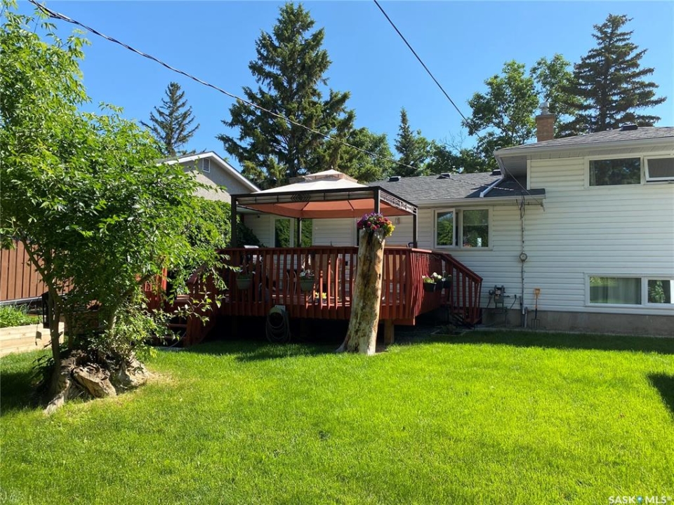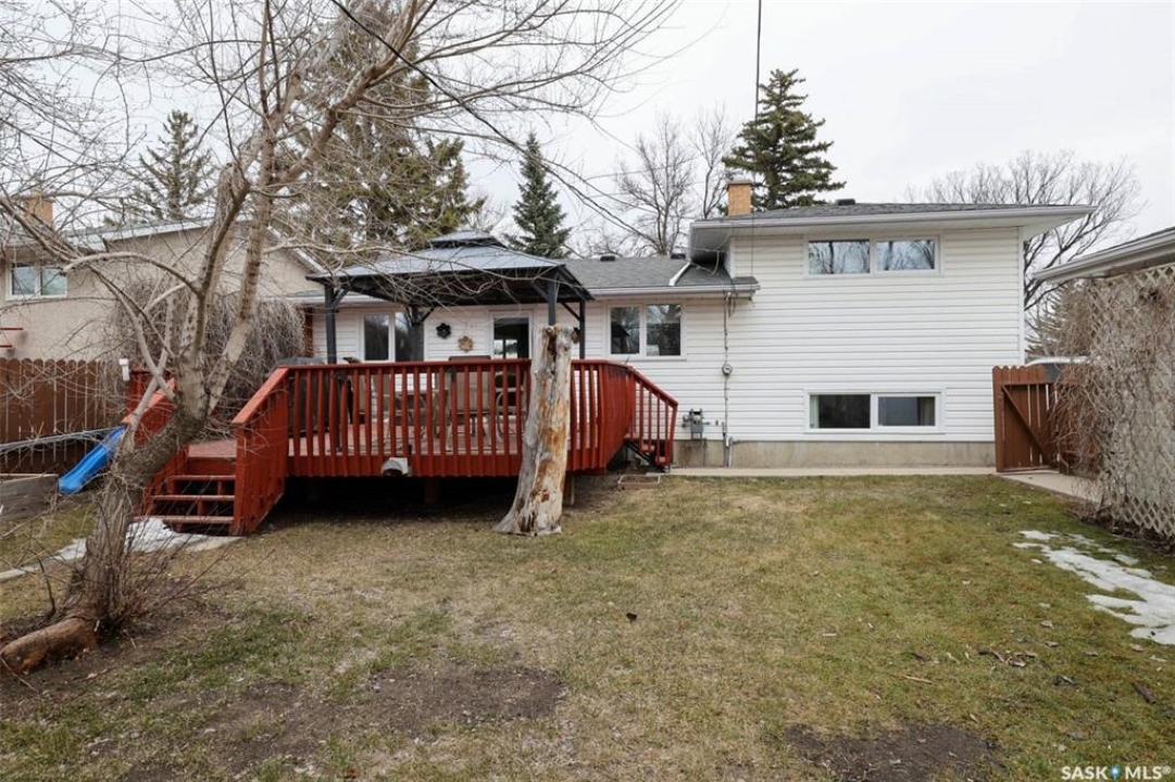 Meticulously maintained and updated 4 level split in family friendly Whitmore Park. This fantastic 4 bdrm 2 bath home exceeds expectations. Fully renovated with numerous upgrades. Spacious front entry showcases the open layout leading to the large sunlit living room with original stone fireplace feature wall. Beautifully renovated custom kitchen has an abundance of soft close maple cabinetry, including buffet wall with extra drawers, pantry, custom stove backsplash, tiled floors and an abundance of counterspace. Generously sized dining area with windows overlooking rear deck. 2nd level has large primary suite, renovated main bath and additional bedroom. 3rd level features 2 generously sized bedrooms (original hardwood under carpets in both) and 2nd refurbished full 4pc bath. Lower level has great games/rec room, utility room and loads of storage. Maturely landscaped, sunny yet very private rear yard has large deck, loads of mature trees and privacy vines, garden boxes, lush lawn and oversized single detached garage (16x24). Many upgrades including: new furnace and AC (2021), complete sewer line (2019) plus newer windows, shingles (house and garage) Front drive and garage can accommodate up to 4 cars. Fantastic south location close to schools, shopping, parks, UofR, restaurants and easy access to RR or downtown. Top end appliances and Central Air included. Truly move in condition and a pleasure to show. Call today!