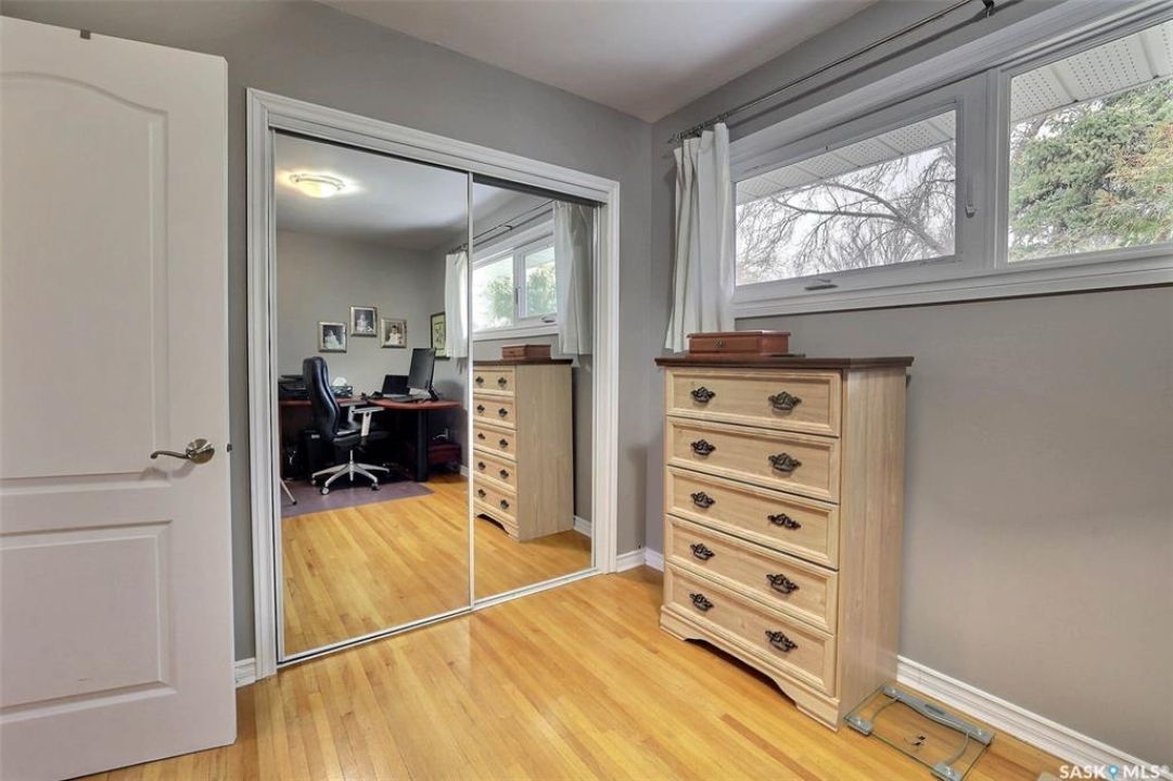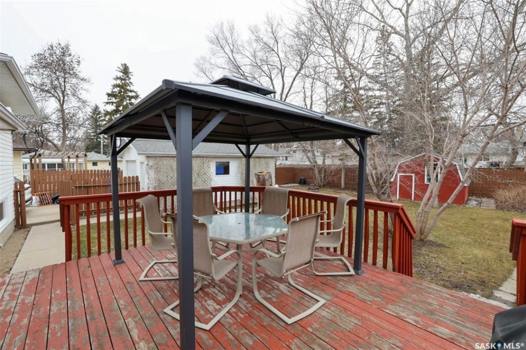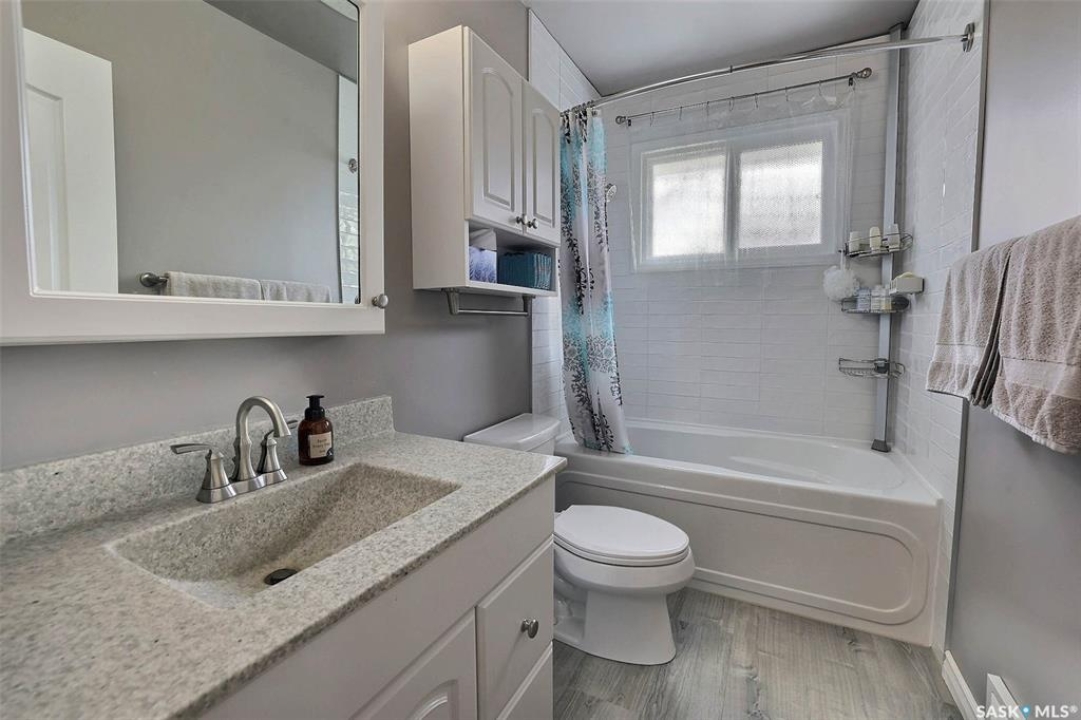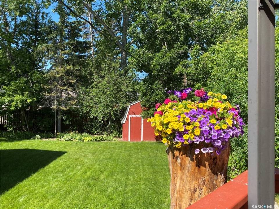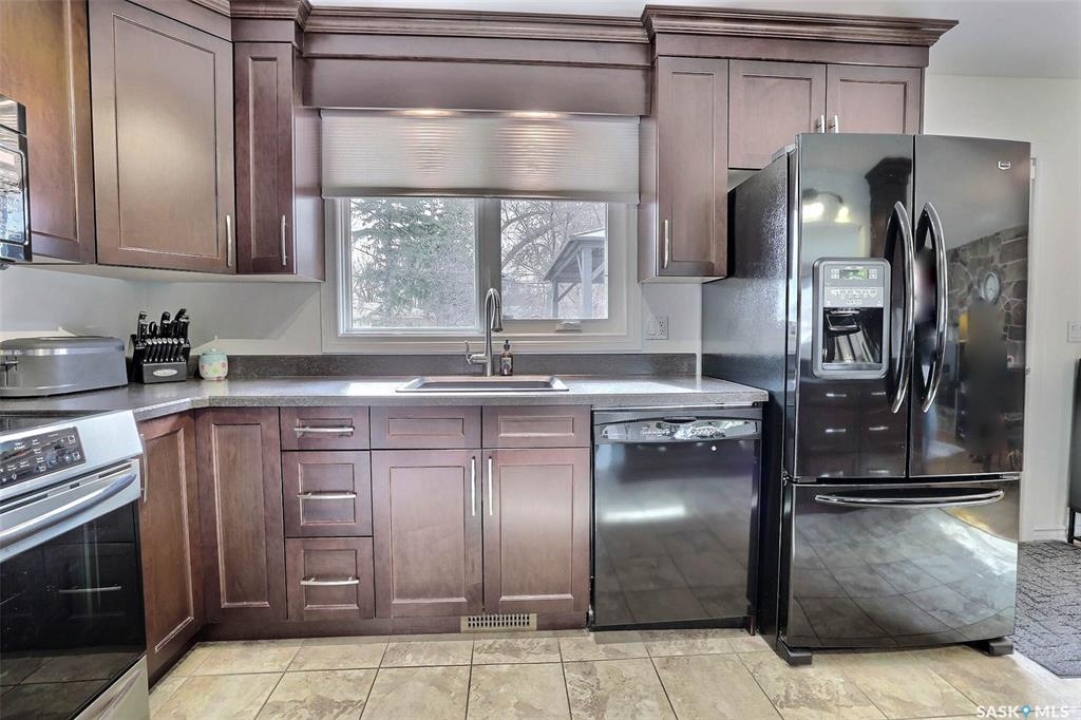 Meticulously maintained and updated 4 level split in family friendly Whitmore Park. This fantastic 4 bdrm 2 bath home exceeds expectations. Fully renovated with numerous upgrades. Spacious front entry showcases the open layout leading to the large sunlit living room with original stone fireplace feature wall. Beautifully renovated custom kitchen has an abundance of soft close maple cabinetry, including buffet wall with extra drawers, pantry, custom stove backsplash, tiled floors and an abundance of counterspace. Generously sized dining area with windows overlooking rear deck. 2nd level has large primary suite, renovated main bath and additional bedroom. 3rd level features 2 generously sized bedrooms (original hardwood under carpets in both) and 2nd refurbished full 4pc bath. Lower level has great games/rec room, utility room and loads of storage. Maturely landscaped, sunny yet very private rear yard has large deck, loads of mature trees and privacy vines, garden boxes, lush lawn and oversized single detached garage (16x24). Many upgrades including: new furnace and AC (2021), complete sewer line (2019) plus newer windows, shingles (house and garage) Front drive and garage can accommodate up to 4 cars. Fantastic south location close to schools, shopping, parks, UofR, restaurants and easy access to RR or downtown. Top end appliances and Central Air included. Truly move in condition and a pleasure to show. Call today!
