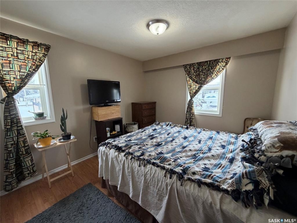 This beautifully appointed family home is waiting for the next owners! With over 1300 square feet of bright living space on the main level, you also have plenty of family space in the basement. The 4-bedroom, 3-bathroom layout also features main floor laundry, an office, direct entry from the attached garage, along with a spacious kitchen, dining room and living room. Situated on a corner lot just two streets from Spiritwood's busy Main Street, you are off the busy streets but walkable to all the amenities! The basement includes a large family area, a sizeable bedroom, a bathroom and large 5' crawl space for organized storage. The attached garage has propane heat which can be converted to natural gas, and comes with sturdy storage shelving built in. A large shed in the partially fenced back yard is constructed of fire-resistant plywood and is built atop geo-cloth to prevent undergrowth creep. Perennials and a garden space complete the back yard oasis, while the front yard has curb appeal galore with a stone walkway, shrubs and a welcoming lawn. The underground sprinklers keep the lawn green while being situated to also keep the shrubs watered. Book your showing today and make this gorgeous family home your own! Member only comments: All measurements to be verified by Buyer. New flooring for complete main level area (or basement) is still boxed and in the basement, comes with the home. In-floor heat is in place for the basement but not currently functional. Heater in garage is propane but can be converted to natural gas. New sump pump in basement is plumbed to pump out onto the rocks, with valve to prevent back-flow. Fridge and freezer in the garage stay, three-piece leather furniture in basement negotiable, kitchen table negotiable, furniture in sewing room negotiable (not sewing machine