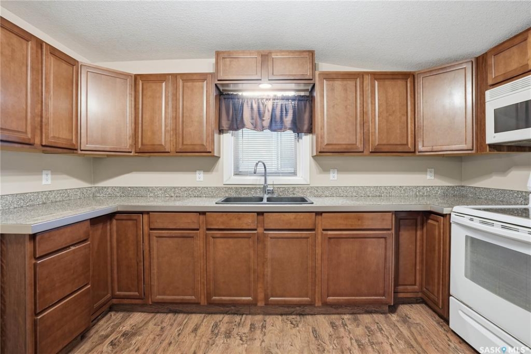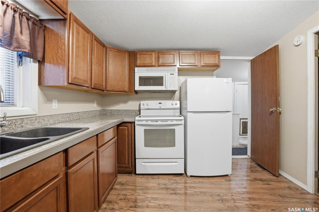 Are you looking for quiet place to call home? This charming bungalow is situated on a quiet street with a green space behind you. This home boasts excellent curb appeal as you arrive and pride of ownership shows throughout. Boasting 2 bedrooms, 1 bathroom and 720 sq.ft. - making this an excellent revenue property or first time buyer's home. Heading inside you are greeted by a spacious living room. Next we find a good sized bedroom and an updated 4 piece bathroom featuring beautiful tile work and a jet tub. Next we find a spacious kitchen with lots of cabinet space and the option to have an eat-in dining table. From there we find a good sized primary bedroom with 2 closets. Off the back of the home we find a mudroom with access to the backyard. Heading downstairs we have a well put together and dry basement with laundry and lots of storage space. Heading outside we have a fully fenced yard and 2 off-street parking spots in the back. This unique location almost feels park like and will show you a slower pace of life. Quick possession is available. Reach out today to book your viewing!