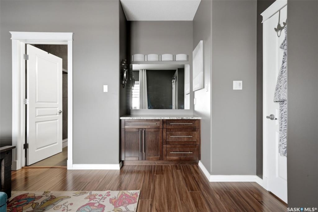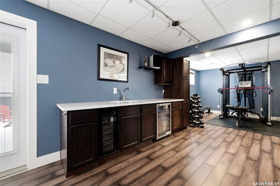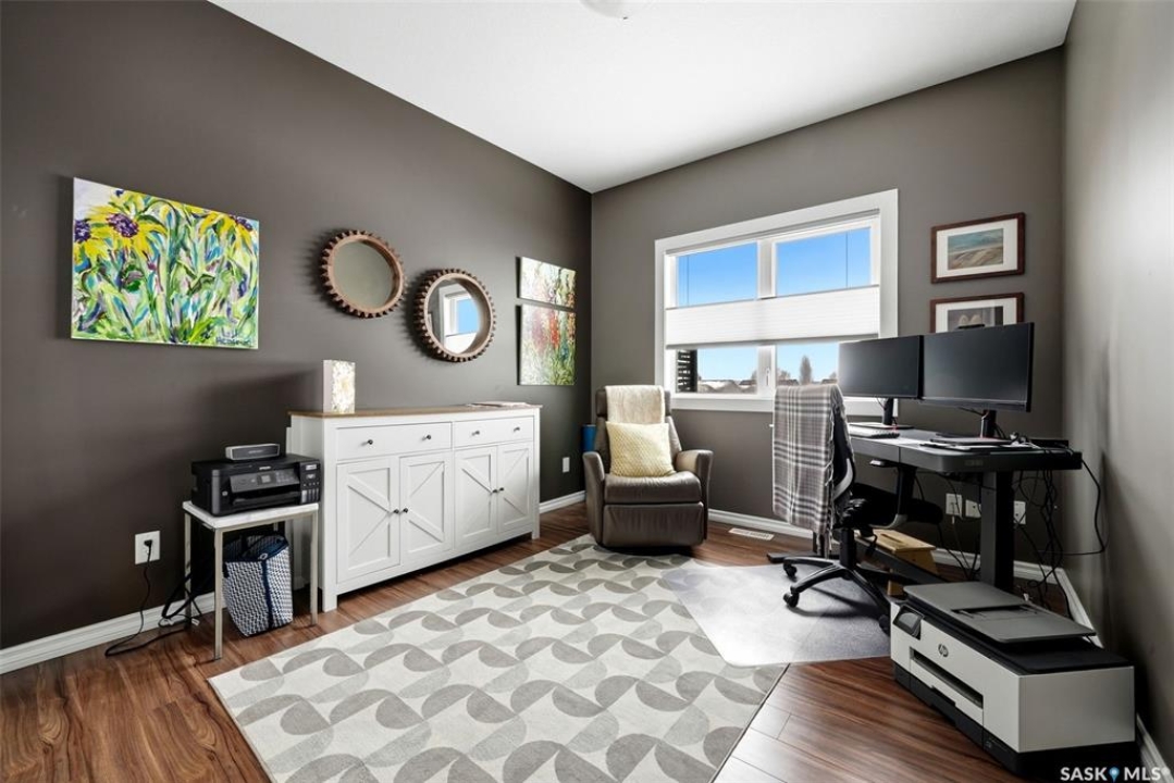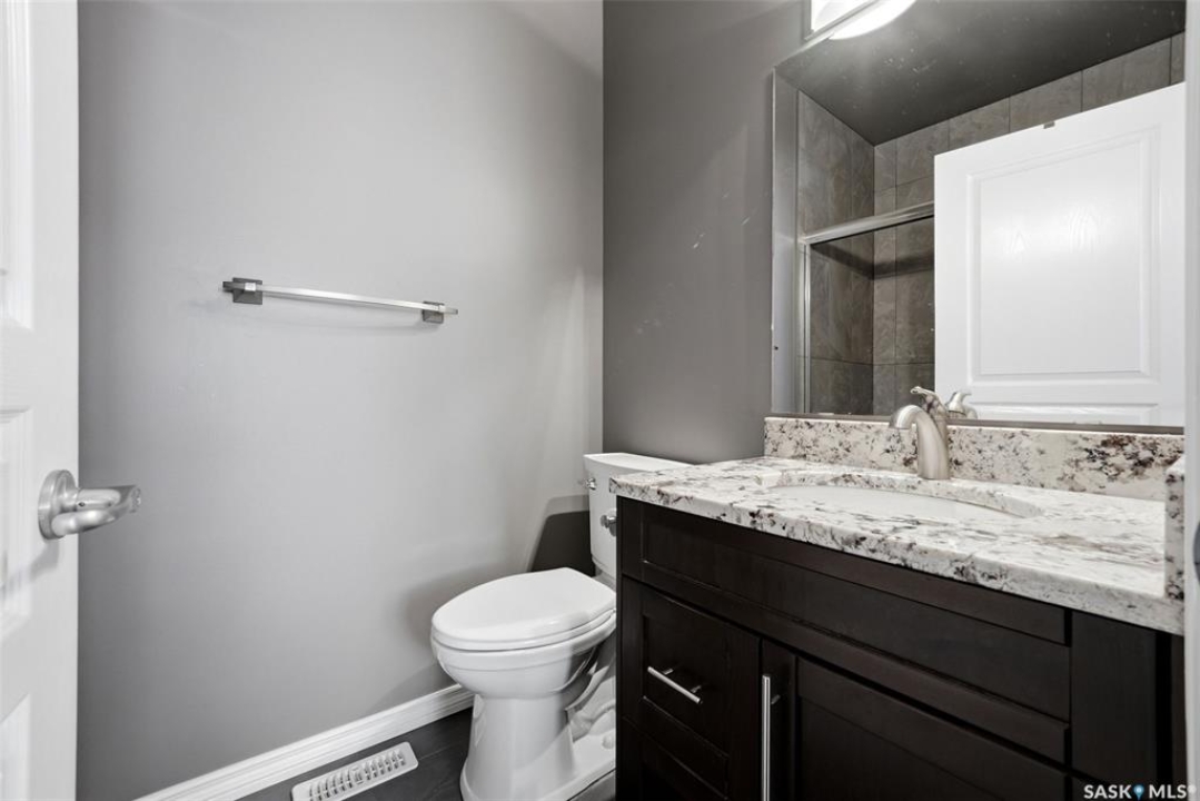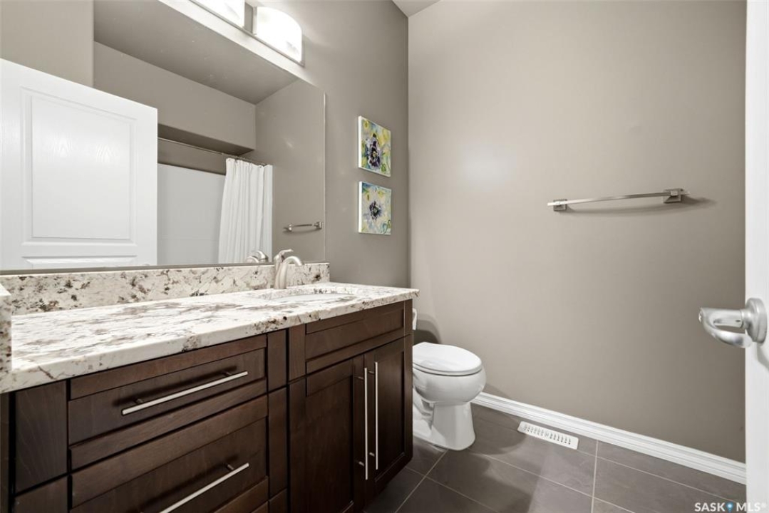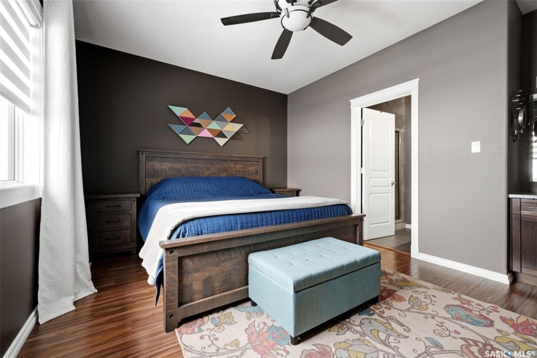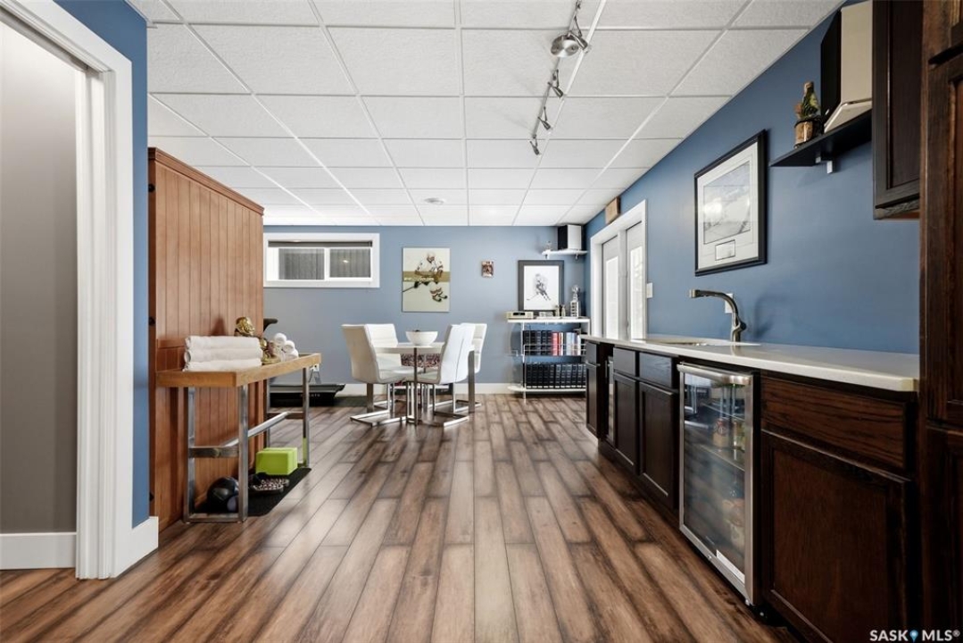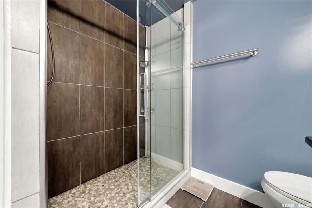 This one-of-a-kind walkout bungalow in Pilot Butte backs green space and offers a rare combination of space, layout, and pride of ownership throughout. The main floor features 1,436 sq ft with three bedrooms and a bright, functional layout. You are welcomed by a spacious entry that opens into a comfortable living room with an electric fireplace and updated, carpet-free flooring. The dining area is well-sized and provides direct access to a large deck overlooking the park and green space. The kitchen is finished with granite countertops, maple shaker cabinetry, and includes all appliances. The primary bedroom offers generous space, complete with a walk-in closet, dedicated vanity area, and a private ensuite featuring a custom tile shower. Two additional bedrooms and a full four-piece bathroom complete the main level. The walkout basement is filled with natural light and offers excellent additional living space. It includes a large recreation room ideal for a home theatre setup, a wet bar, and a flex room currently used as a gym. There is also a fourth bedroom, a full three-piece bathroom with custom tile shower, and a storage area that could be converted into a fifth bedroom if desired. The 26 x 26 double attached garage is fully insulated and features an oversized 18-foot door. The backyard is designed for low maintenance with zero-scaping, a large upper deck, and a lower patio area, all backing directly onto green space and a park. Additional features include a motorized awning (16x10), triple-pane windows, upgraded exterior doors (22), new metal fence (2023), updated deck flooring, and kitchen appliances within the past few years. Pilot Butte also offers RO water service to the community. Properties like this rarely come available reach out for your personal showing today.